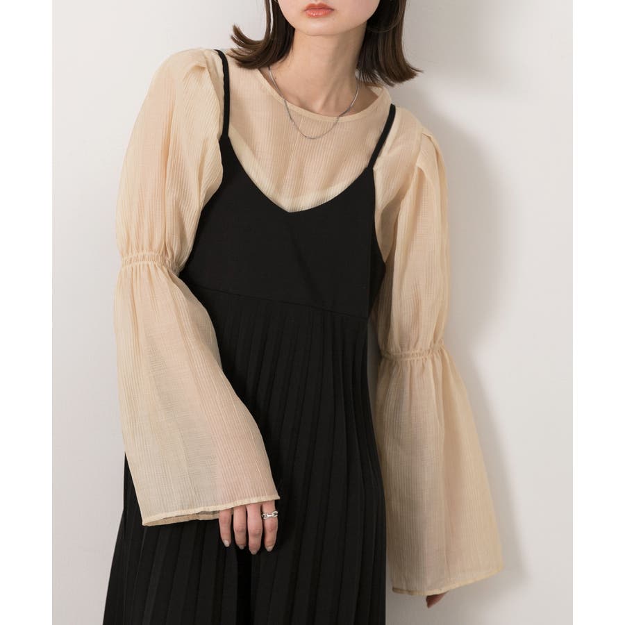 ベルスリーブでフェミニンなデザインと