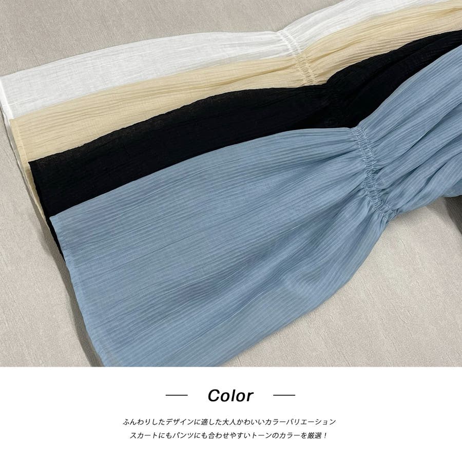 投稿日:2024.06.05買って早速着ました!ちょうどいい透け感でめっちゃ可愛かったです!!今回は黒を購入しました。夏になっても中をタンクトップとかにしたりして結構長いシーズン使えるものだなと思いました!