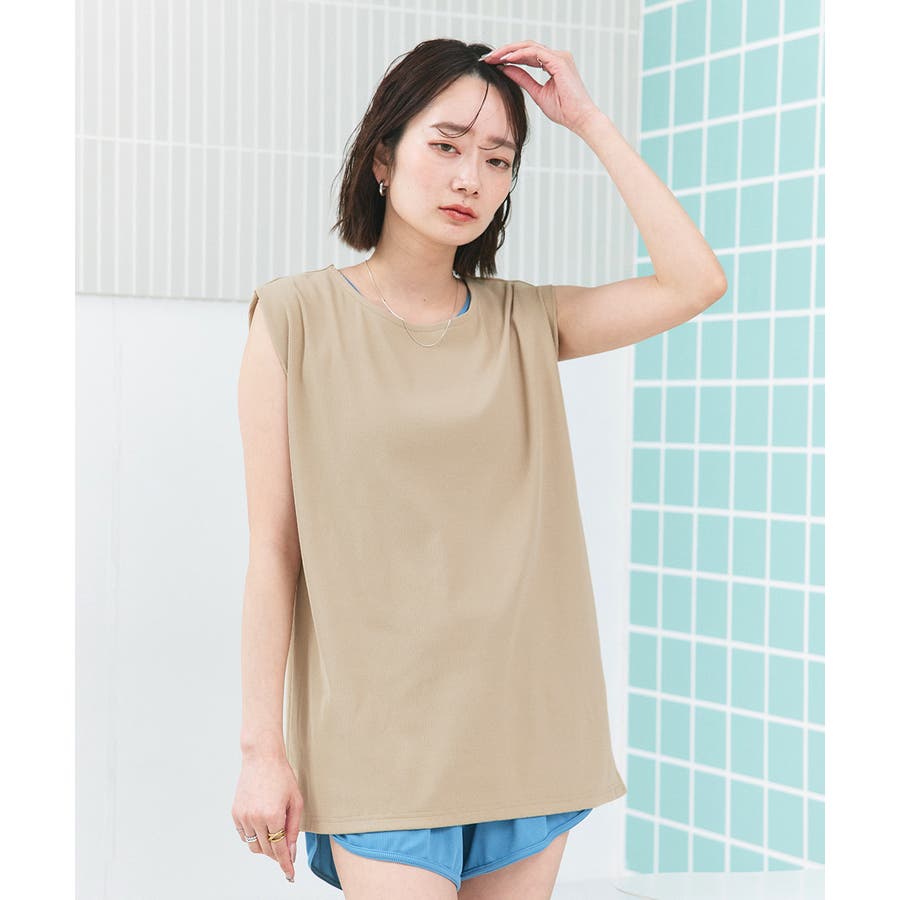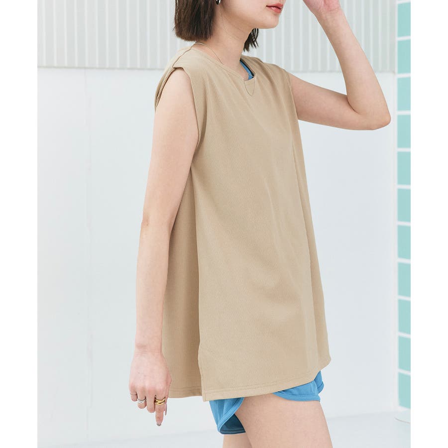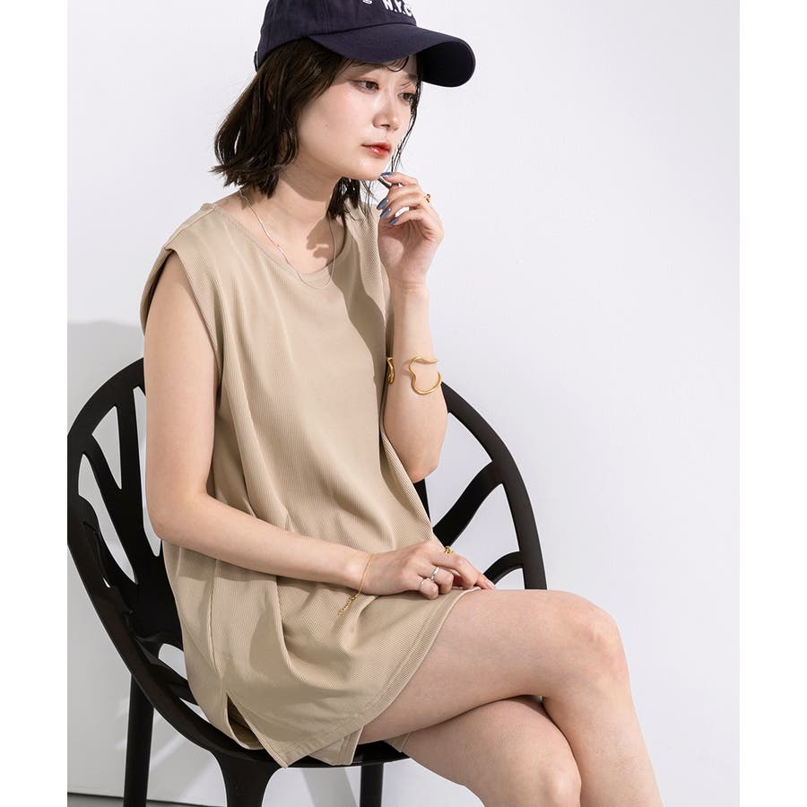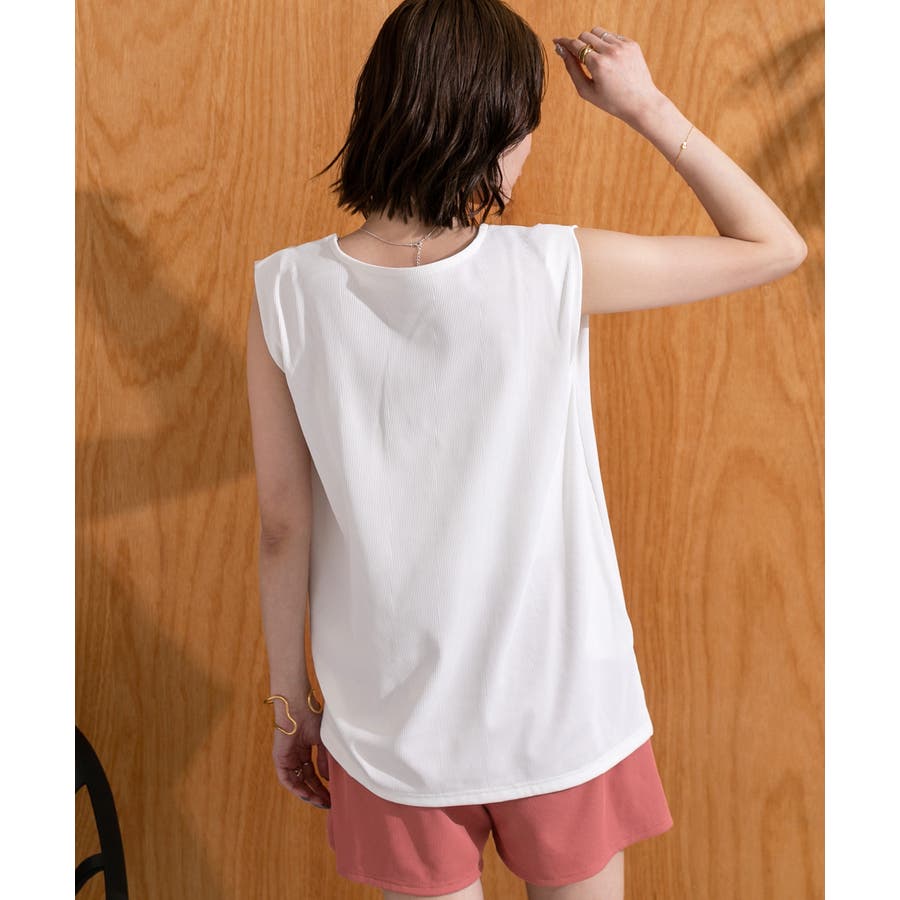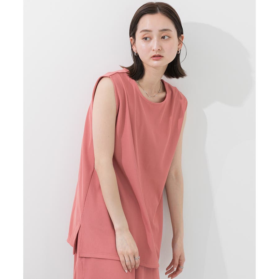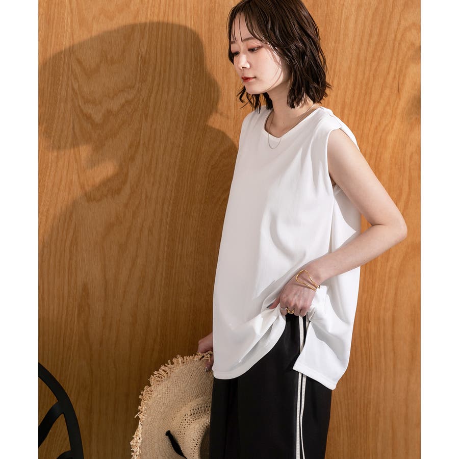 肩タック仕様のノースリーブでスッキリ華奢見え効果