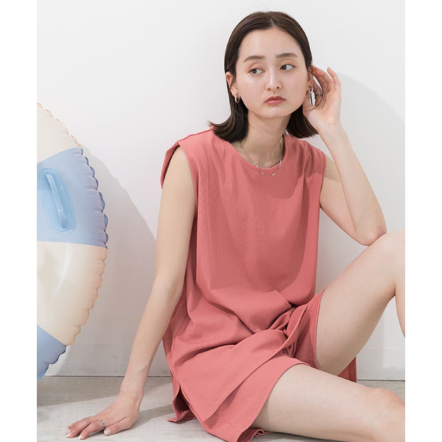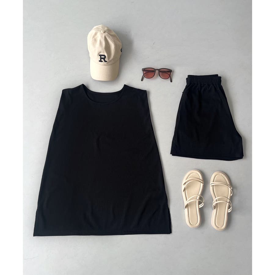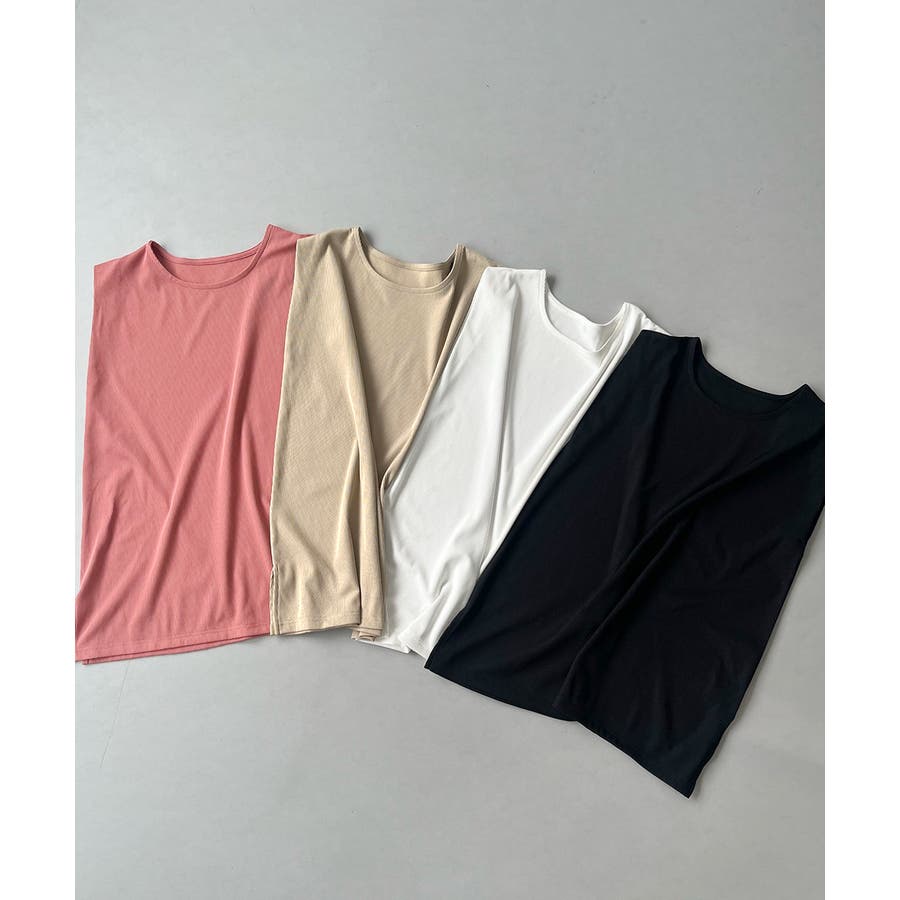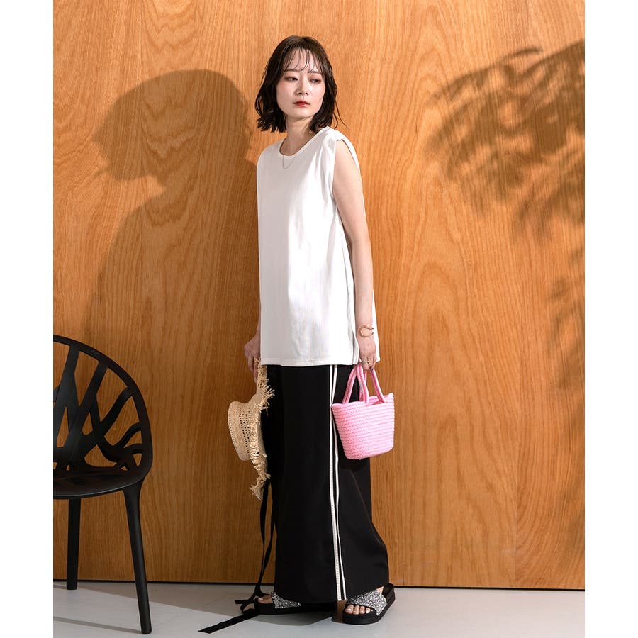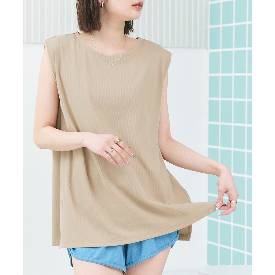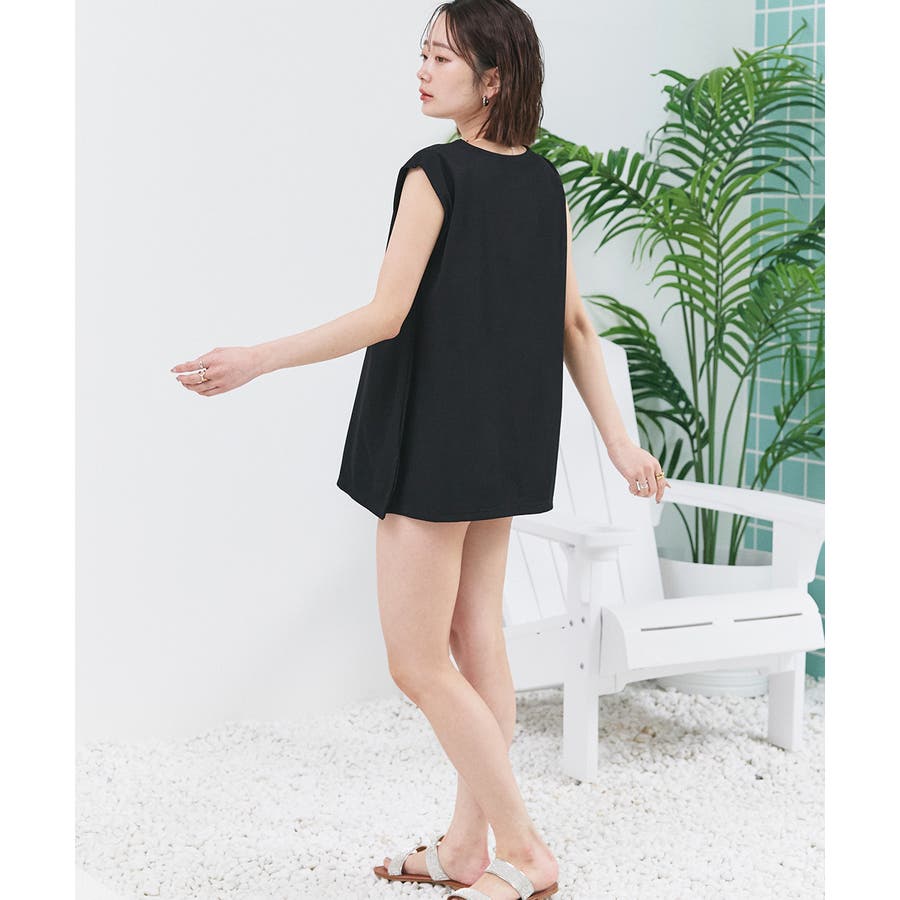 肩タック仕様のノースリーブでスッキリ華奢見え効果