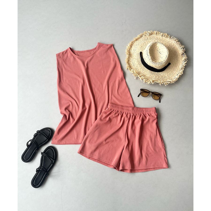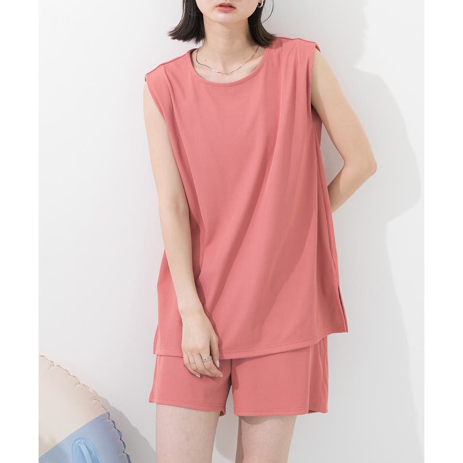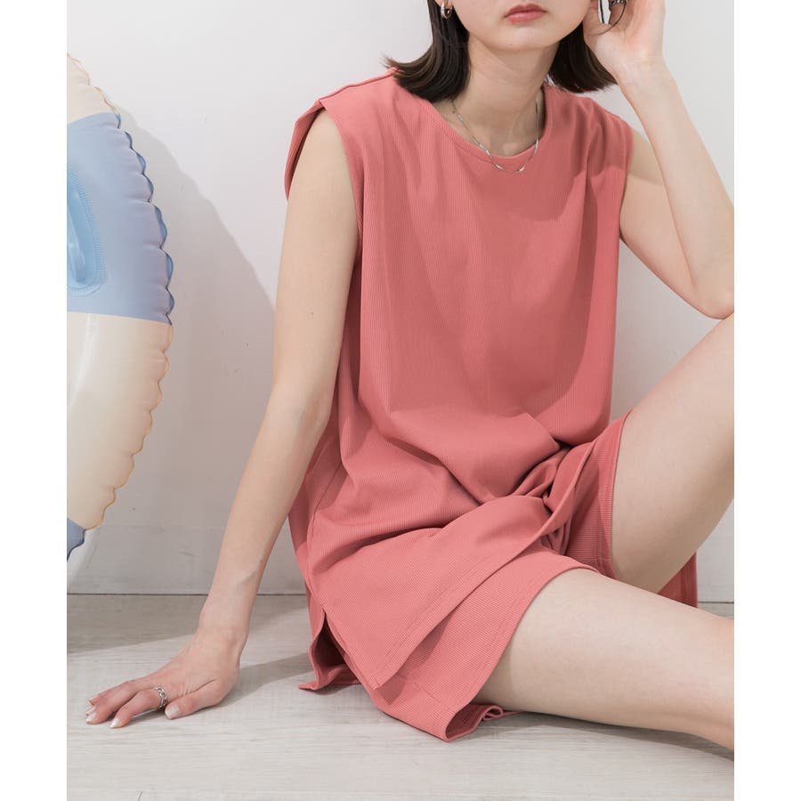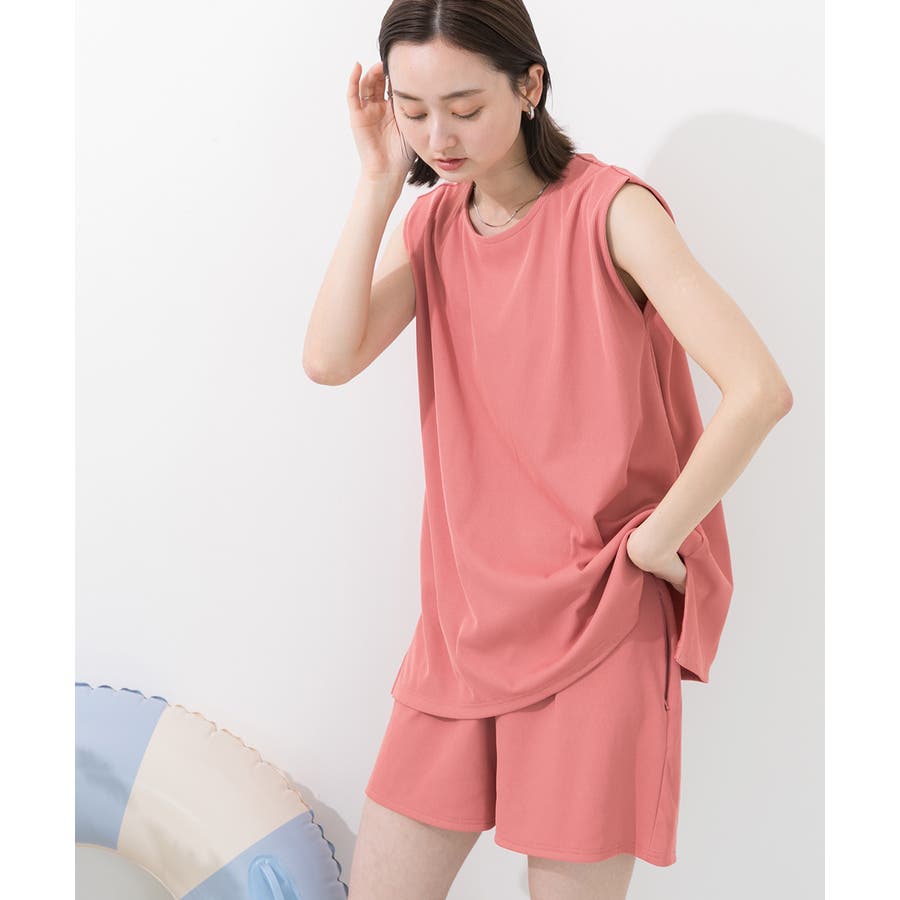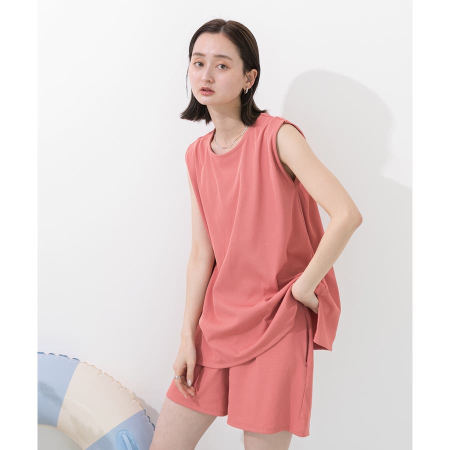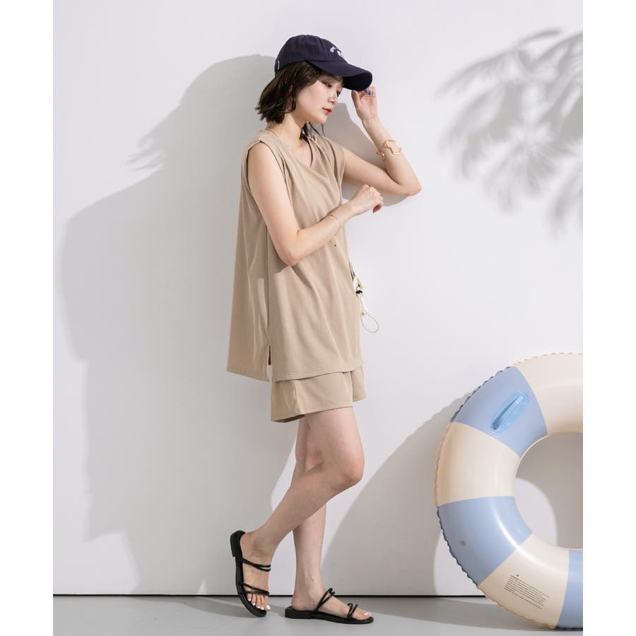 肩タック仕様のノースリーブでスッキリ華奢見え効果