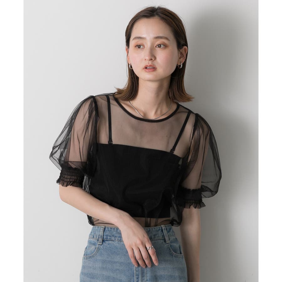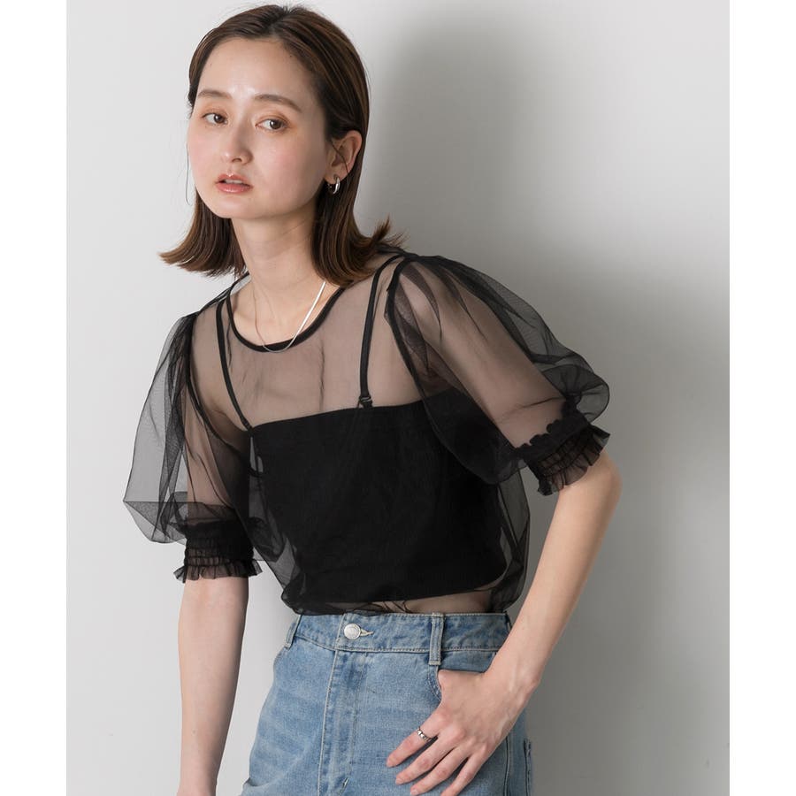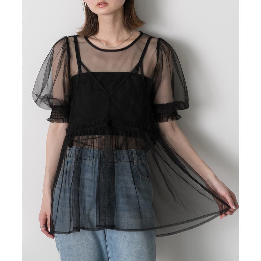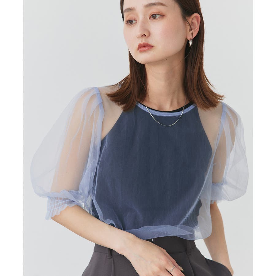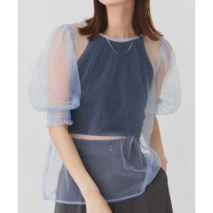 シャーリングチュールブラウス