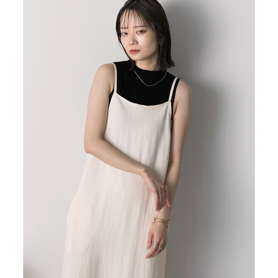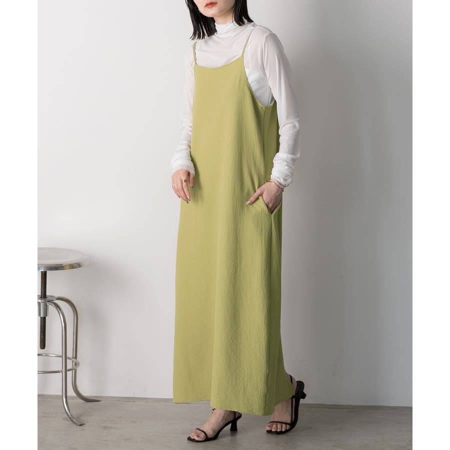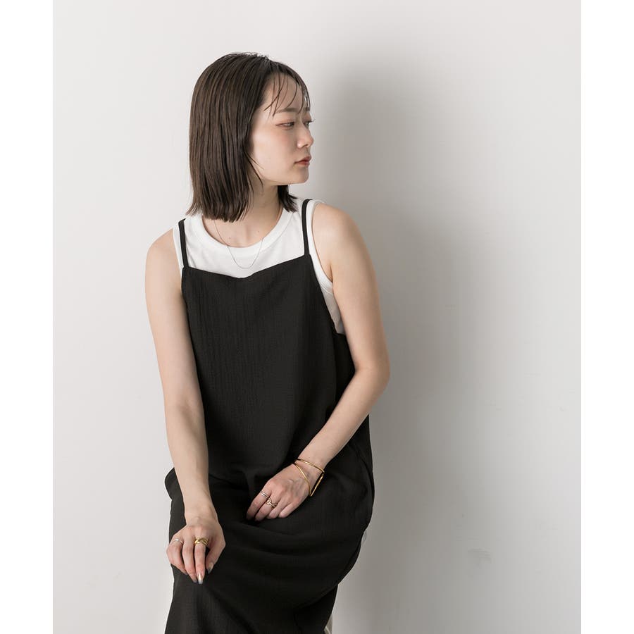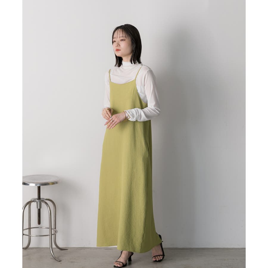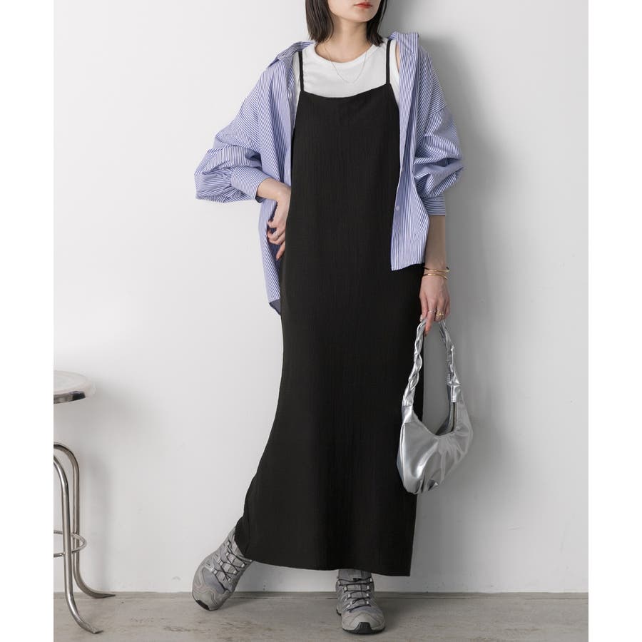 すっきりシルエットで着こなしやすいキャミワンピース