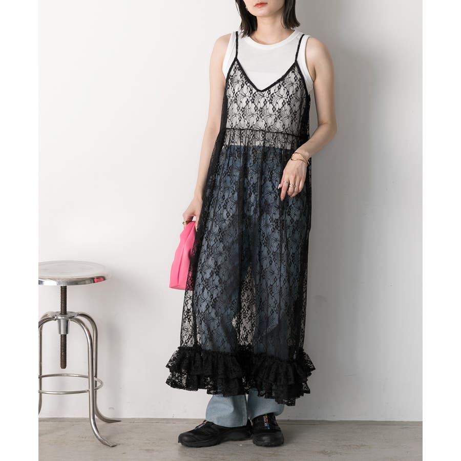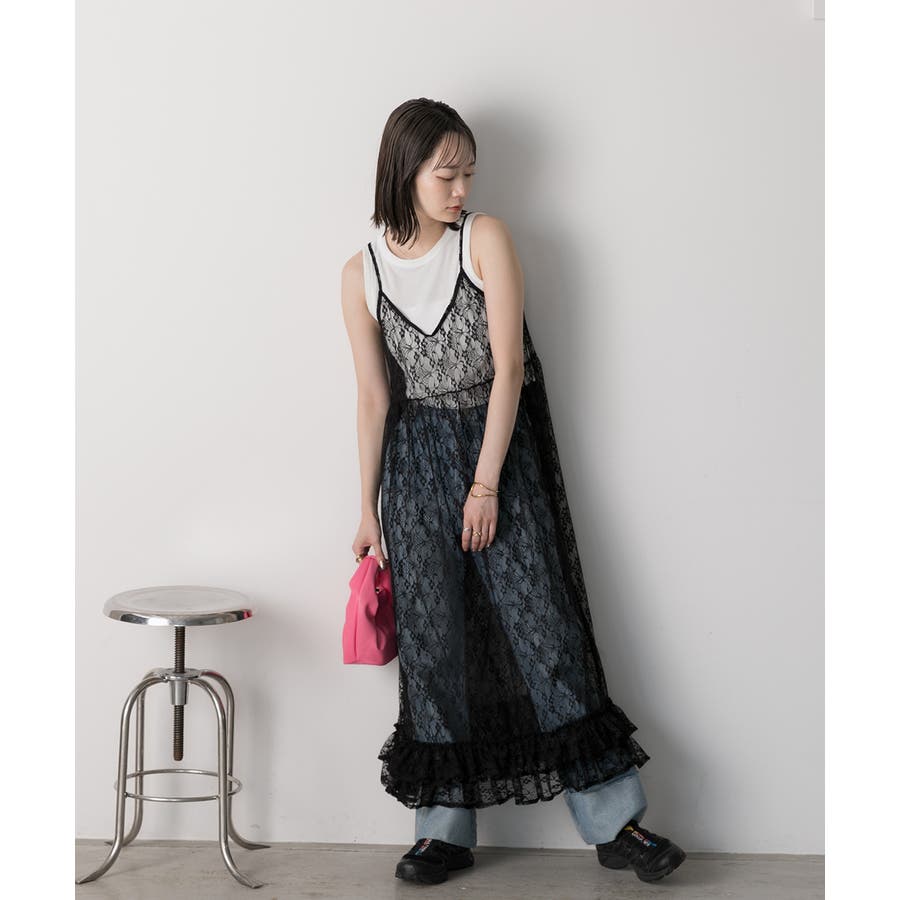 裾ボリューム レースキャミワンピース