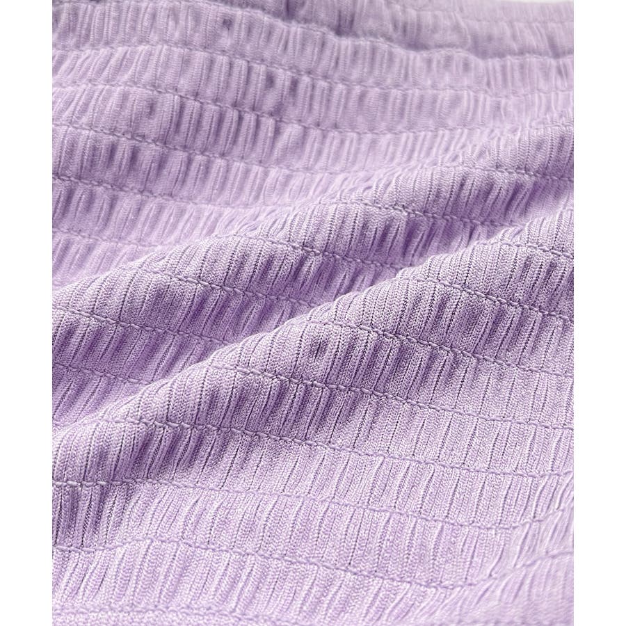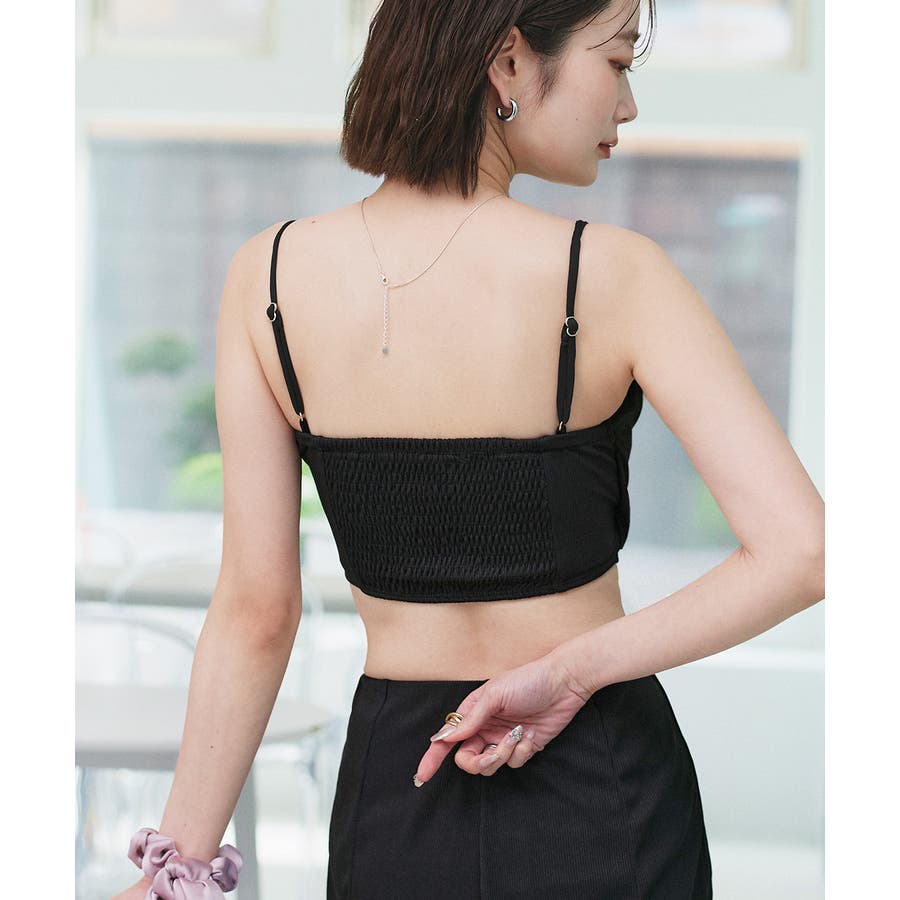 トップス背面のシャーリングギャザーデザインで