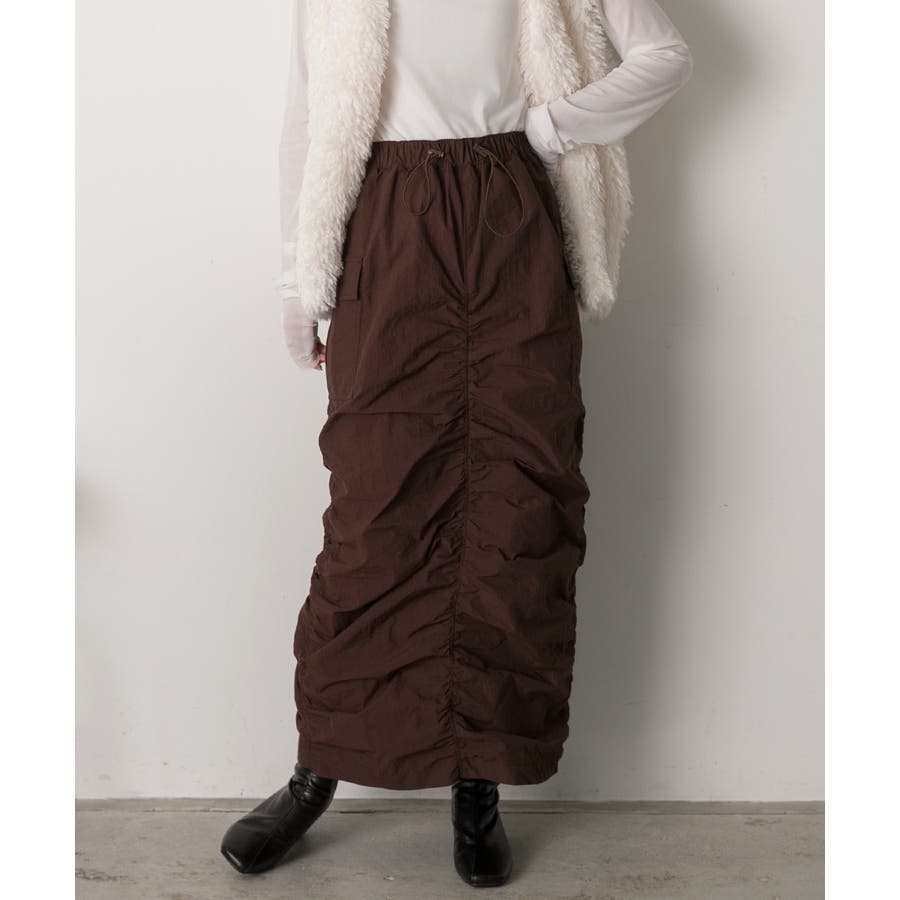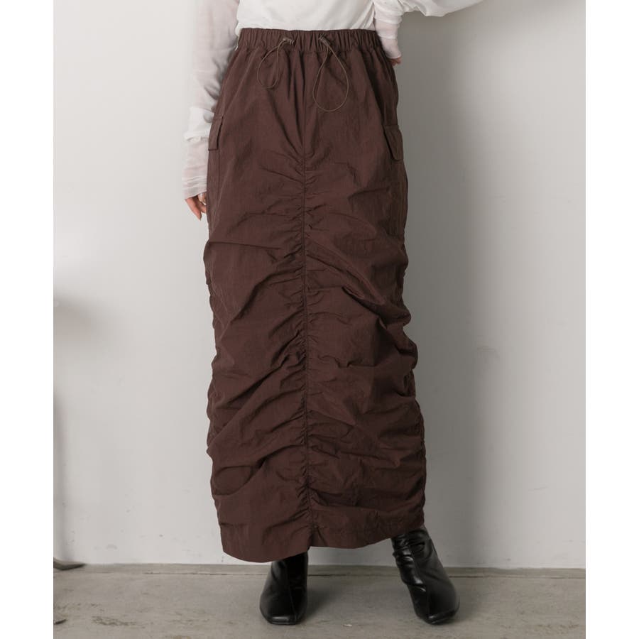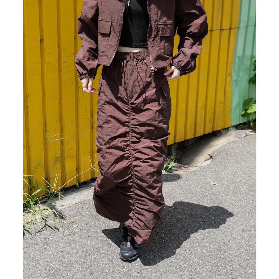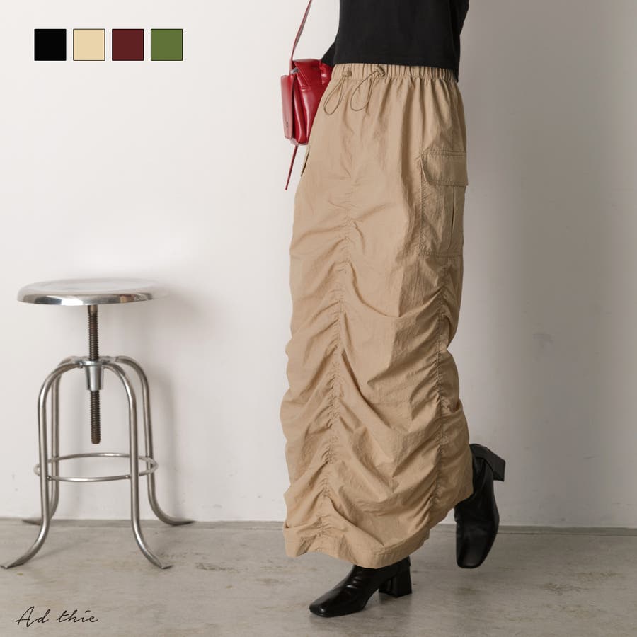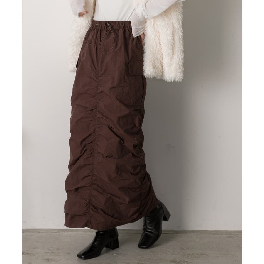 春 春コーデ 春ファッション 春服 冬 冬コーデ 冬ファッション 冬服 カジュアル カジュアルコーデ 大人 大人カジュアル オフィスカジュアル オフィス オフィスファッション オフィススタイル 韓国 韓国ファッション 韓国コーデ プチプラ プチプラファッション レディース Y2K 量産型 キレイめ 綺麗め きれい きちんと ギャザー ロングスカート ロング丈 ギャザースカート ナイロン ナイロンスカート ナイロンギャザー カーゴ カーゴスカート ミリタリー ミリタリースカート ドロスト ウエストゴム ドロストスカート 楽ちん スポーティ スポーツ 防水 撥水 静電気 静電気防止 アウトドア チョコレートブラウン ブラック 黒 チョコーレート ベージュ カーキ