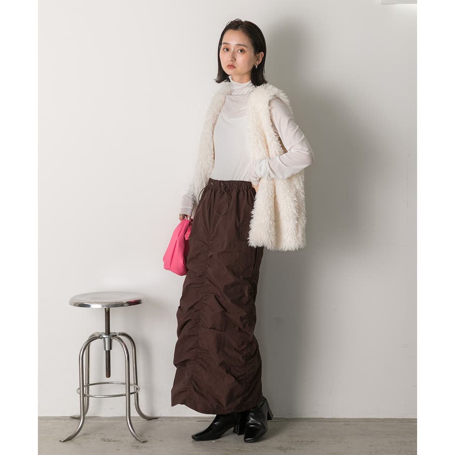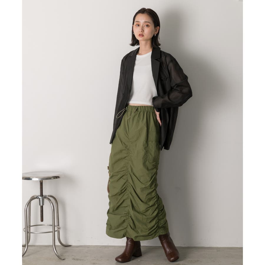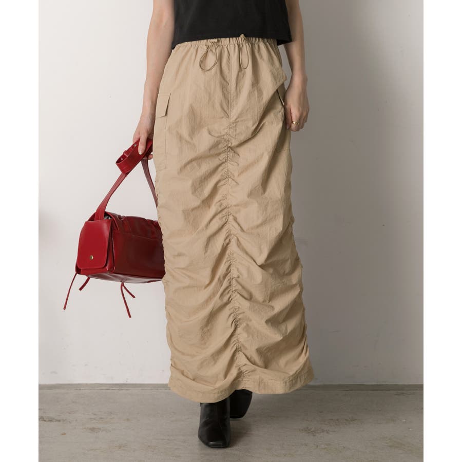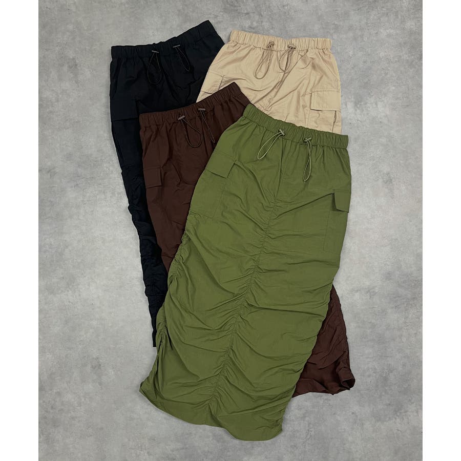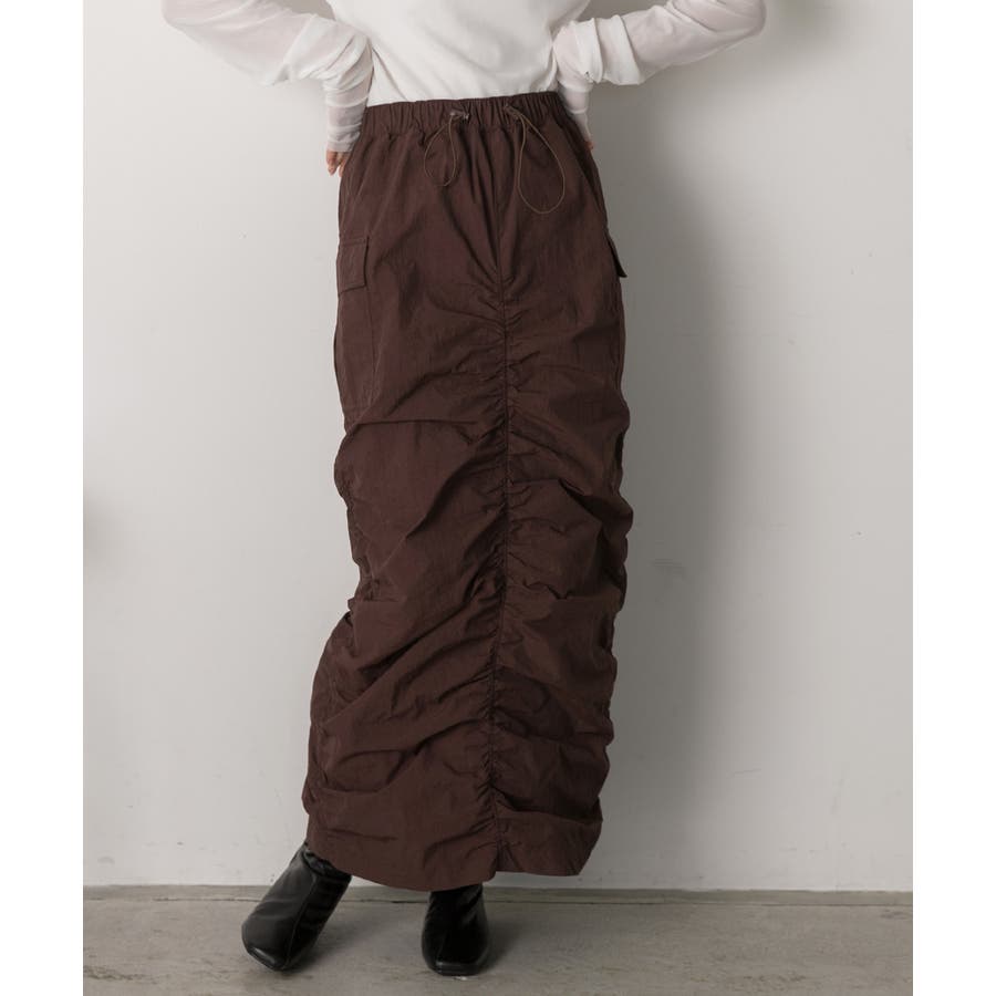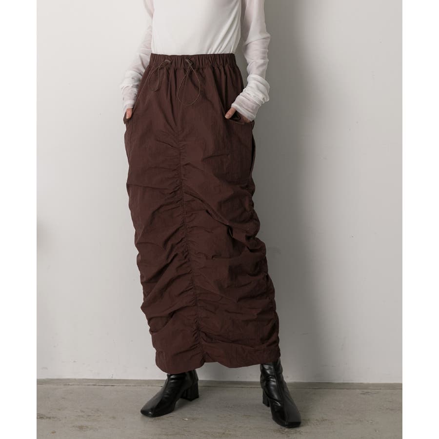 春 春コーデ 春ファッション 春服 冬 冬コーデ 冬ファッション 冬服 カジュアル カジュアルコーデ 大人 大人カジュアル オフィスカジュアル オフィス オフィスファッション オフィススタイル 韓国 韓国ファッション 韓国コーデ プチプラ プチプラファッション レディース Y2K 量産型 キレイめ 綺麗め きれい きちんと ギャザー ロングスカート ロング丈 ギャザースカート ナイロン ナイロンスカート ナイロンギャザー カーゴ カーゴスカート ミリタリー ミリタリースカート ドロスト ウエストゴム ドロストスカート 楽ちん スポーティ スポーツ 防水 撥水 静電気 静電気防止 アウトドア チョコレートブラウン ブラック 黒 チョコーレート ベージュ カーキ