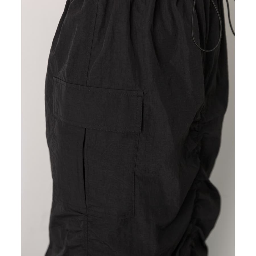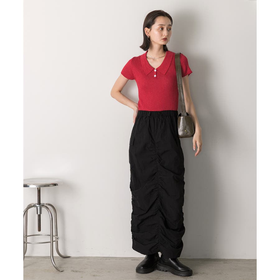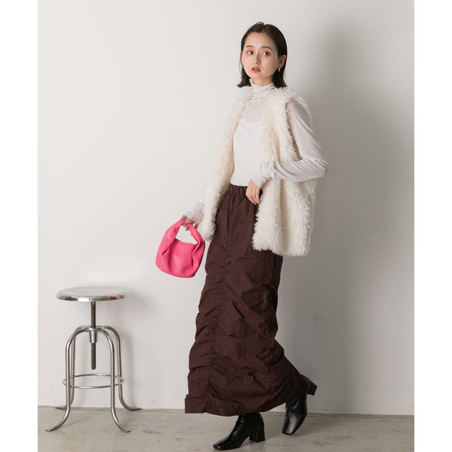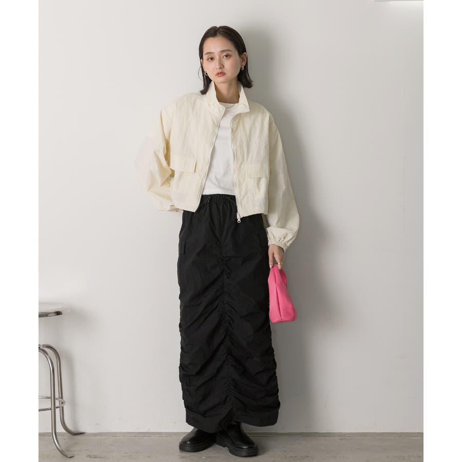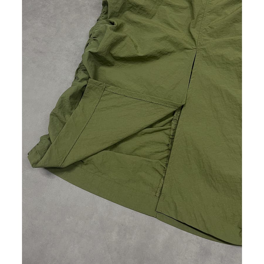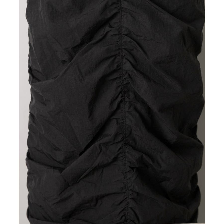 カジュアルに見えがちなナイロン素材ですが、たっぷりのギャザーでカジュアルな中にもエレガントさを兼ね備えた美シルエット