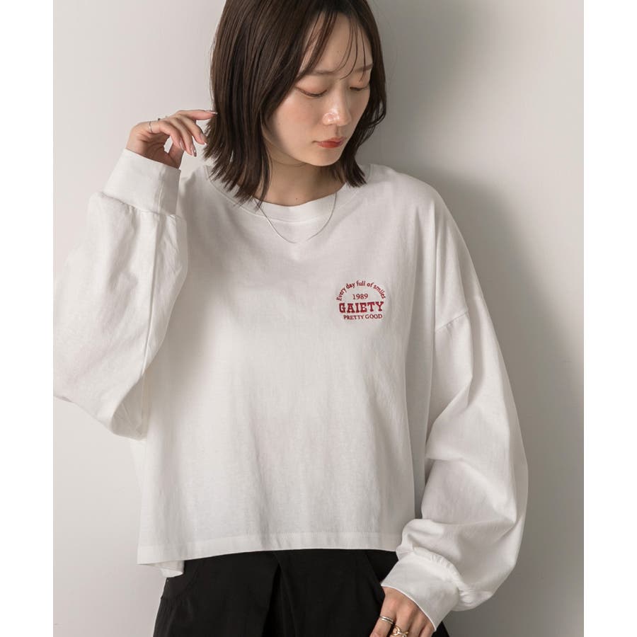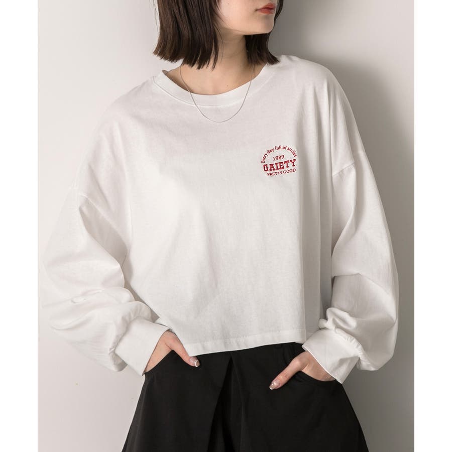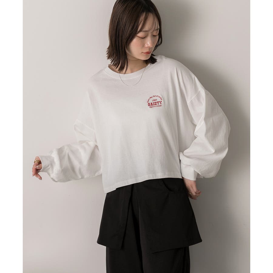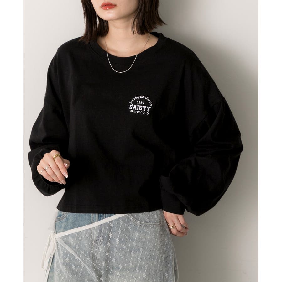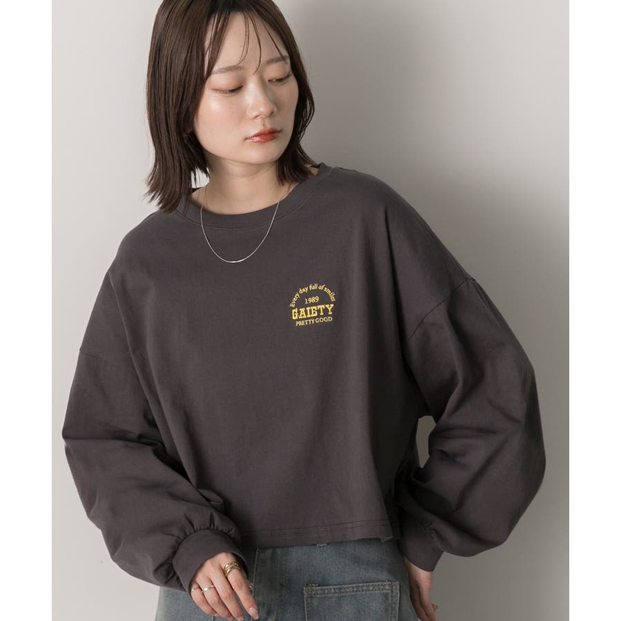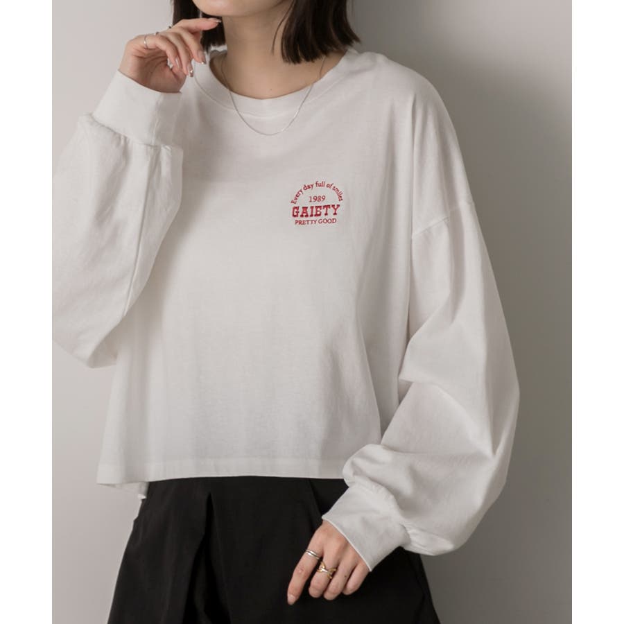 春 春コーデ 春ファッション 春服 冬 冬コーデ 冬ファッション 冬服 カジュアル カジュアルコーデ 大人 大人カジュアル オフィスカジュアル オフィス オフィスファッション オフィススタイル 韓国 韓国ファッション 韓国コーデ プチプラ プチプラファッション レディース Y2K 量産型 キレイめ 綺麗め きれい きちんと 長袖 長袖トップス シンプル Tシャツ ホーム ルームウェア シンプル 部屋着 綿100 コットン 綿 シンプルT シンプルTシャツ ショート丈 ショート丈Tシャツ クルーネック 刺繍 ロゴ刺繍 ワンポイント ボリューム袖 オフホワイト 白 ブラック 黒 チャコール ピンク