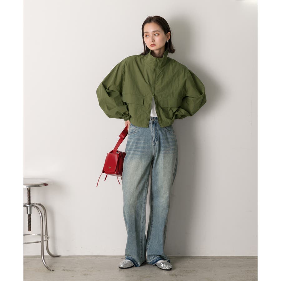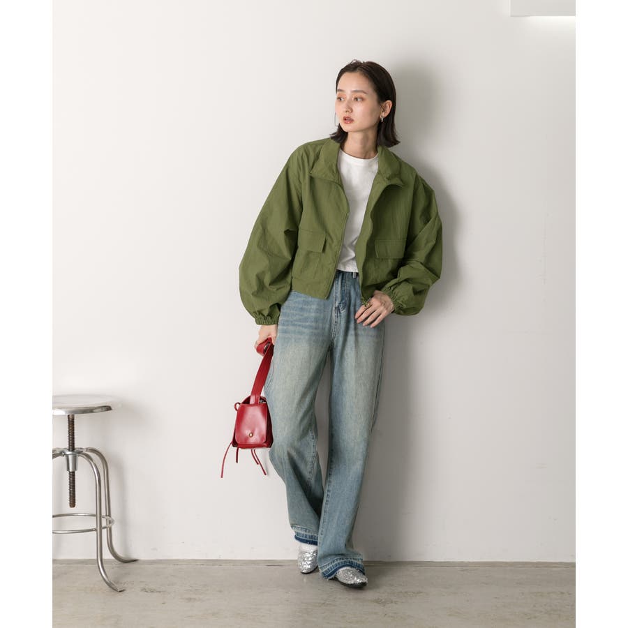 スタンドカラー ナイロンショート丈ブルゾン