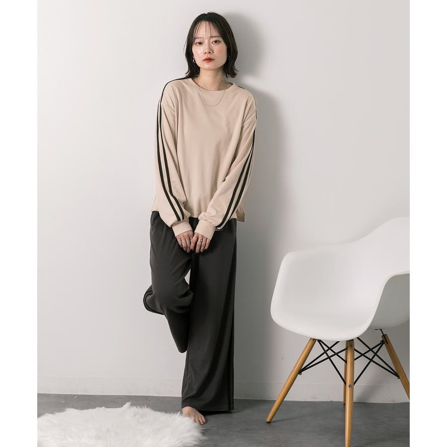 伸縮性があるゆったりとしたシルエットに、肌触りの良いスムースな生地感でリラックス感のある着心地