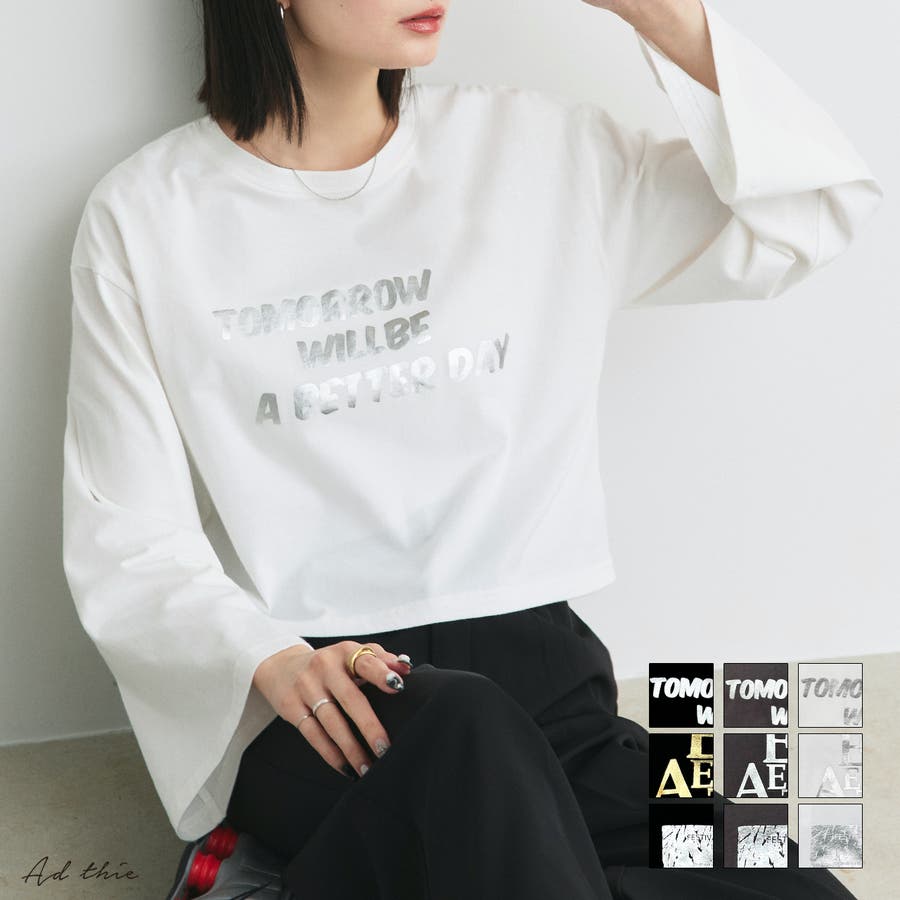 トレンドライクな箔プリントとショート丈デザインが、コーデに取り入れるだけで旬な着こなしを叶えてくれるロンT!