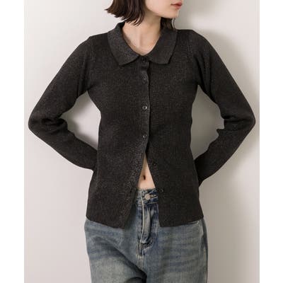 ラメニット・襟付き コンパクトカーディガン