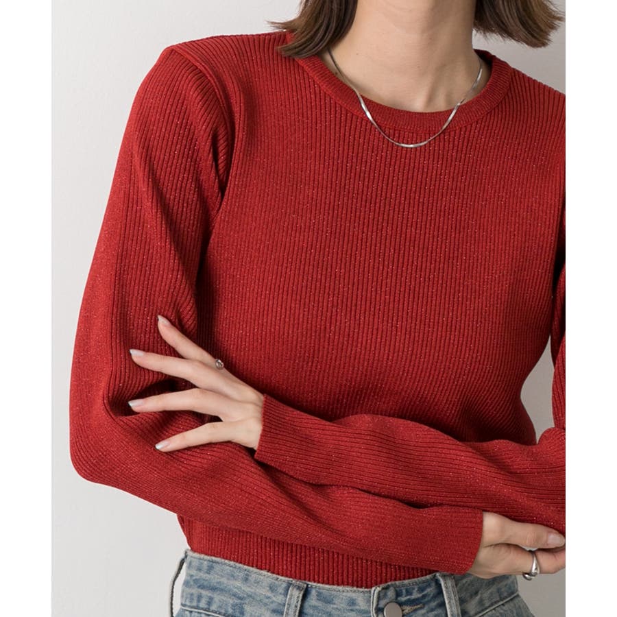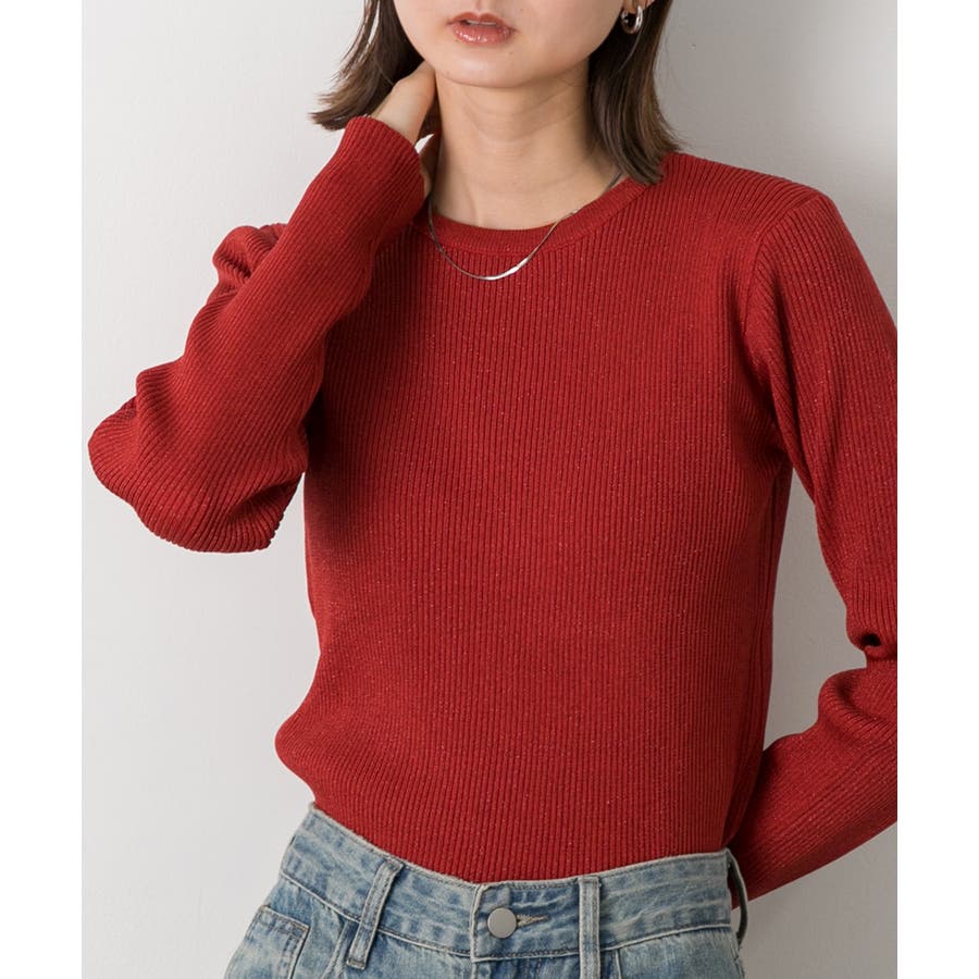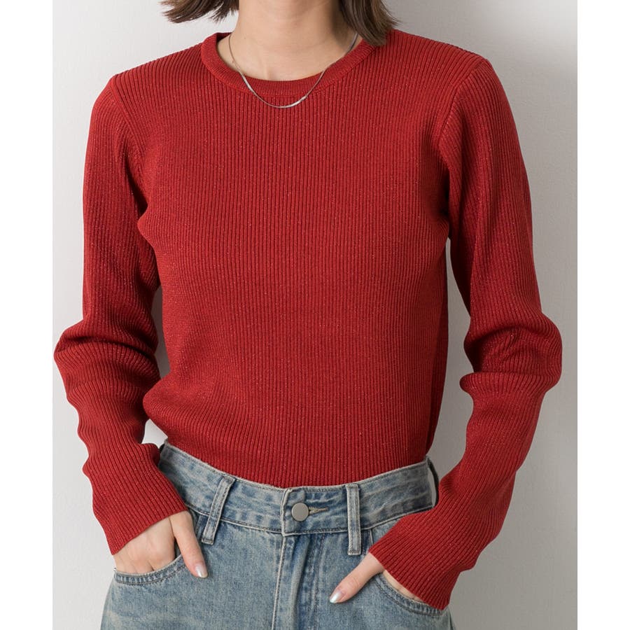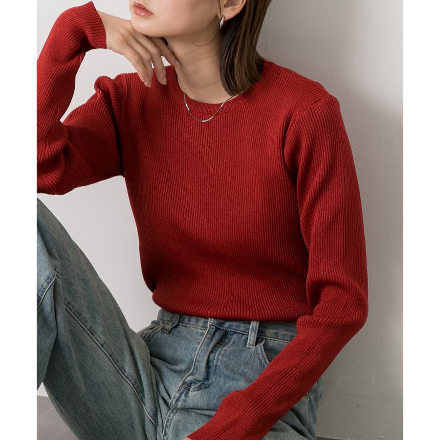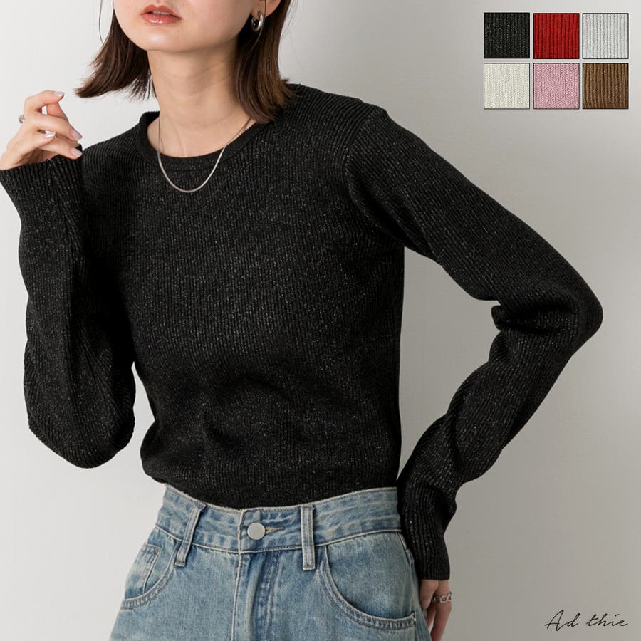 春 春コーデ 春ファッション 春服 冬 冬コーデ 冬ファッション 冬服 カジュアル カジュアルコーデ 大人 大人カジュアル オフィスカジュアル オフィス オフィスファッション オフィススタイル 韓国 韓国ファッション 韓国コーデ プチプラ プチプラファッション レディース Y2K 量産型 キレイめ 綺麗め きれい きちんと ラメ ラメニット クルーネック シンプル ラメトップス やわらか セーター 上品ニット 長袖ニット 長袖 ラウンドネック ブラック 黒 グレー レッド ブラウン