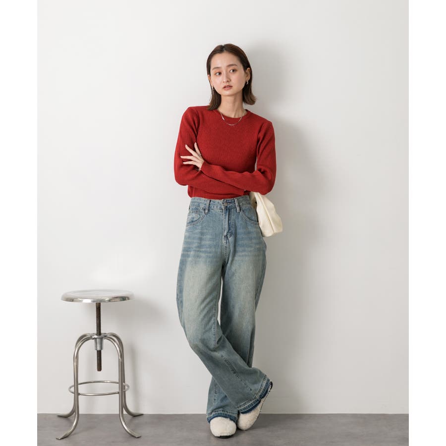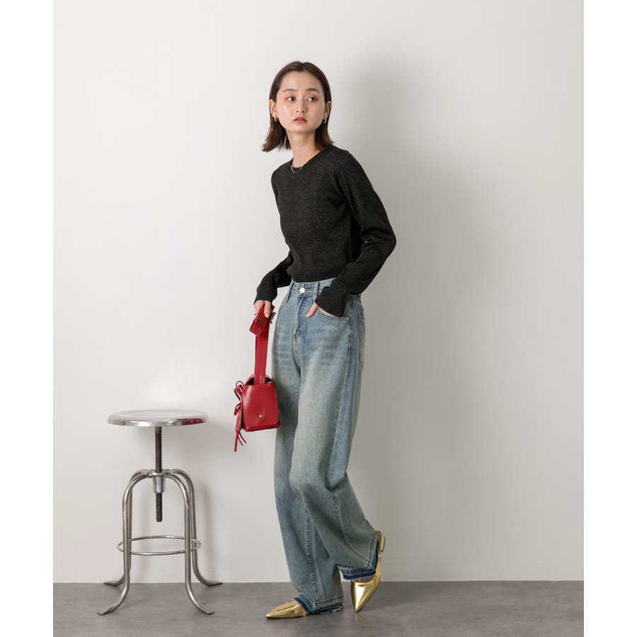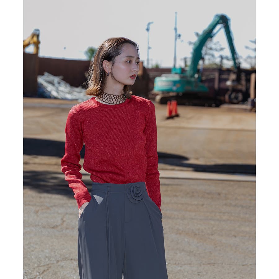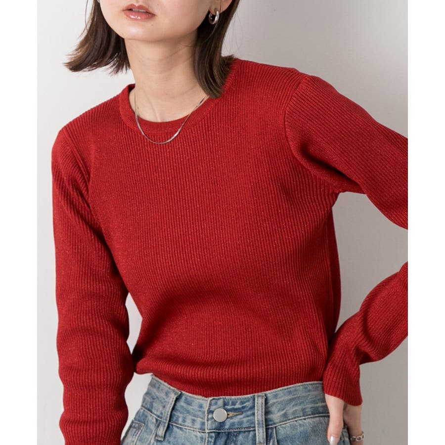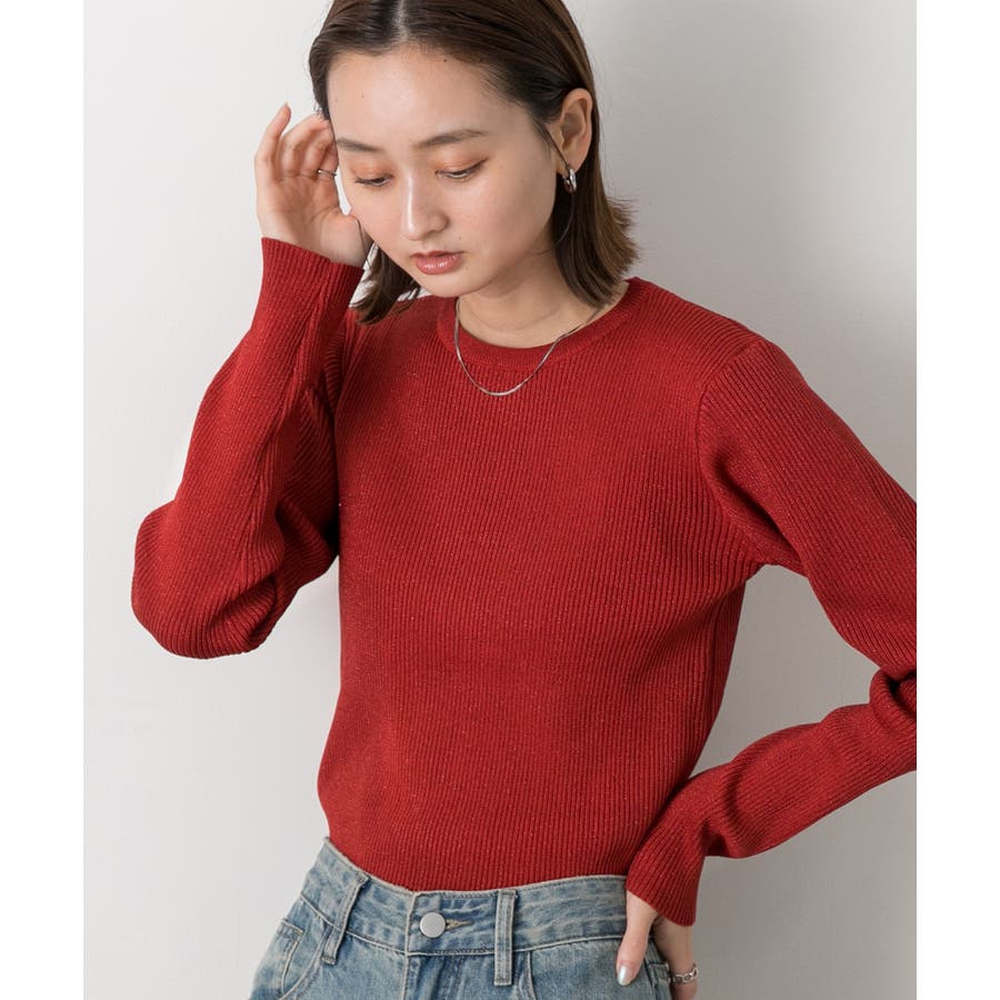 春 春コーデ 春ファッション 春服 冬 冬コーデ 冬ファッション 冬服 カジュアル カジュアルコーデ 大人 大人カジュアル オフィスカジュアル オフィス オフィスファッション オフィススタイル 韓国 韓国ファッション 韓国コーデ プチプラ プチプラファッション レディース Y2K 量産型 キレイめ 綺麗め きれい きちんと ラメ ラメニット クルーネック シンプル ラメトップス やわらか セーター 上品ニット 長袖ニット 長袖 ラウンドネック ブラック 黒 グレー レッド ブラウン