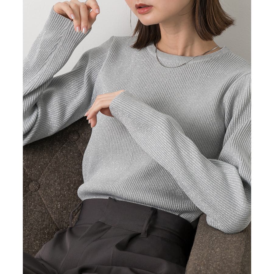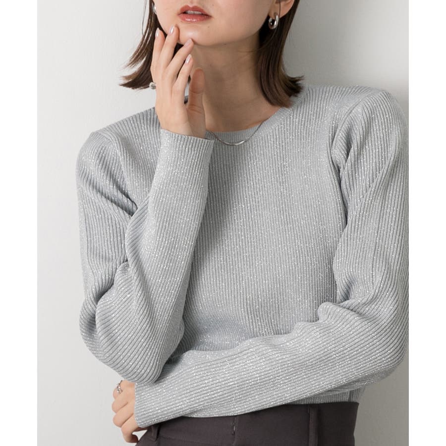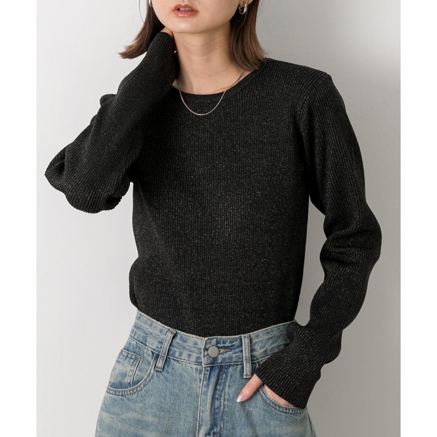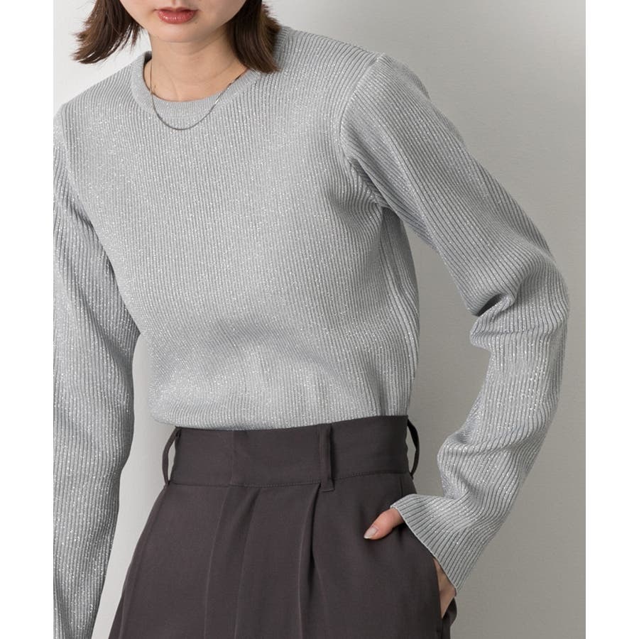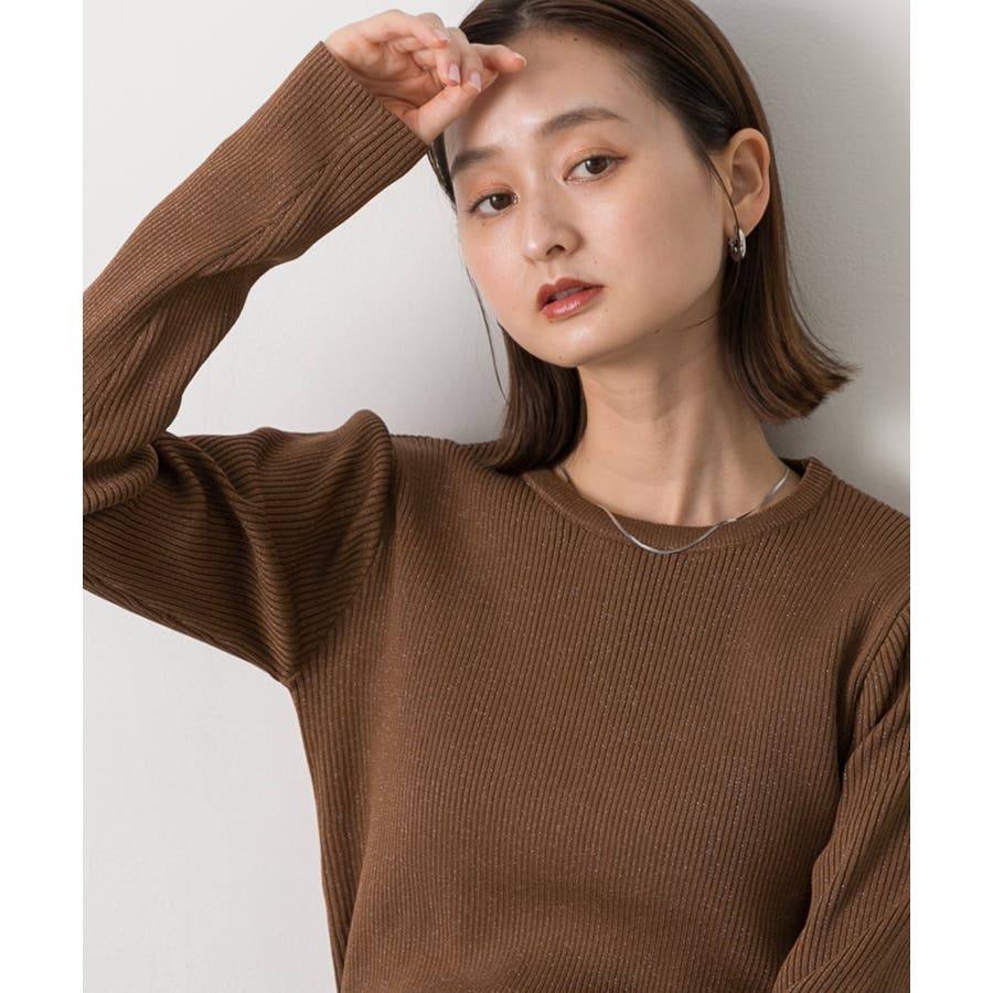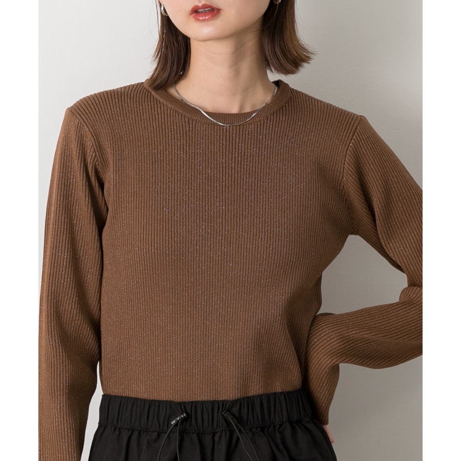 さりげなく輝くラメがポイントになる、シンプルなクルーネックニットトップス