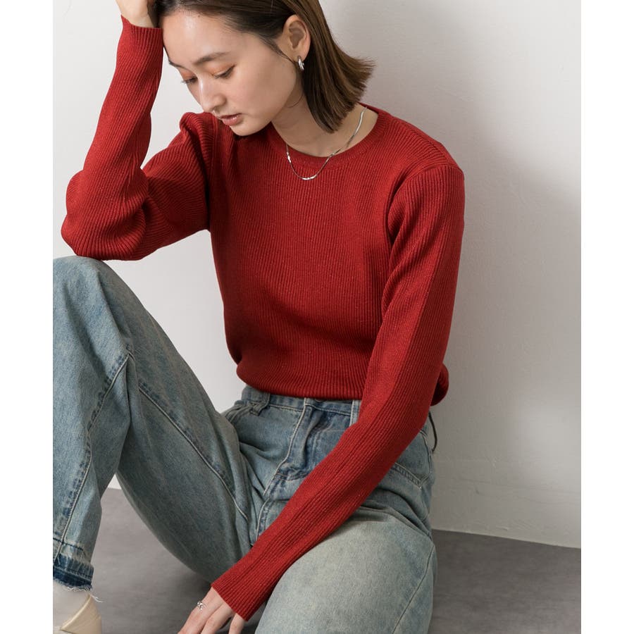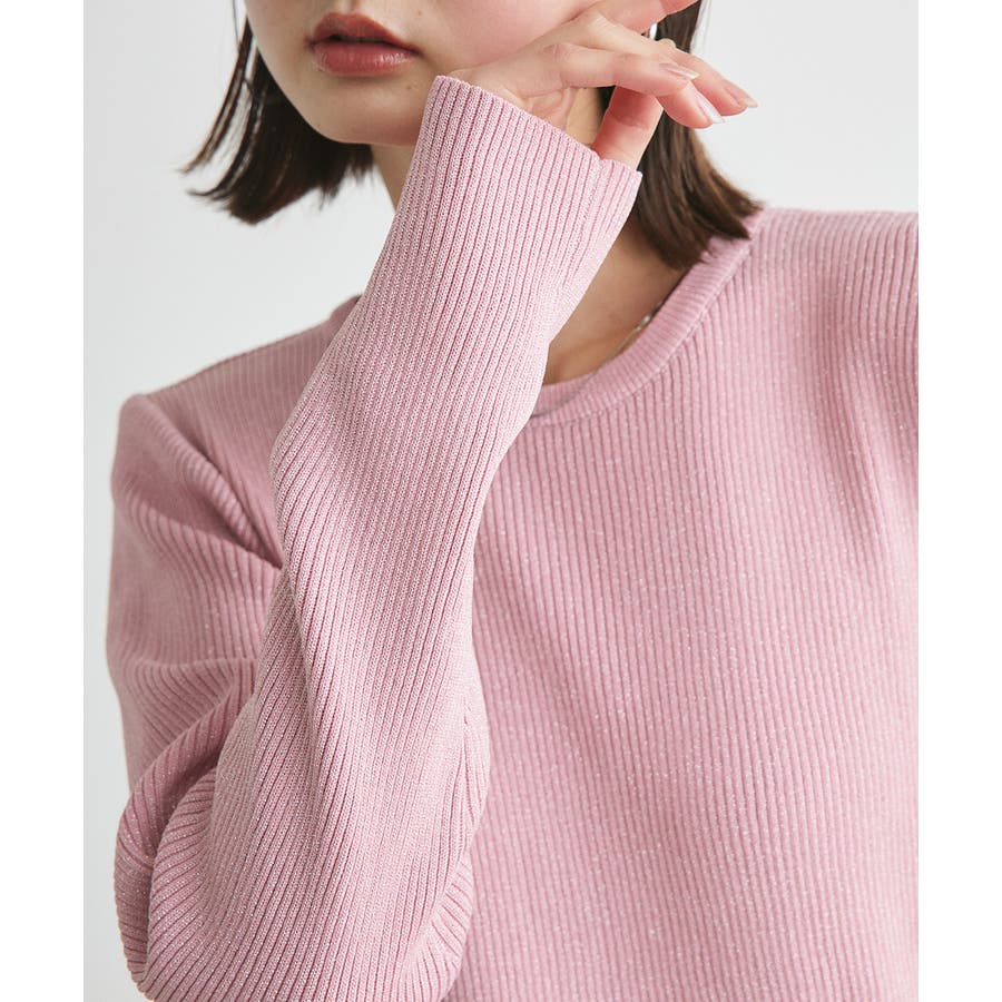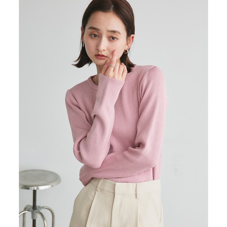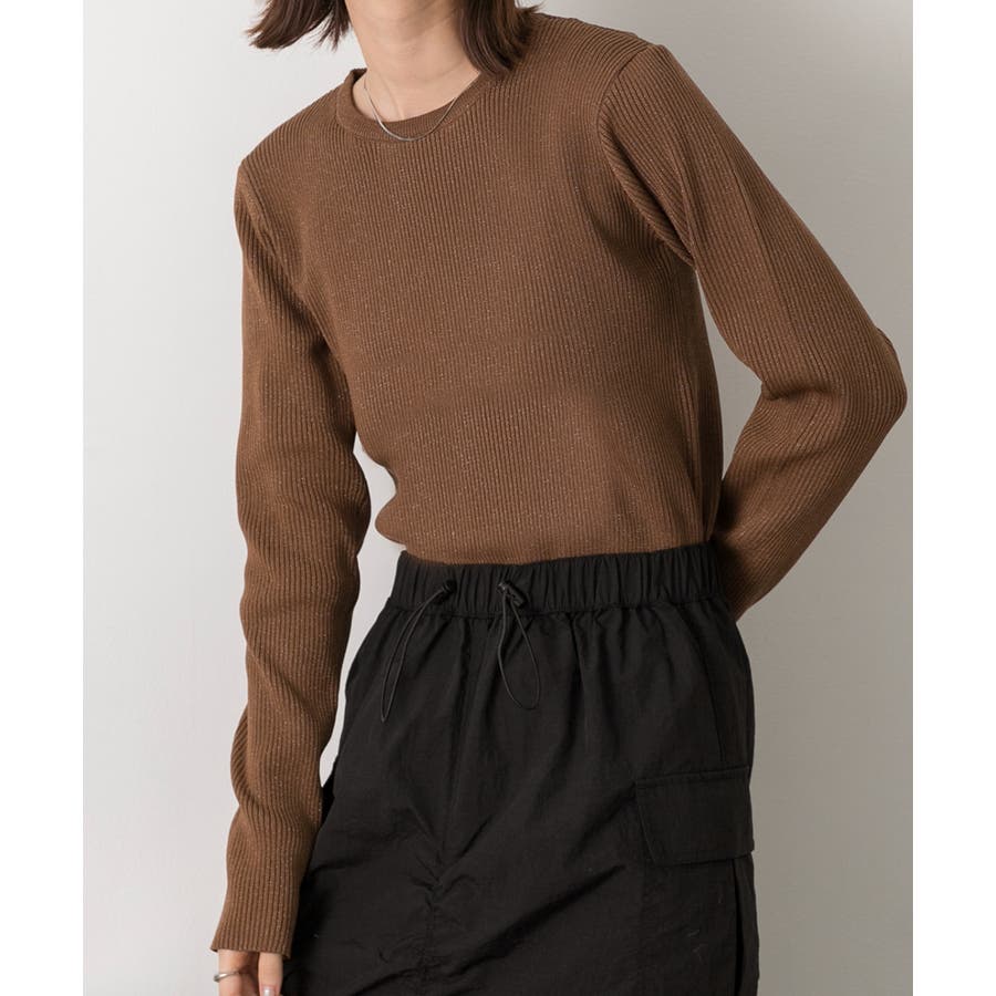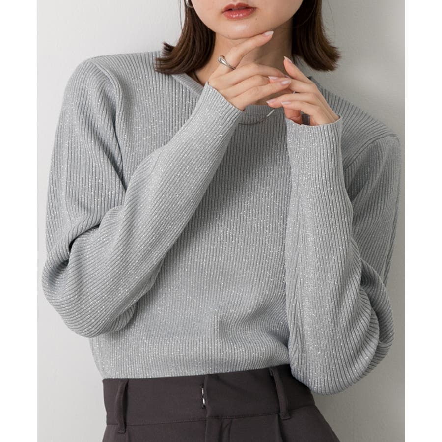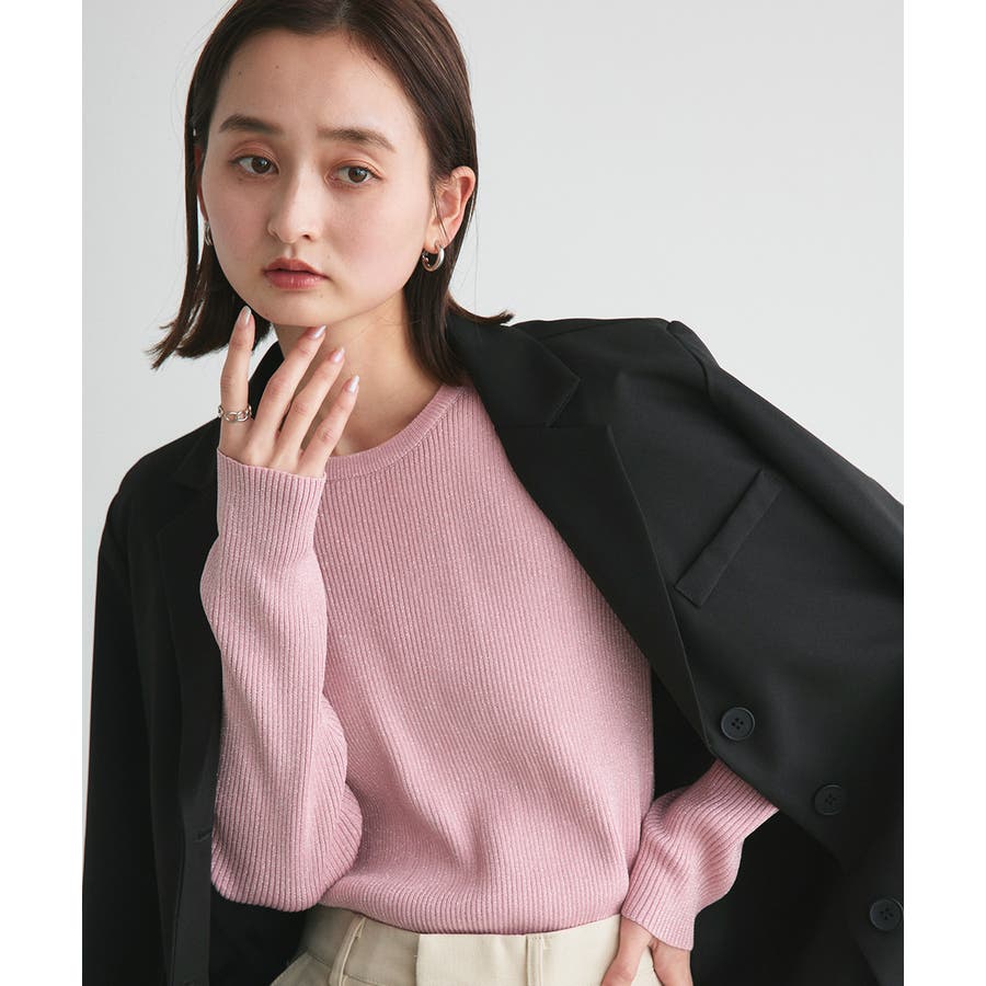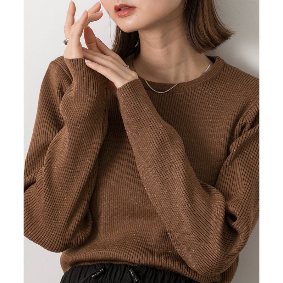 さりげなく輝くラメがポイントになる、シンプルなクルーネックニットトップス