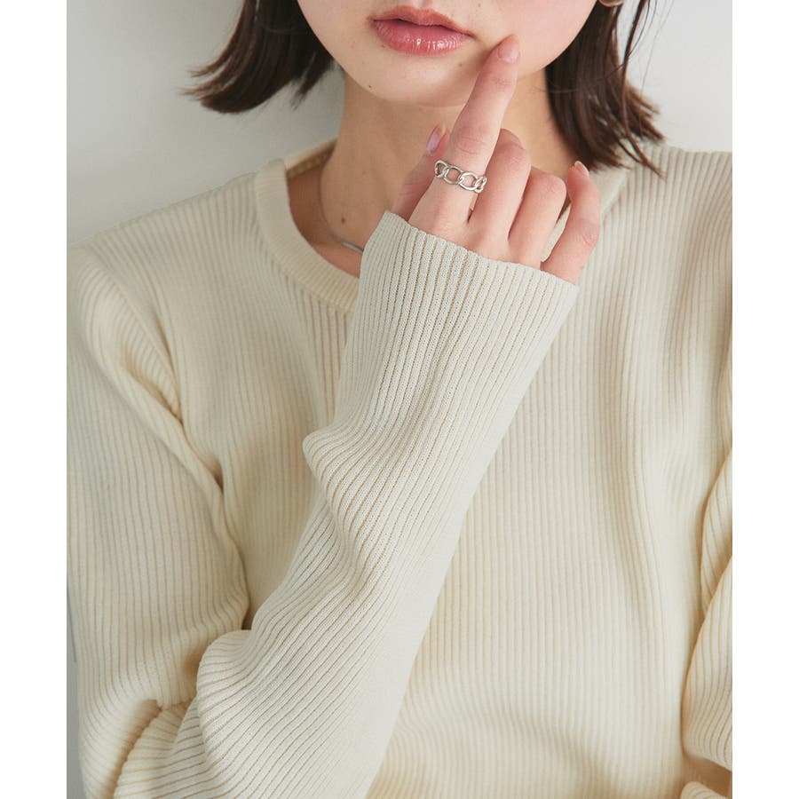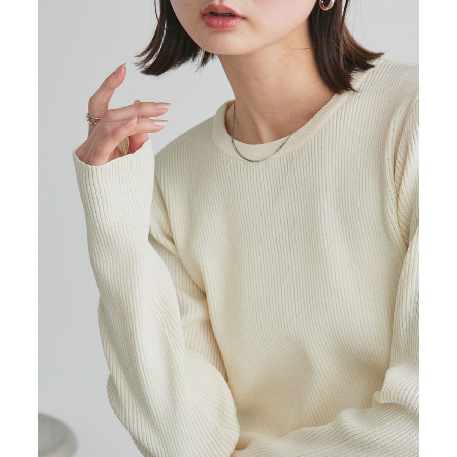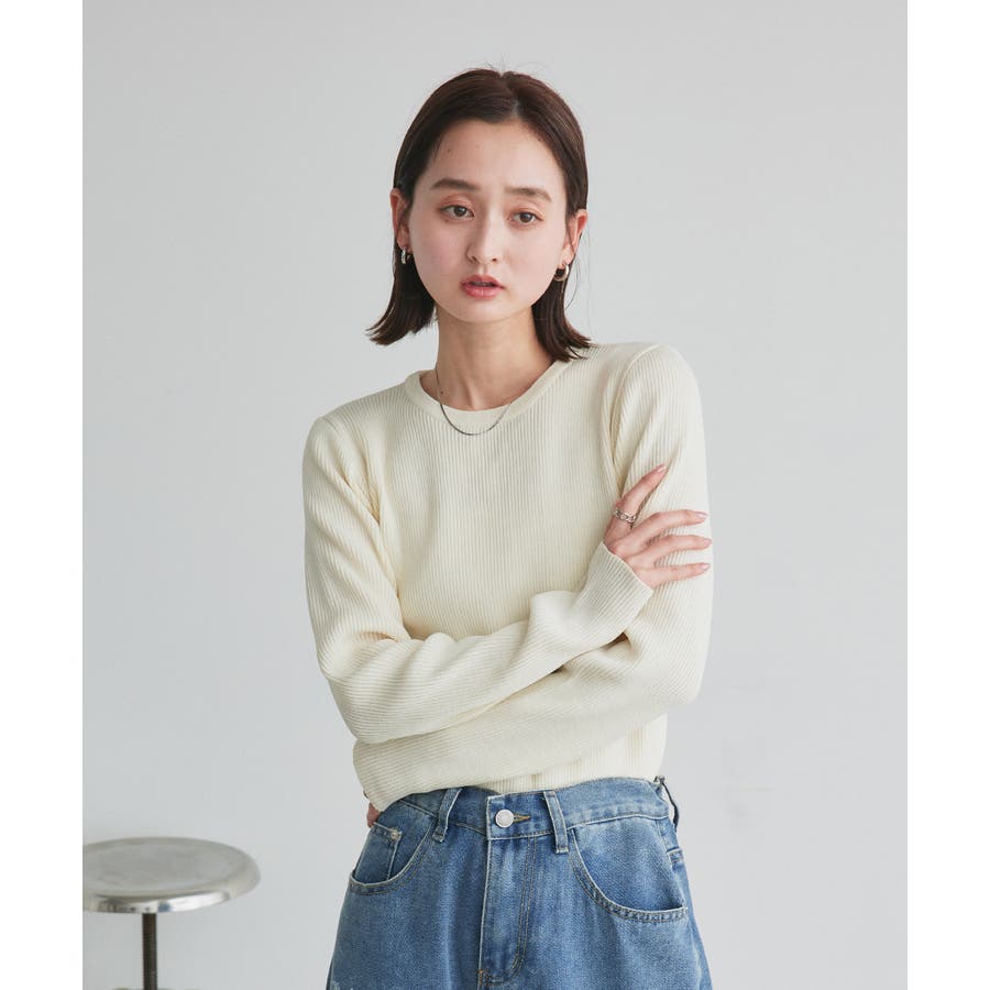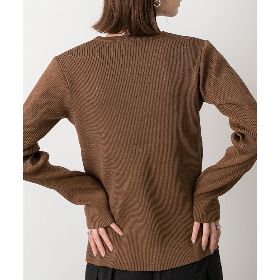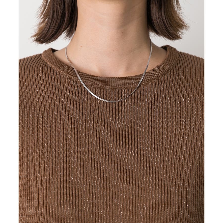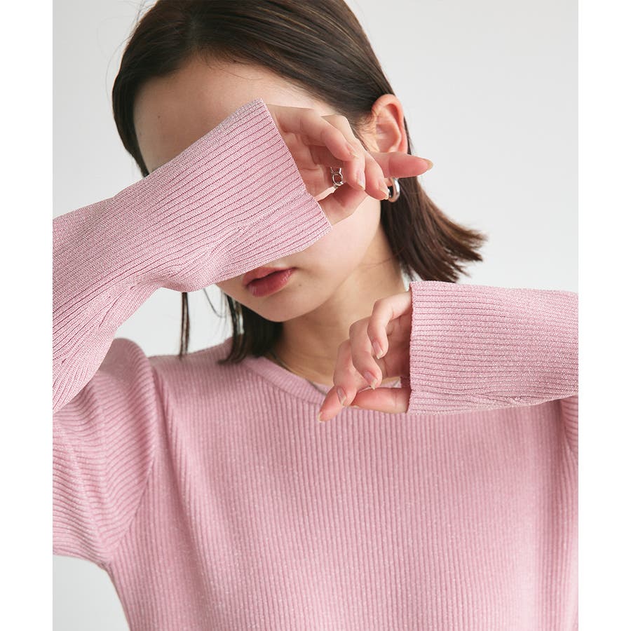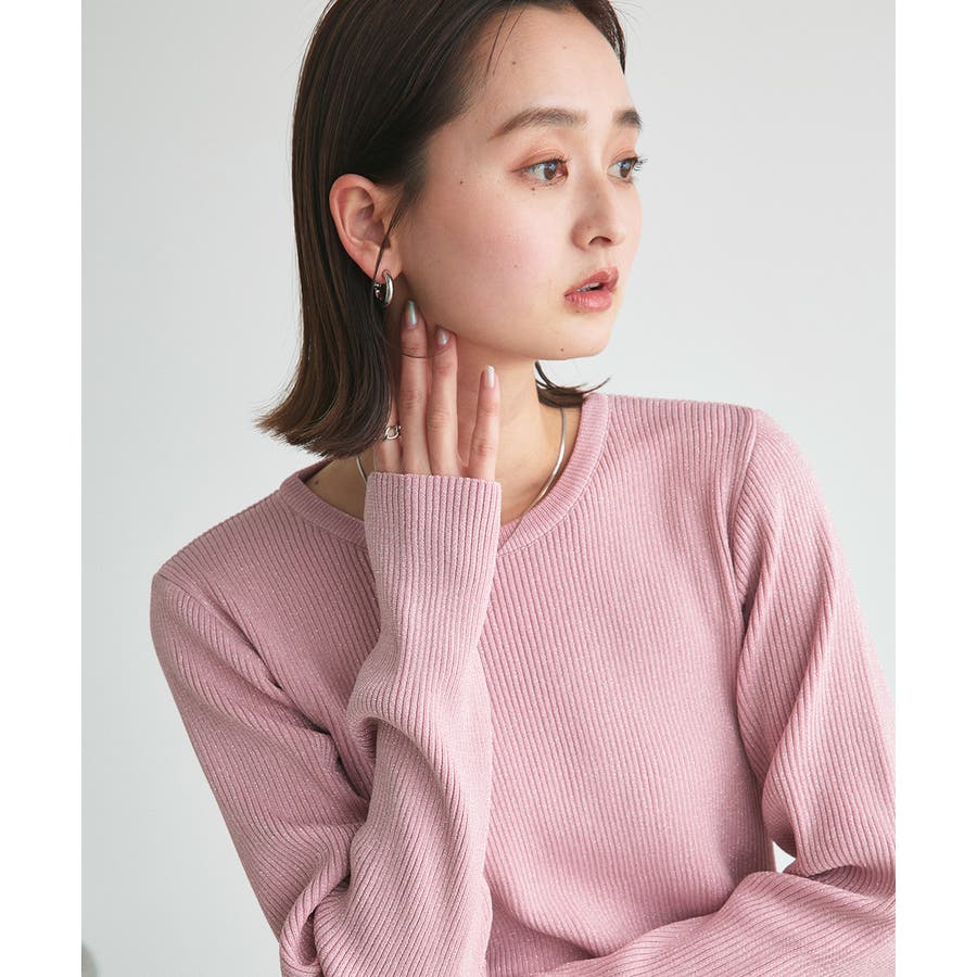 さりげなく輝くラメがポイントになる、シンプルなクルーネックニットトップス