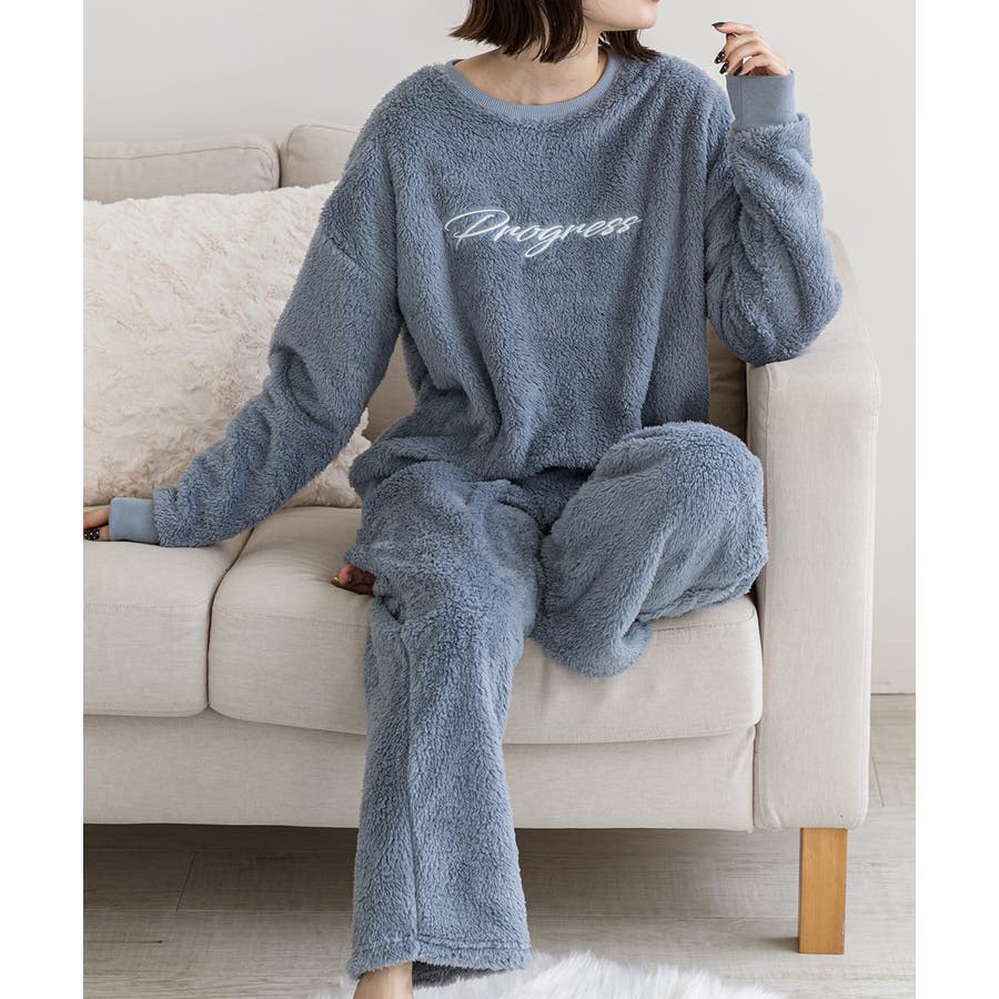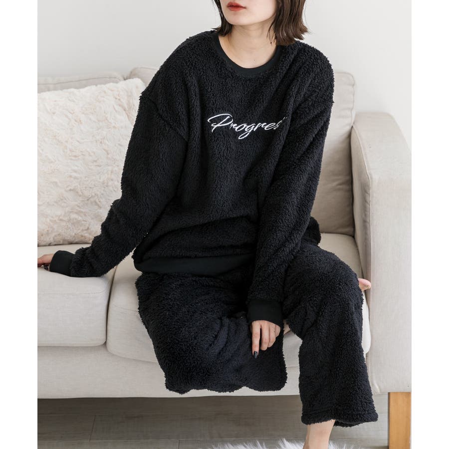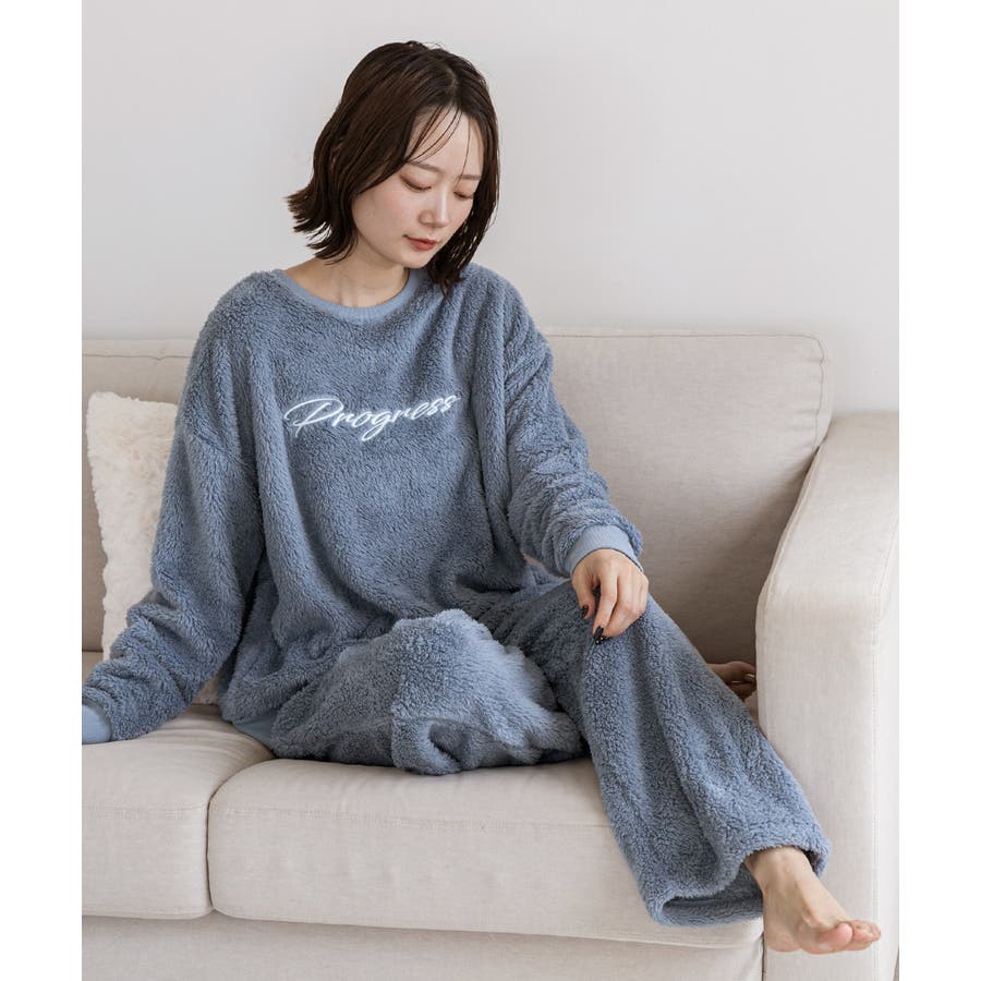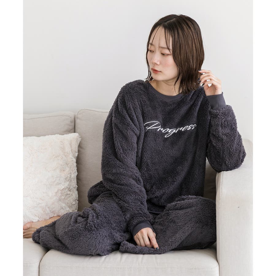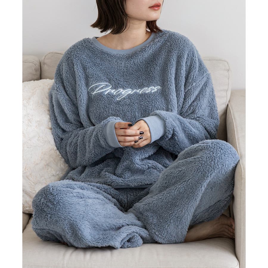 もこもことした触り心地のボア素材が見た目も着心地もほっこりと暖かく、冬のルームウェアにピッタリ!