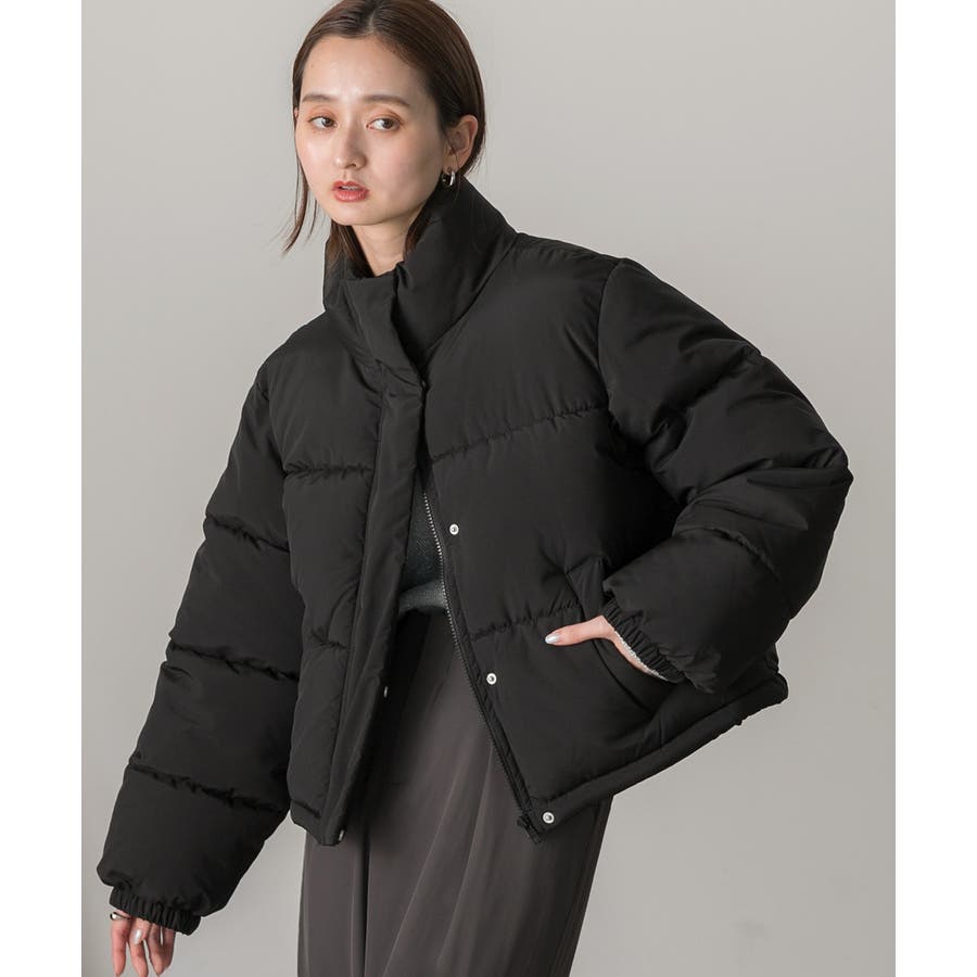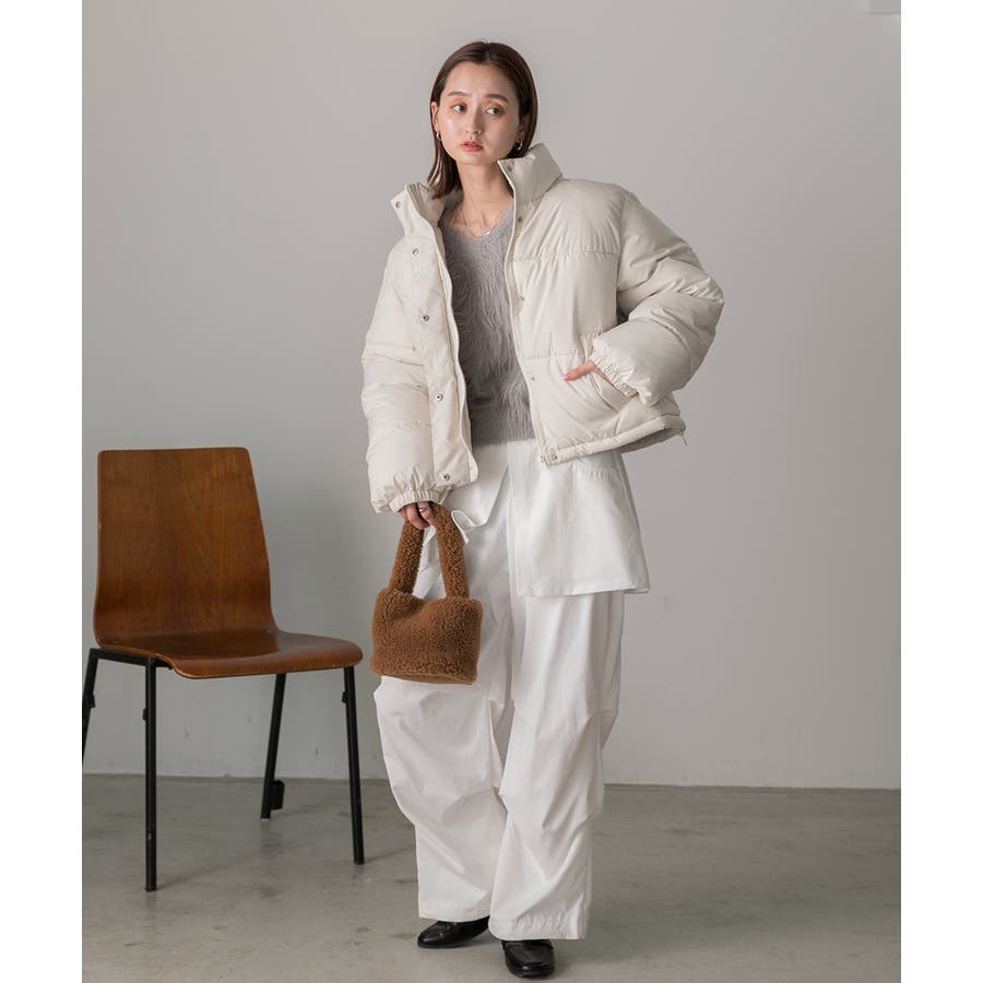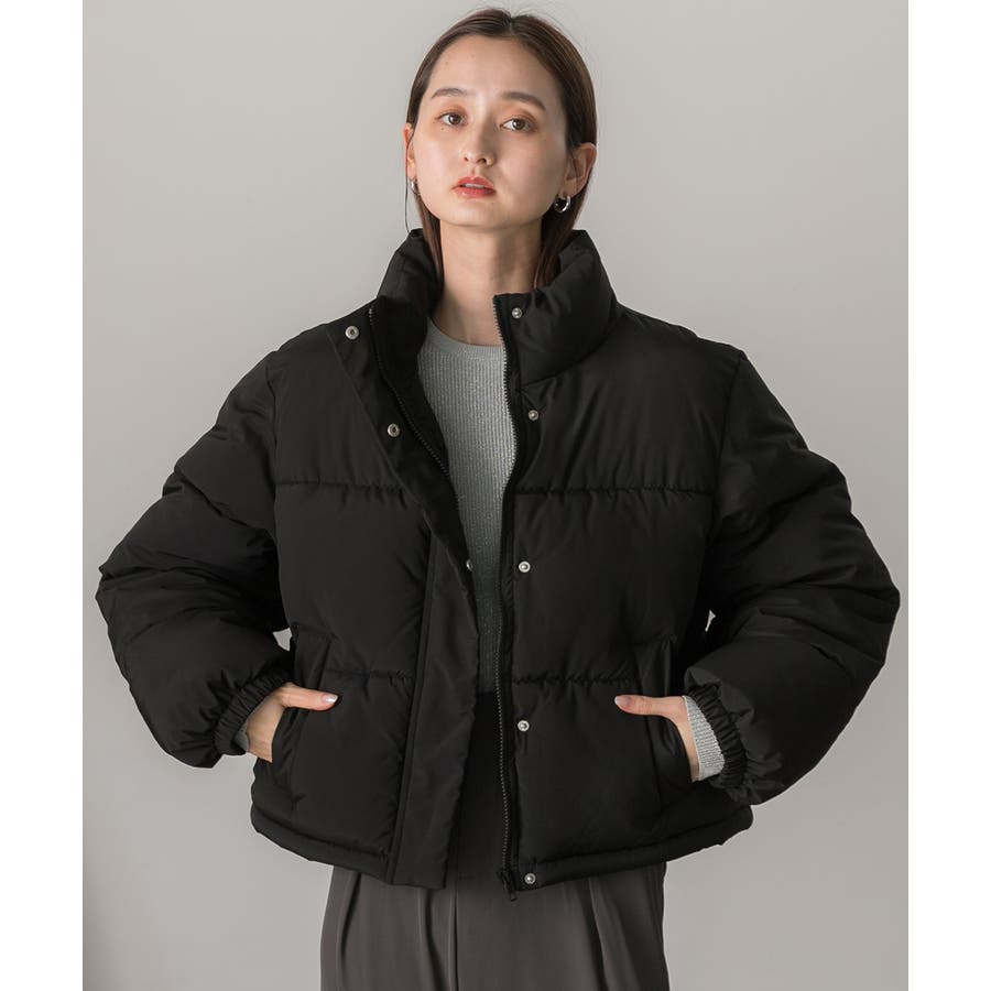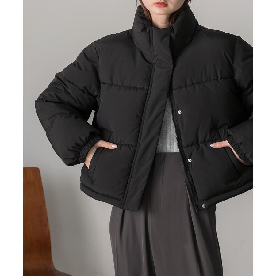 保温性の高いスタンドカラーで首もとが暖かく、たっぷりと入った中綿が程よいボリューム感を出してくれる女性らしいシルエットのアウターです