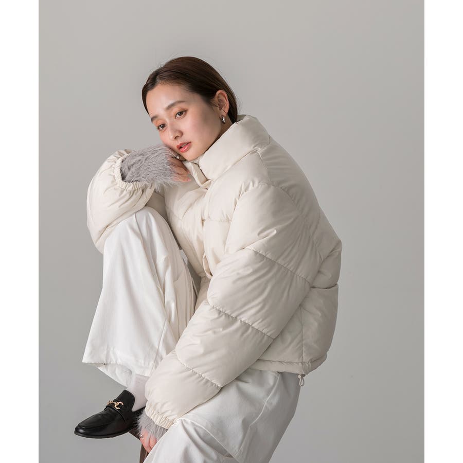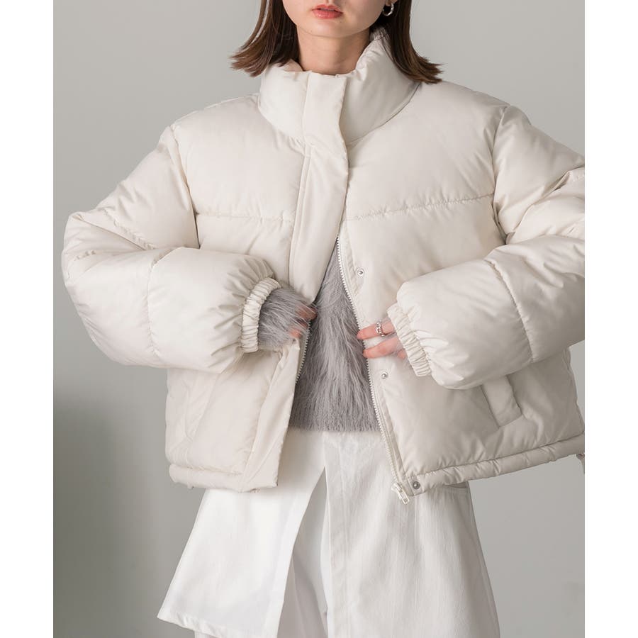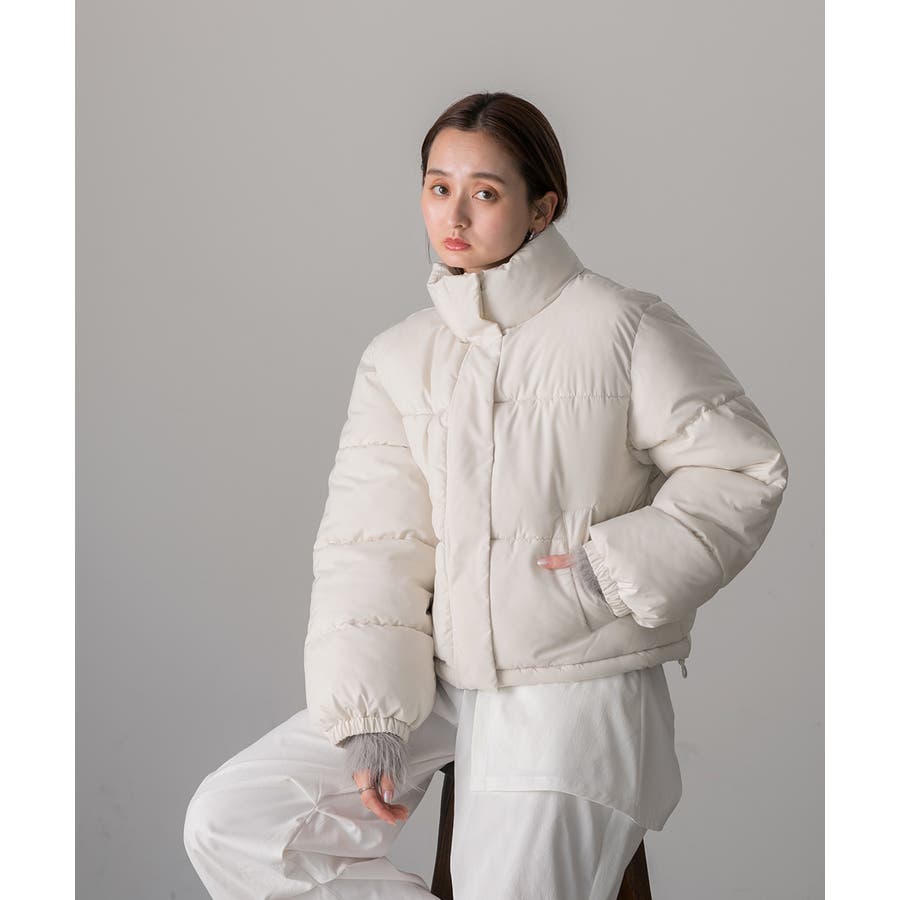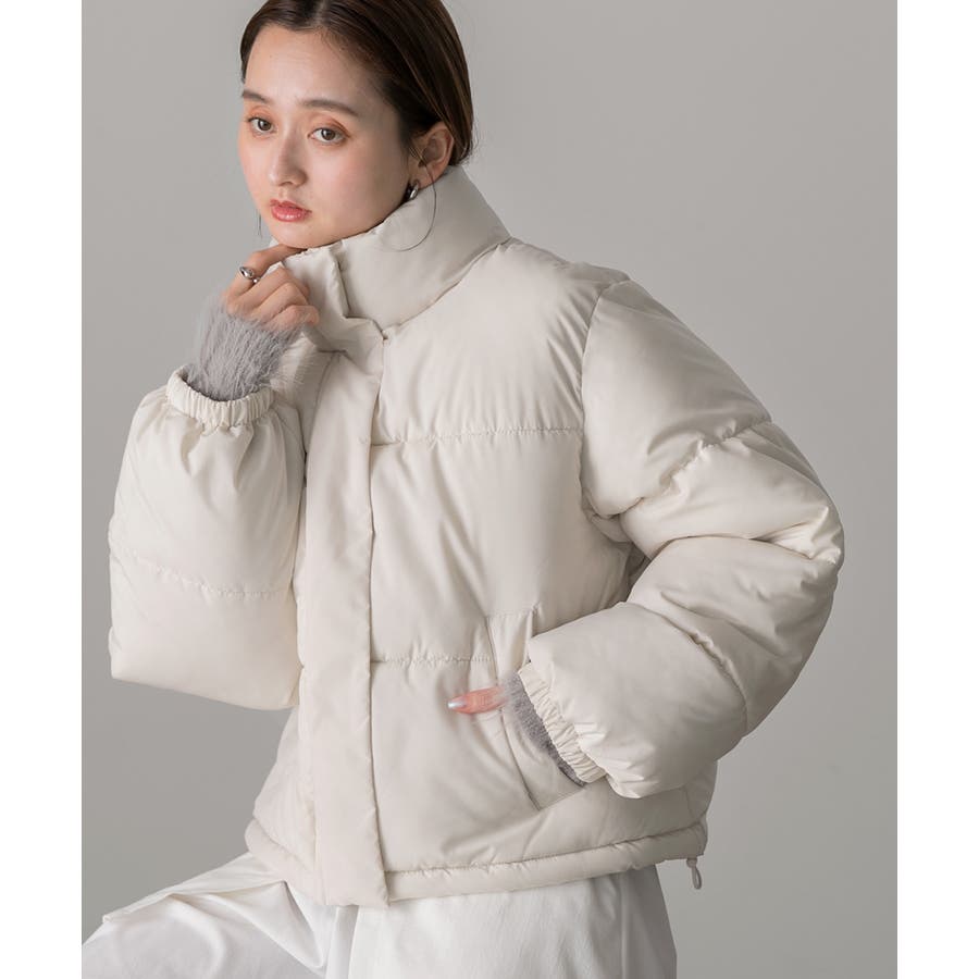 保温性の高いスタンドカラーで首もとが暖かく、たっぷりと入った中綿が程よいボリューム感を出してくれる女性らしいシルエットのアウターです