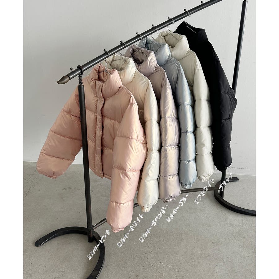 春 春コーデ 春ファッション 春服 冬 冬コーデ 冬ファッション 冬服 カジュアル カジュアルコーデ 大人 大人カジュアル オフィスカジュアル オフィス オフィスファッション オフィススタイル 韓国 韓国ファッション 韓国コーデ プチプラ プチプラファッション レディース Y2K 量産型 キレイめ 綺麗め きれい きちんと アウター ダウン ブルゾン 中綿アウター 中綿ダウンジャケット 中綿ブルゾン ショート丈 ショート丈アウター ショート丈ブルゾン シャイニー スタンドカラー 防寒 防寒対策 ライトアウター ボリュームアウター あったか 暖か ミルキー 光沢 シャイニー ミルキーホワイト ブラック 黒 ミルキーピンク オフホワイト 白 ミルキーブルー ミルキーラベンダー ホワイト ピンク ブルー ラベンダー