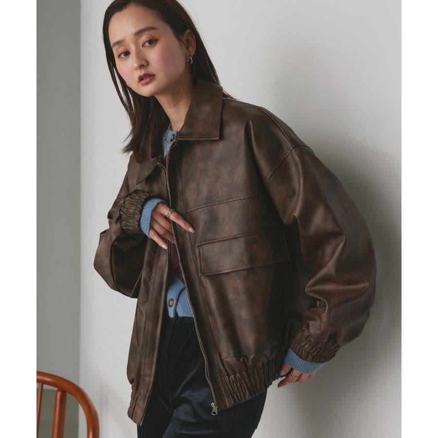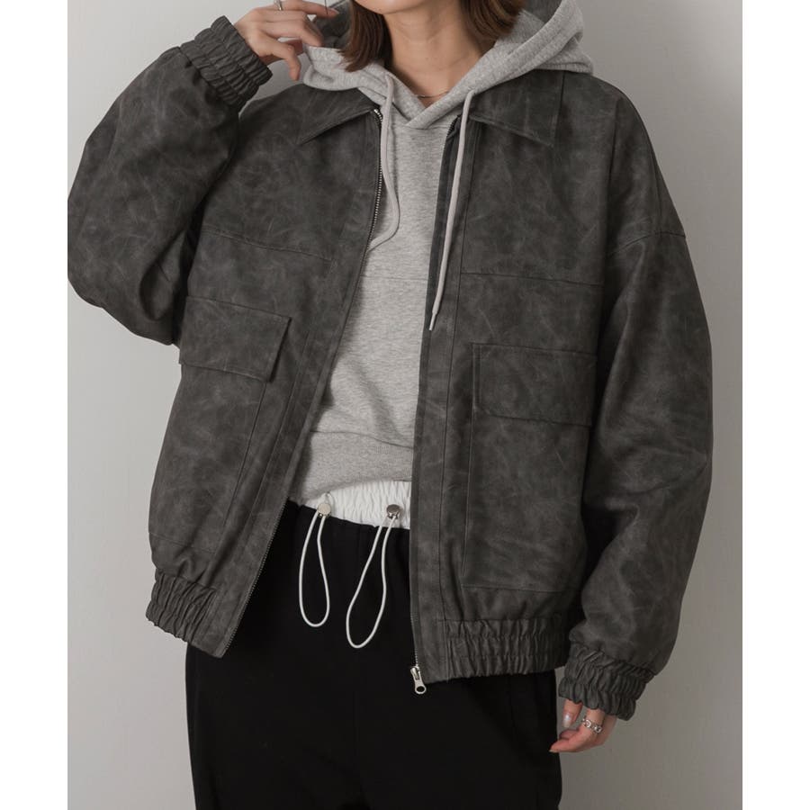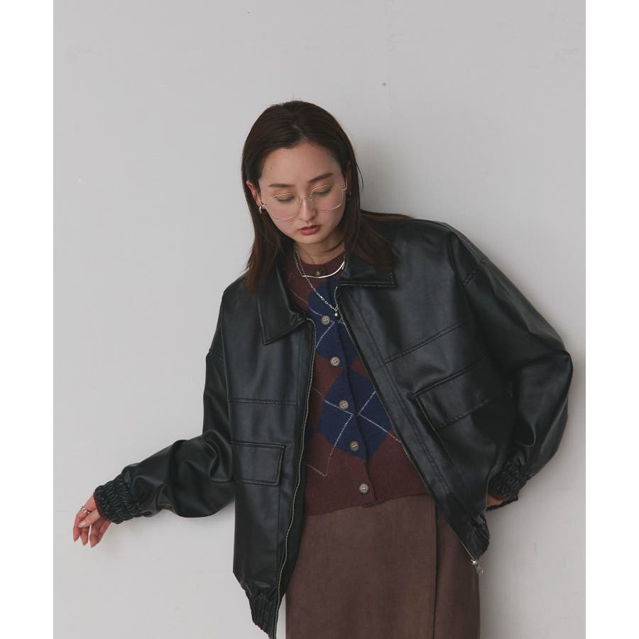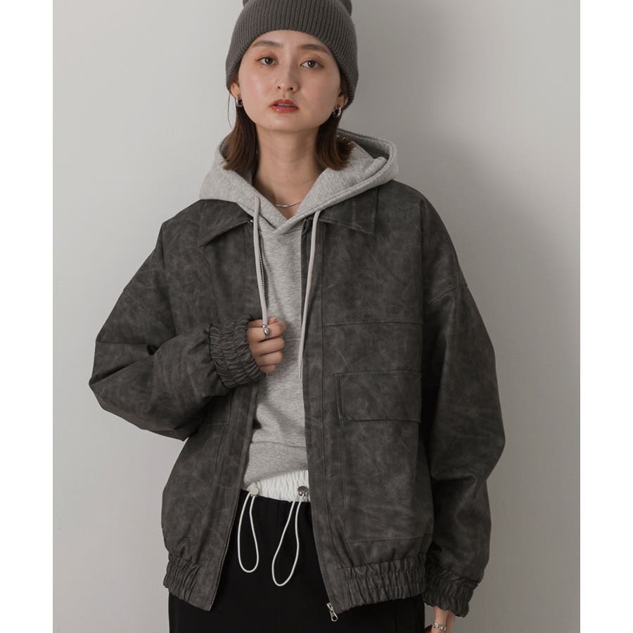 春 春コーデ 春ファッション 春服 冬 冬コーデ 冬ファッション 冬服 カジュアル カジュアルコーデ 大人 大人カジュアル オフィスカジュアル オフィス オフィスファッション オフィススタイル 韓国 韓国ファッション 韓国コーデ プチプラ プチプラファッション レディース Y2K 量産型 キレイめ 綺麗め きれい きちんと 合成皮革 合皮 ジャケット ブルゾン ジップアップ フルジップアップ ポケット ヴィンテージ ワイドシルエット オーバーサイズ 大きめアウター 大きめブルゾン 黒 ブラック グレー ボルドー ブラウン カーキ