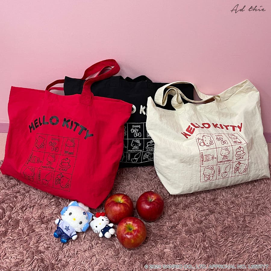 春 春コーデ 春ファッション 春服 冬 冬コーデ 冬ファッション 冬服 カジュアル カジュアルコーデ 大人 大人カジュアル オフィスカジュアル オフィス オフィスファッション オフィススタイル 韓国 韓国ファッション 韓国コーデ プチプラ プチプラファッション レディース Y2K 量産型 キレイめ 綺麗め きれい きちんと トート トートバッグ エコバッグ 大容量トート マチあり ナイロンバッグ 大容量バッグ A4サイズ対応 キティ ハローキティ HELLO KITTY キティコラボ サンリオ SANRIO キティ50周年 キティ50th 黒 ブラック 赤 レッド アイボリー