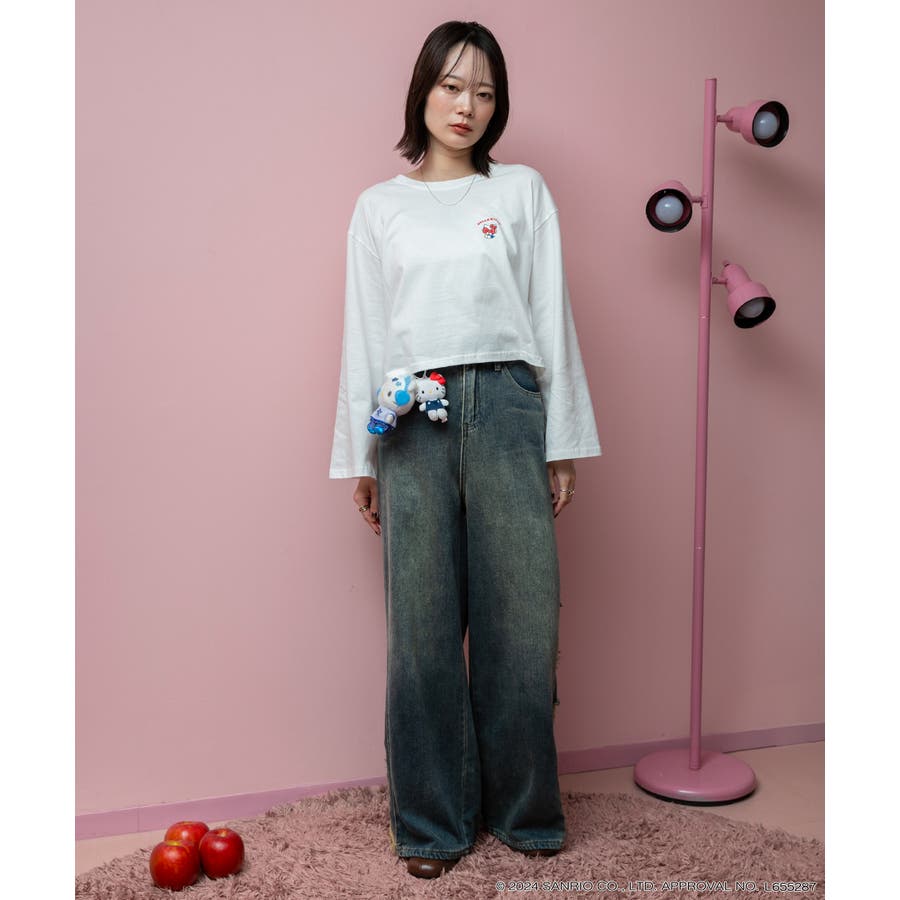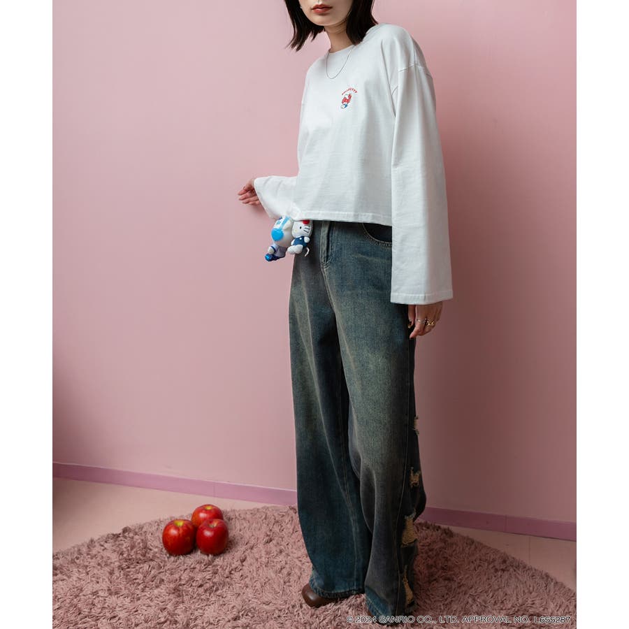 春 春コーデ 春ファッション 春服 冬 冬コーデ 冬ファッション 冬服 カジュアル カジュアルコーデ 大人 大人カジュアル オフィスカジュアル オフィス オフィスファッション オフィススタイル 韓国 韓国ファッション 韓国コーデ プチプラ プチプラファッション レディース Y2K 量産型 キレイめ 綺麗め きれい きちんと 裏毛 スウェット スエット 長袖 長袖トップス キティ ハローキティ HEKLLO KITTY サンリオ SANRIO トップス ロンT ロングTシャツ シンプル ベーシック ゆったり ショート丈 ショート丈トップス ワイド ワイドシルエット クルーネック ボリューム袖 ボリュームスリーブ ベルスリーブ キティコラボ キティ50周年 キティ50th オフホワイト 白 チャコール