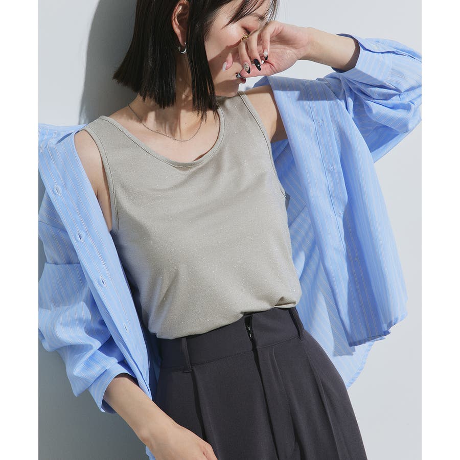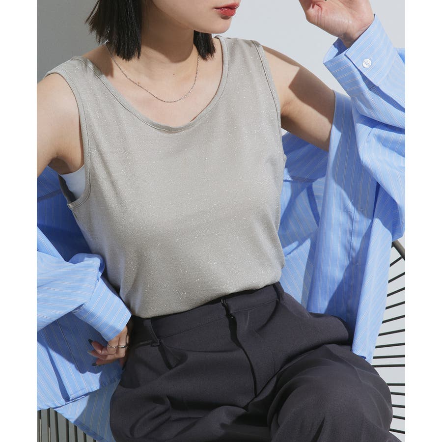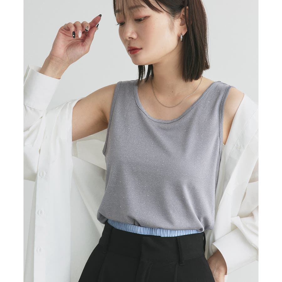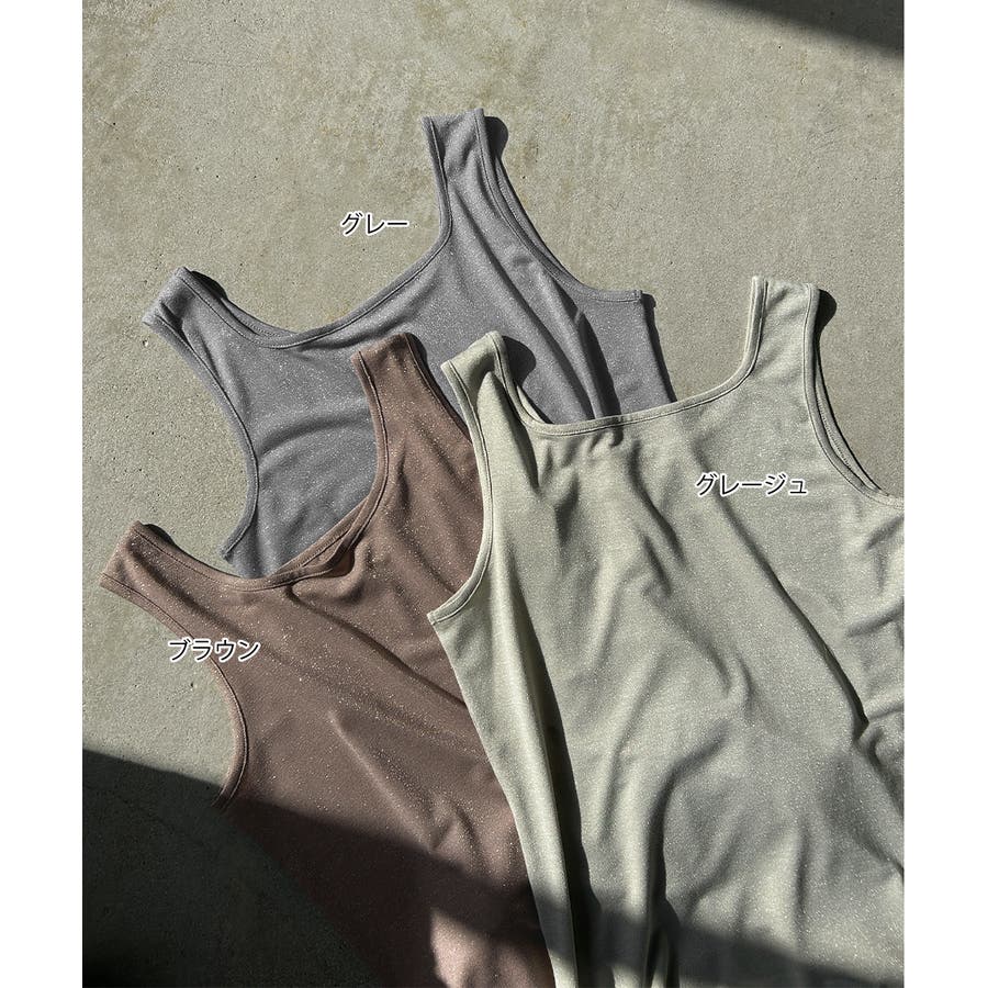 春 春コーデ 春ファッション 春服 夏 夏コーデ 夏ファッション 夏服 秋服 冬服 秋ファッション 冬ファッション カジュアル カジュアルコーデ 大人 大人カジュアル オフィスカジュアル オフィス オフィスファッション オフィススタイル 韓国 韓国ファッション 韓国コーデ プチプラ プチプラファッション レディース Y2K 量産型 キレイめ 綺麗め きれい きちんと タンクトップ タンク インナー 重ね着 レイヤード ラメ グリッター 2way 前後使用 ラウンドネック スクエアネック キラキラ グレージュ グレー ブラウン