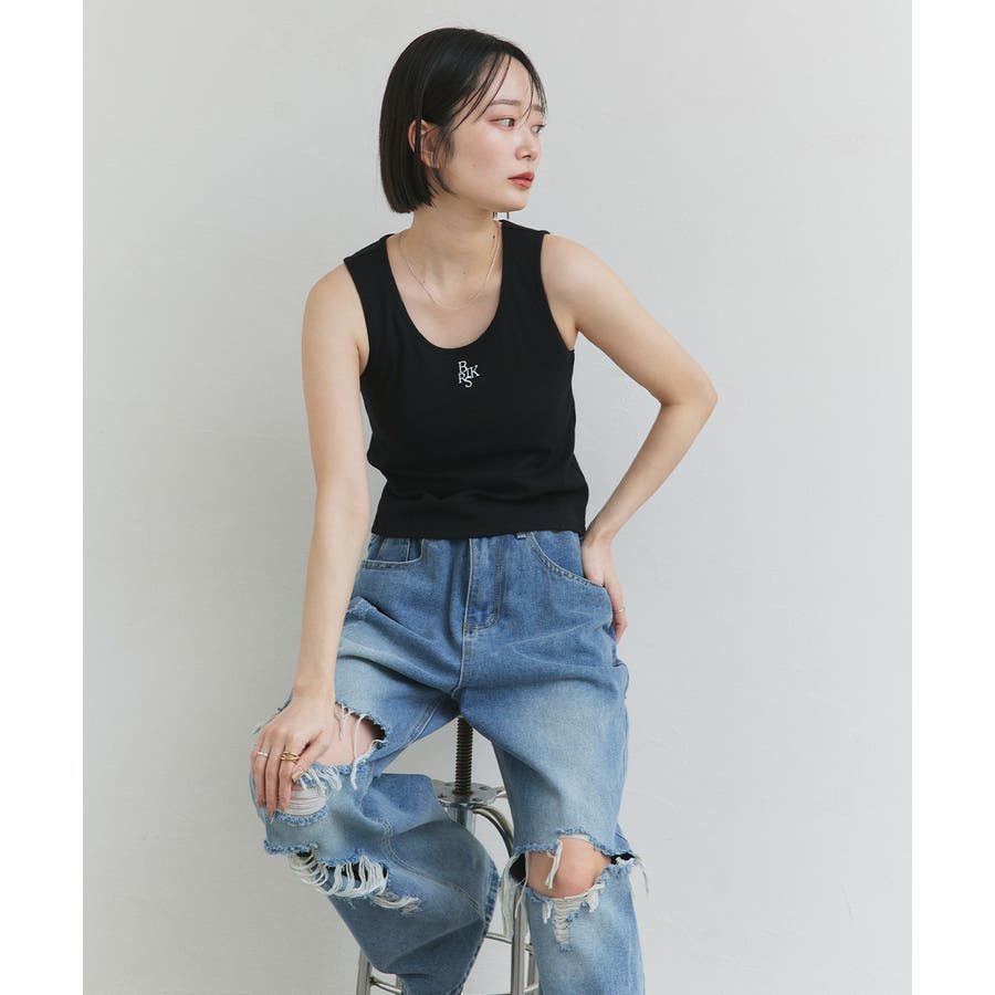 ヘルシーな肌見せを叶えるロゴ刺繍タンクトップ。