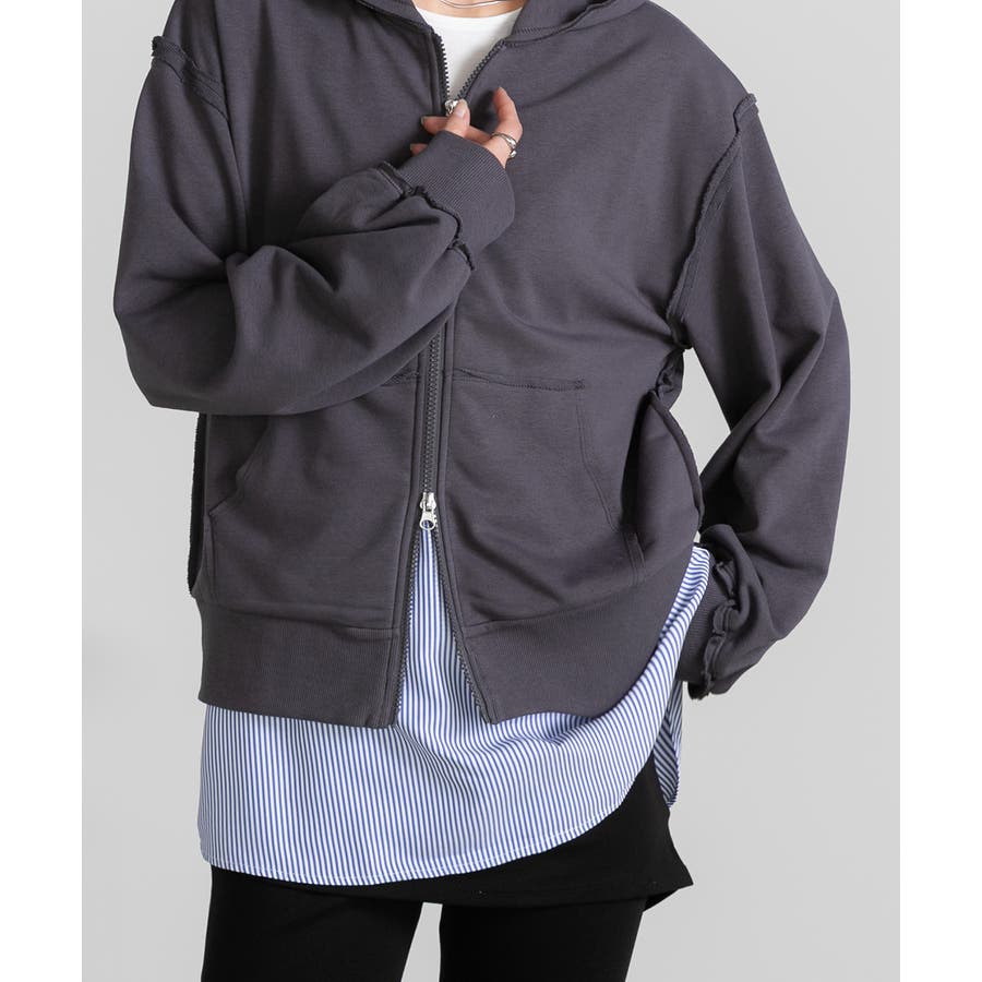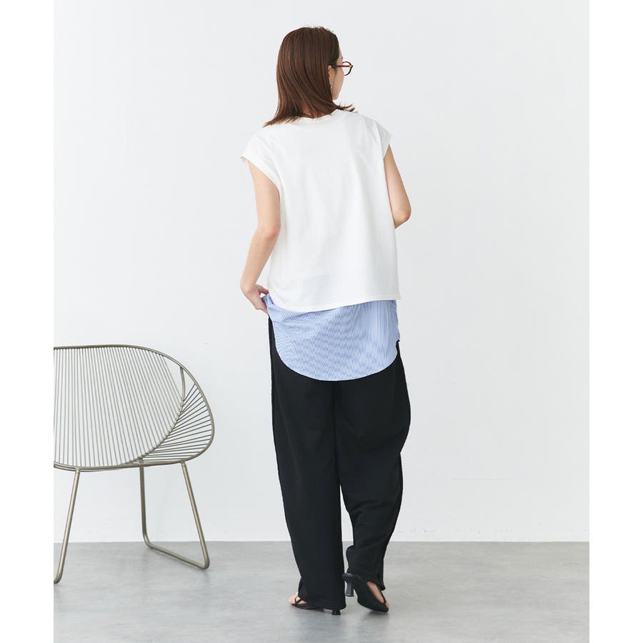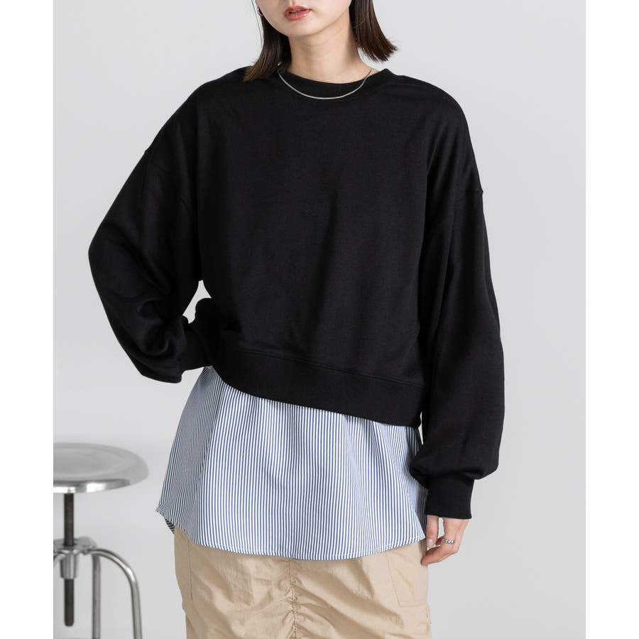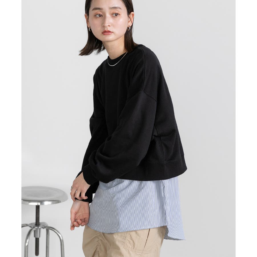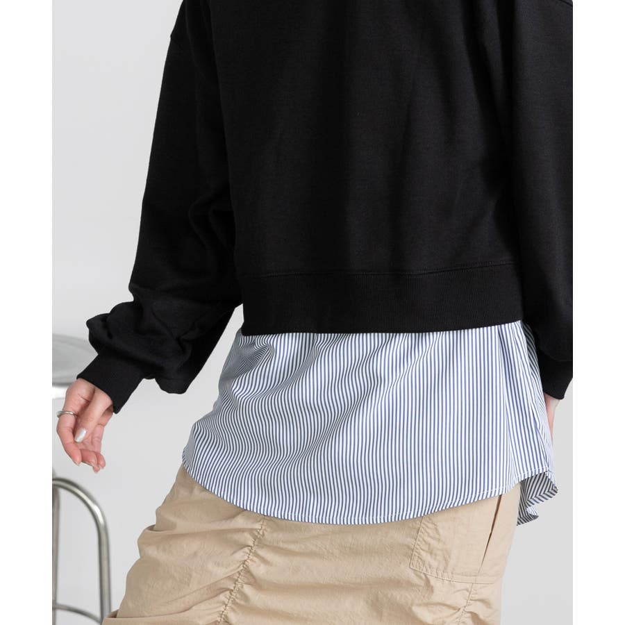 シャツの裾部分をドッキングしたレイヤードアイテム。