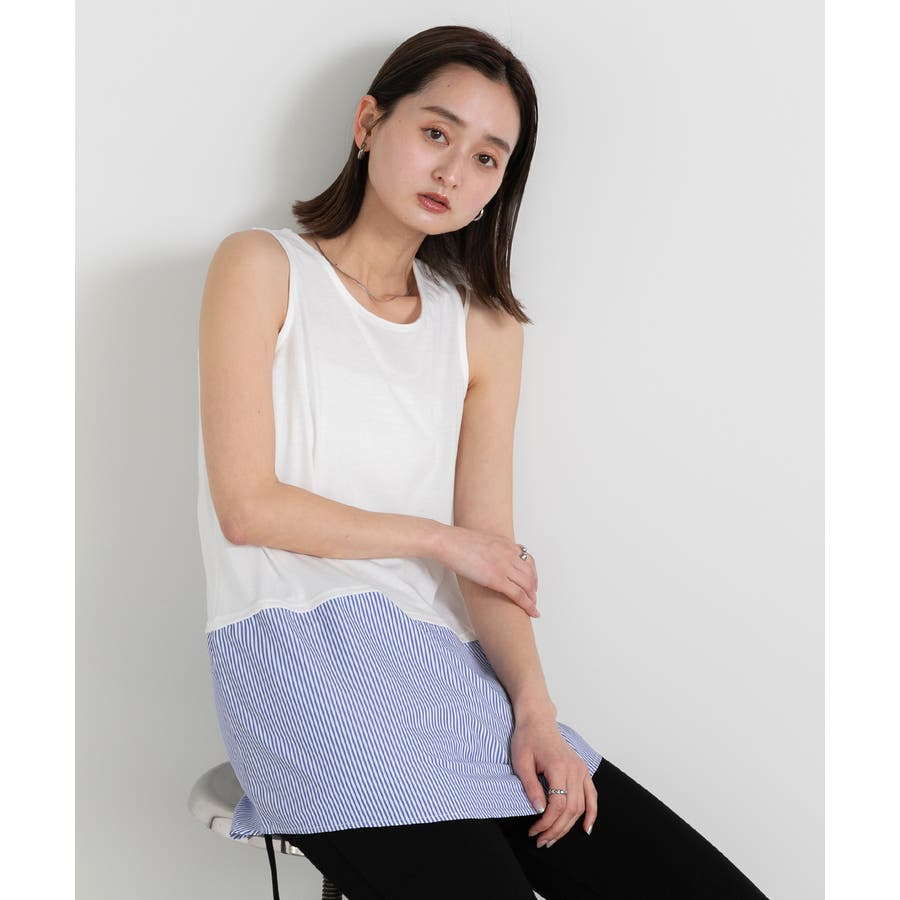 春 春コーデ 春ファッション 春服 夏 夏コーデ 夏ファッション 夏服 カジュアル カジュアルコーデ 大人 大人カジュアル オフィスカジュアル オフィス オフィスファッション オフィススタイル 韓国 韓国ファッション 韓国コーデ プチプラ プチプラファッション レディース Y2K 量産型 キレイめ 綺麗め きれい きちんと タンクトップ タンク キャミ キャミソール インナー ロング丈 ゆったり レイヤードインナー ノースリーブ 肌着 重ね着 インナータンクトップ デザインタンクトップ レイヤード 無地 ストライプ チラ見せ シャツ ストライプシャツ 楽 楽ちん ストレスフリー シンプル 切り替え 切替 異素材 異素材切り替え 裾デザイン オフホワイト 白 ブルー ネイビー