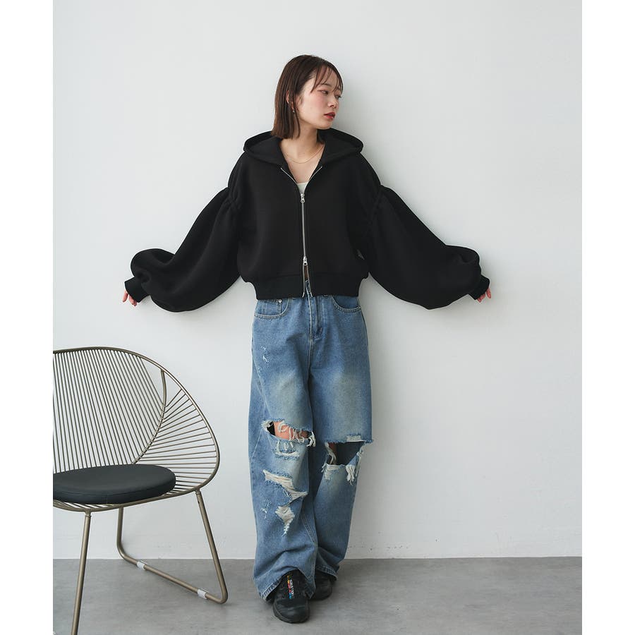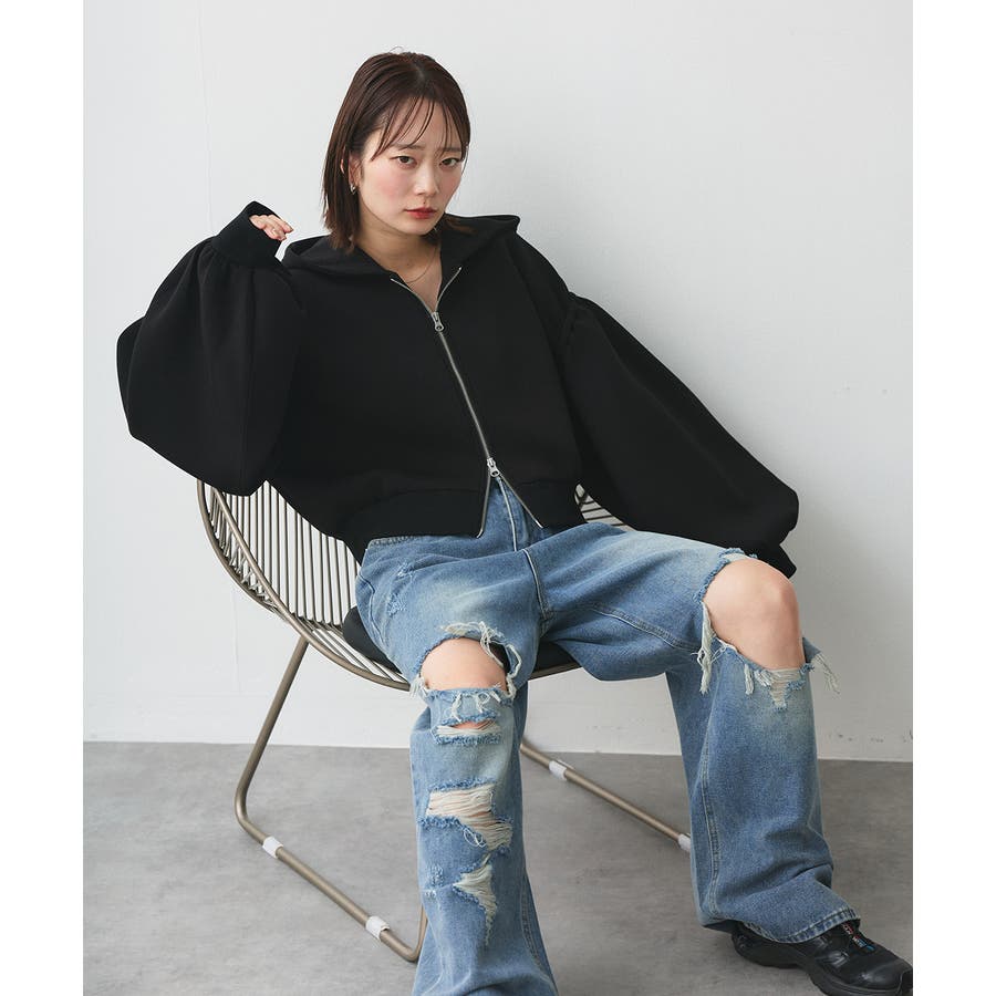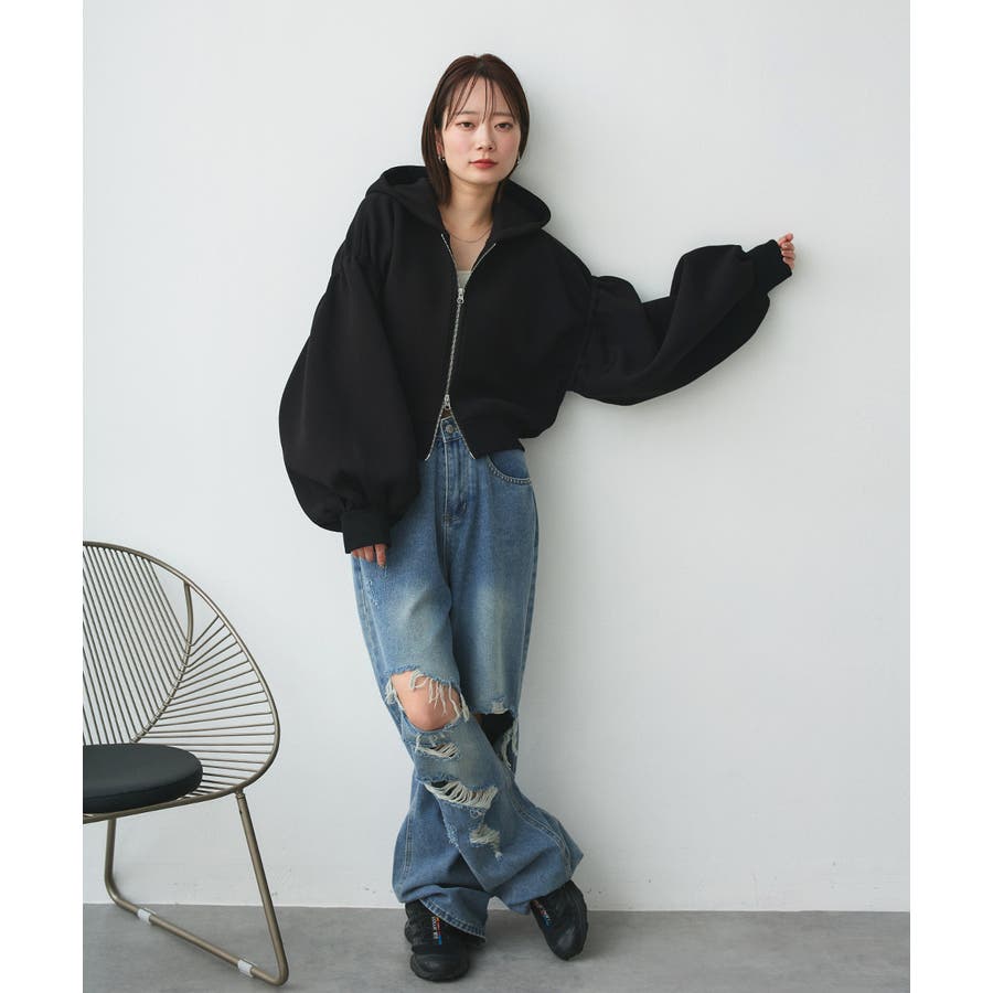 バルーンスリーブポンチジップパーカー