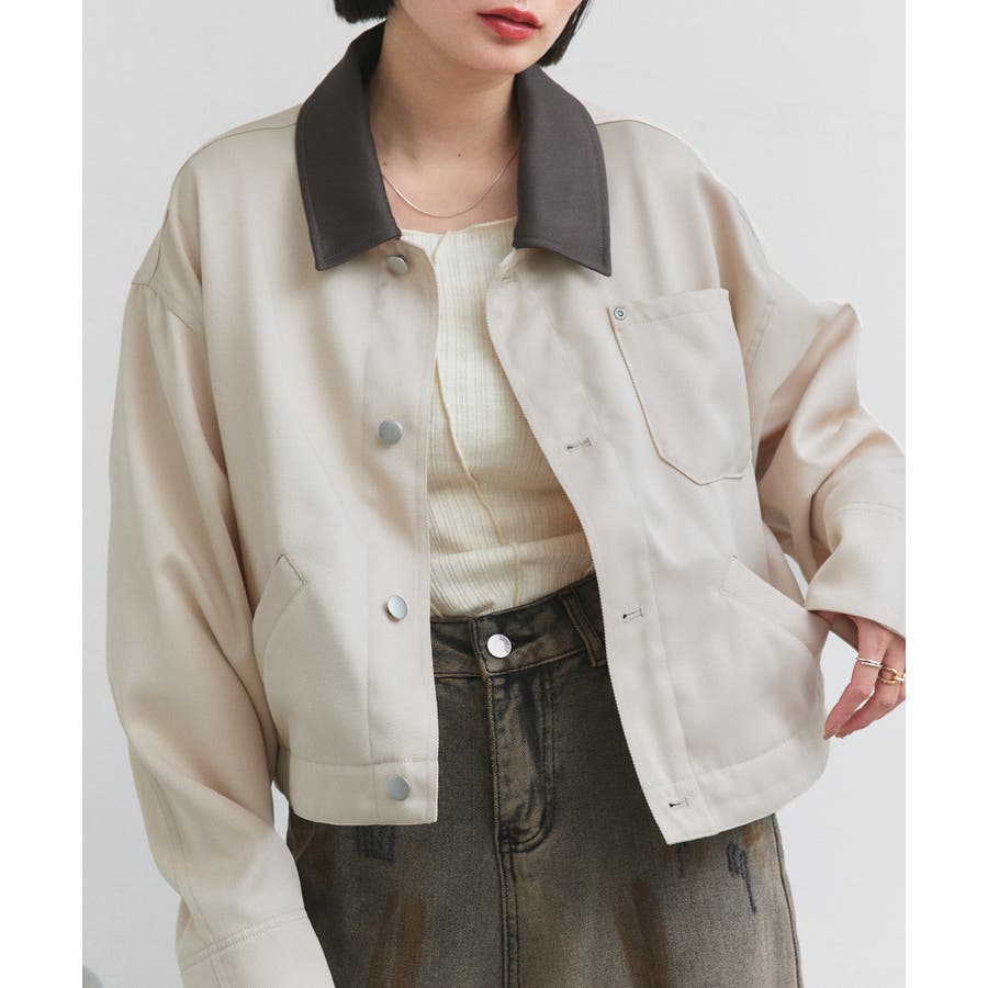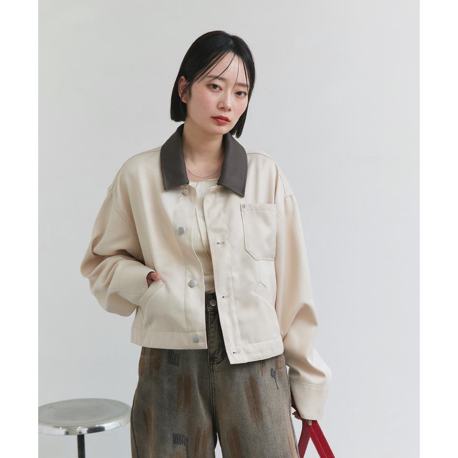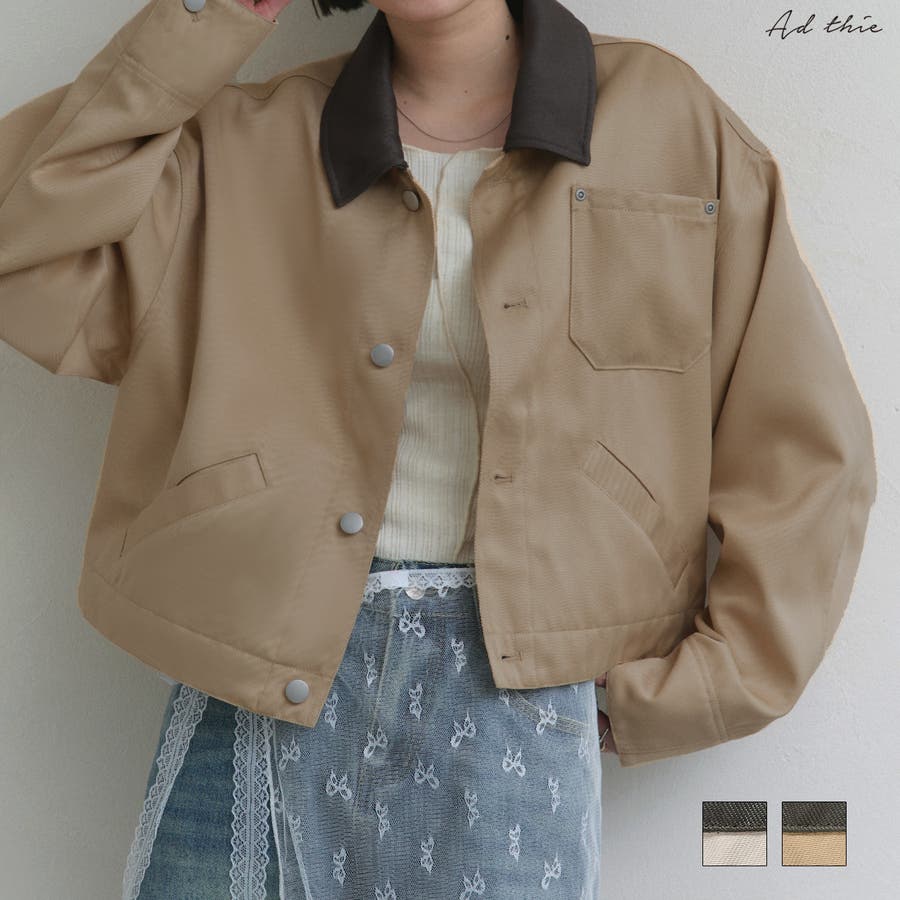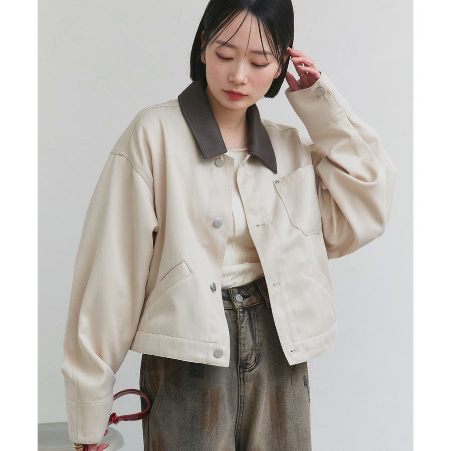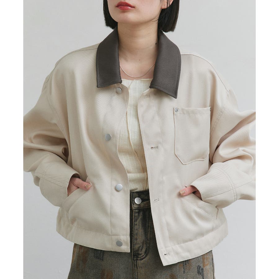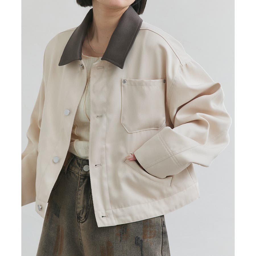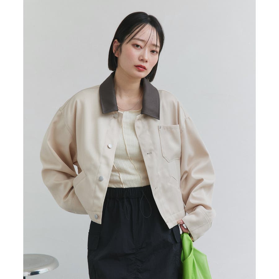 秋 秋コーデ 秋ファッション 秋服 夏 夏コーデ 夏ファッション 夏服 カジュアル カジュアルコーデ 大人 大人カジュアル オフィスカジュアル オフィス オフィスファッション オフィススタイル 韓国 韓国ファッション 韓国コーデ プチプラ プチプラファッション レディース Y2K 量産型 キレイめ 綺麗め きれい きちんと 春アウター スプリングコート ジャケット アウター ブルゾン ジャンパー ライトアウター ワークジャケット ダックジャケット 配色 切り替え 切替 ポケット 羽織り 防寒 襟付き ヴィンテージ 古着 ヴィンテージライク ショートジャケット ショート丈 クロップド丈 メンズライク ツイル ベージュ アイボリー