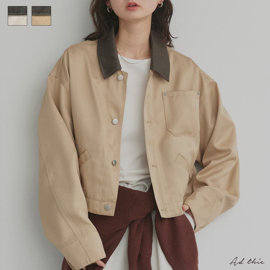 春 春コーデ 春ファッション 春服 夏 夏コーデ 夏ファッション 夏服 カジュアル カジュアルコーデ 大人 大人カジュアル オフィスカジュアル オフィス オフィスファッション オフィススタイル 韓国 韓国ファッション 韓国コーデ プチプラ プチプラファッション レディース Y2K 量産型 キレイめ 綺麗め きれい きちんと 春アウター スプリングコート ジャケット アウター ブルゾン ジャンパー ライトアウター ワークジャケット ダックジャケット 配色 切り替え 切替 ポケット 羽織り 防寒 襟付き ヴィンテージ 古着 ヴィンテージライク ショートジャケット ショート丈 クロップド丈 メンズライク ツイル ベージュ アイボリー