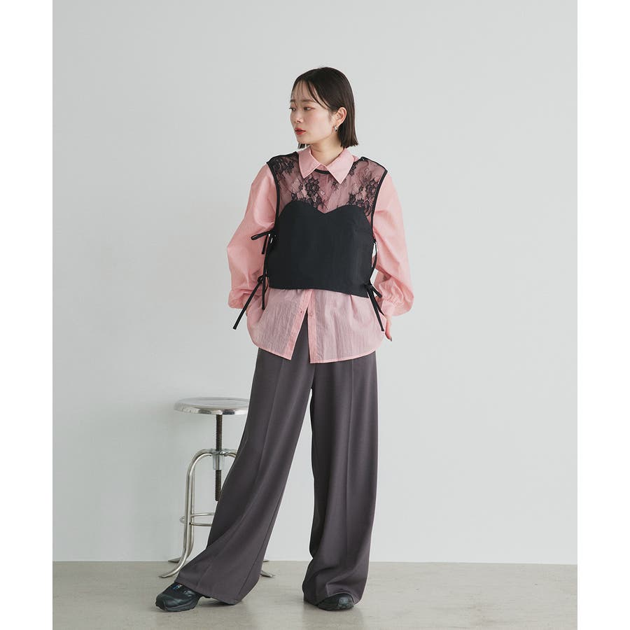 透け感があるのでインナーによって違った雰囲気のコーデが楽しめます。