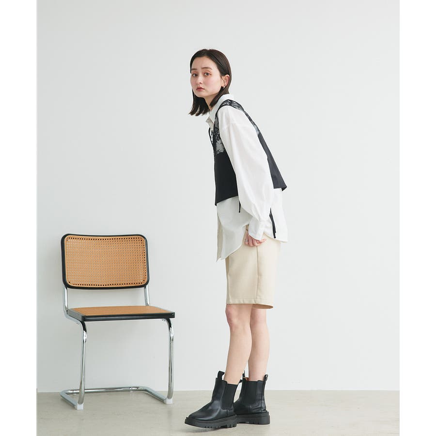 カットソーやシャツ、ニット、Tシャツやブラウスと重ねて様々なスタイリングが楽しめます。
