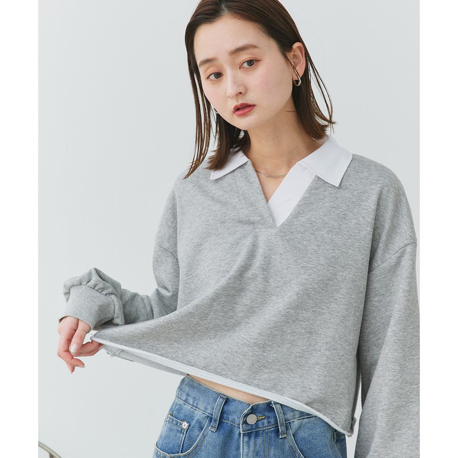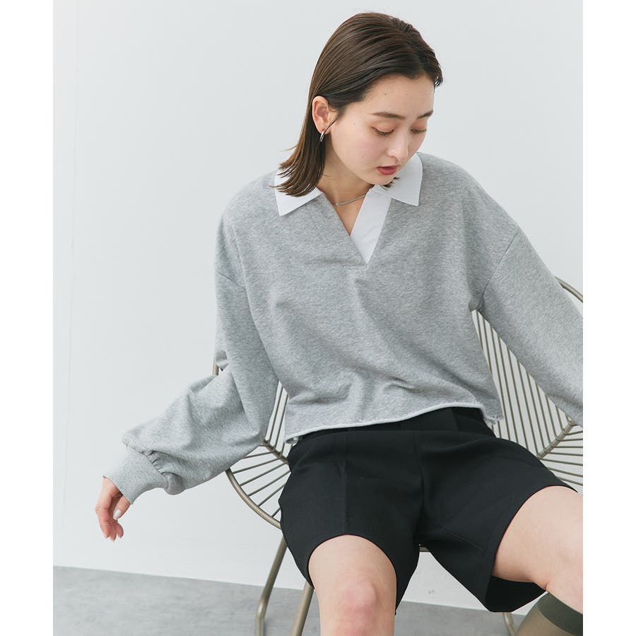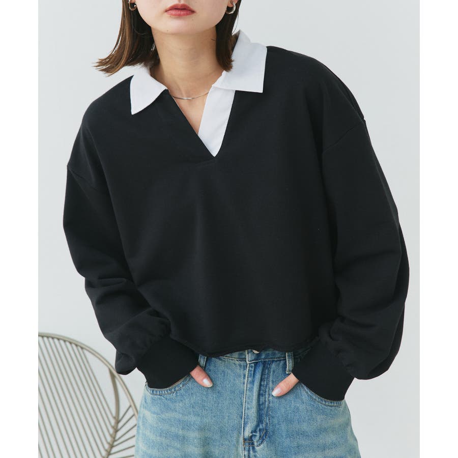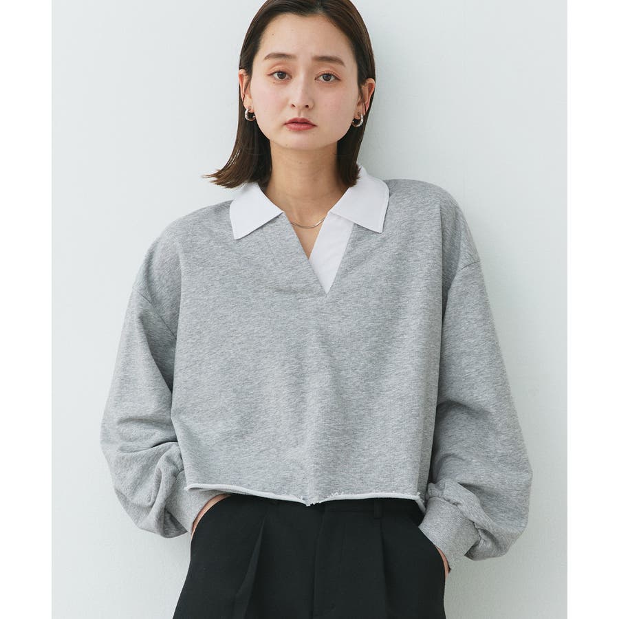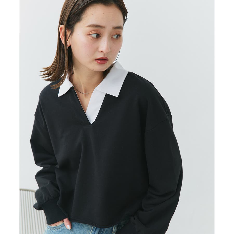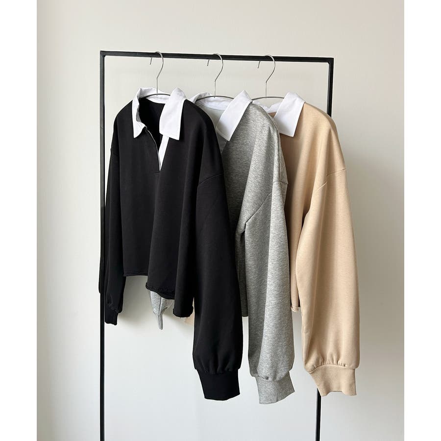 秋 秋コーデ 秋ファッション 秋服 夏 夏コーデ 夏ファッション 夏服 カジュアル カジュアルコーデ 大人 大人カジュアル オフィスカジュアル オフィス オフィスファッション オフィススタイル 韓国 韓国ファッション 韓国コーデ プチプラ プチプラファッション レディース Y2K 量産型 キレイめ 綺麗め きれい きちんと 長袖 トップス プルオーバー スウェット カットソー ポロシャツ スポーティ スポーツミックス ラガーシャツ 配色 切り替え 切替 襟 異素材 カラー配色 切りっぱなし ショート丈 クロップド丈 ワイド ゆったり トレンド 裏毛 杢グレー ブラック 黒 ベージュ