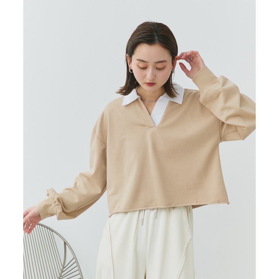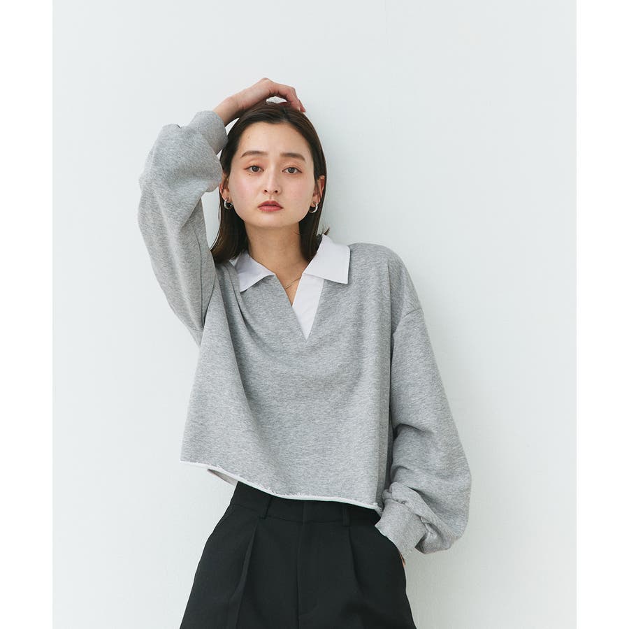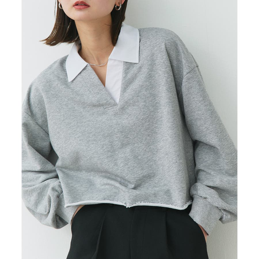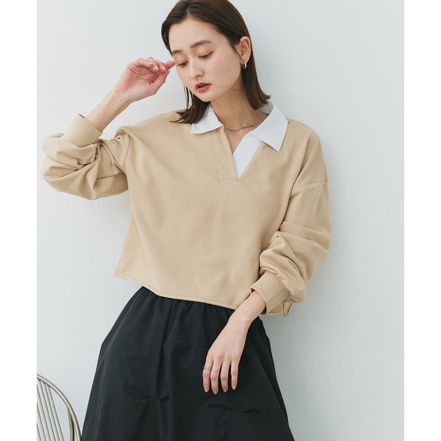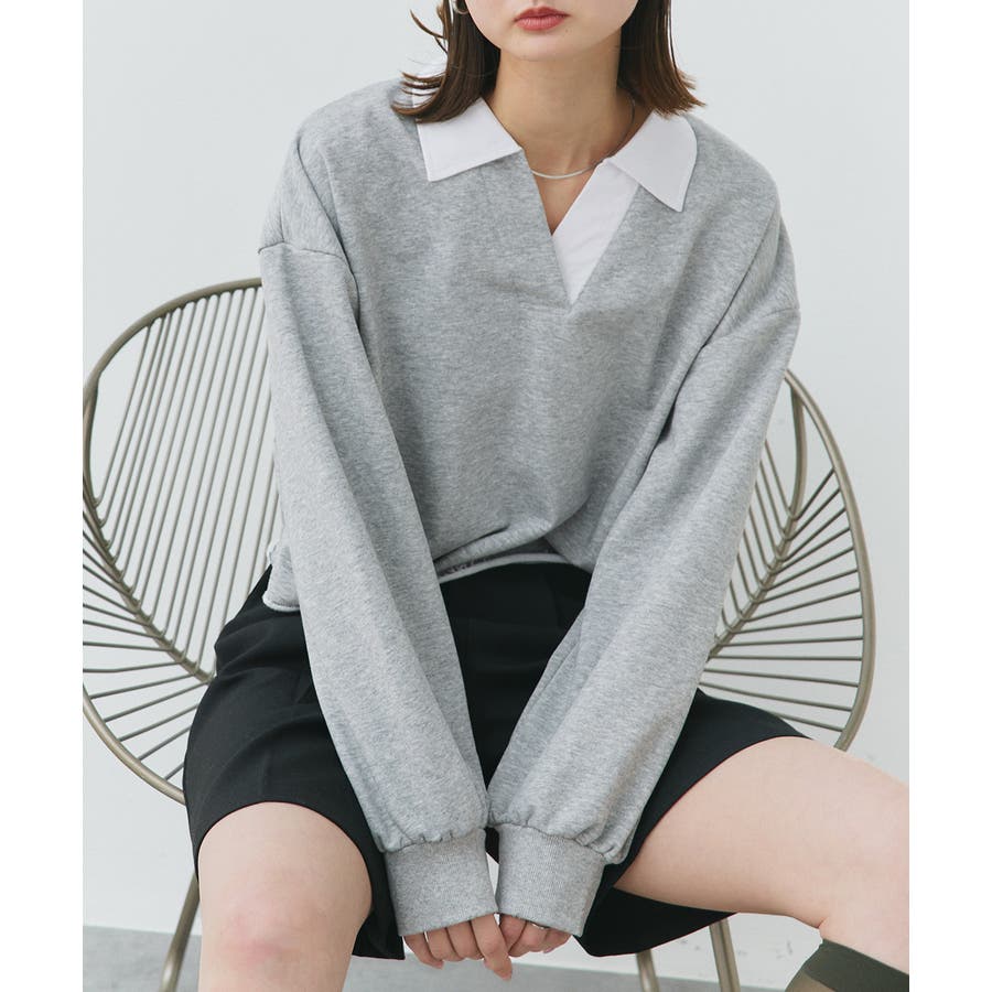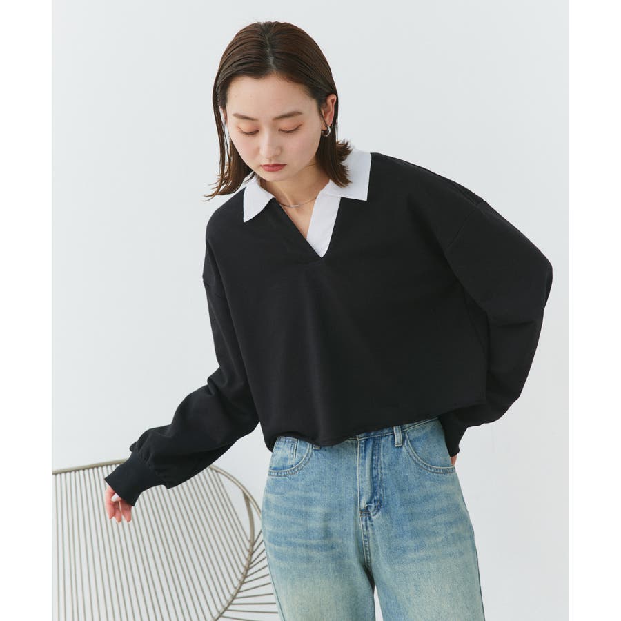 秋 秋コーデ 秋ファッション 秋服 夏 夏コーデ 夏ファッション 夏服 カジュアル カジュアルコーデ 大人 大人カジュアル オフィスカジュアル オフィス オフィスファッション オフィススタイル 韓国 韓国ファッション 韓国コーデ プチプラ プチプラファッション レディース Y2K 量産型 キレイめ 綺麗め きれい きちんと 長袖 トップス プルオーバー スウェット カットソー ポロシャツ スポーティ スポーツミックス ラガーシャツ 配色 切り替え 切替 襟 異素材 カラー配色 切りっぱなし ショート丈 クロップド丈 ワイド ゆったり トレンド 裏毛 杢グレー ブラック 黒 ベージュ