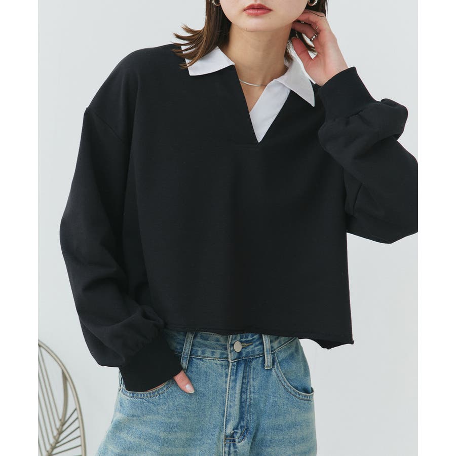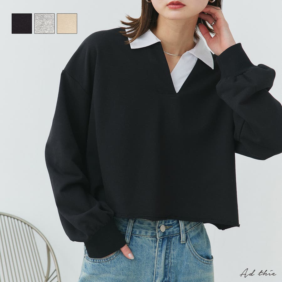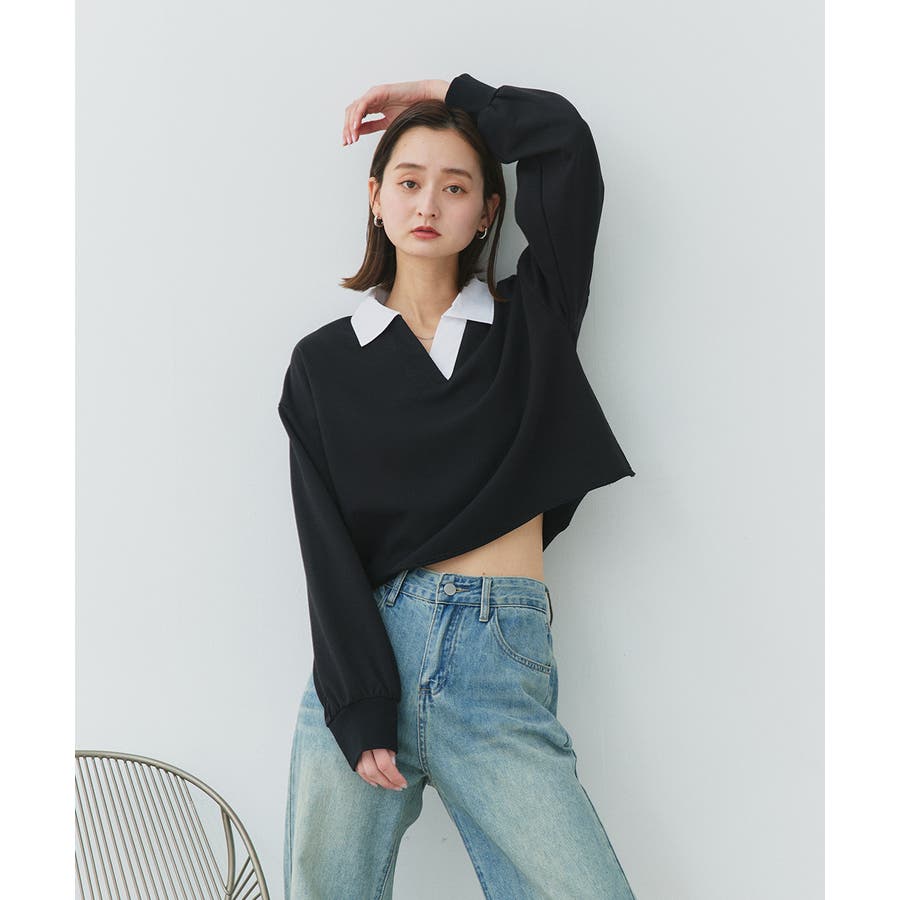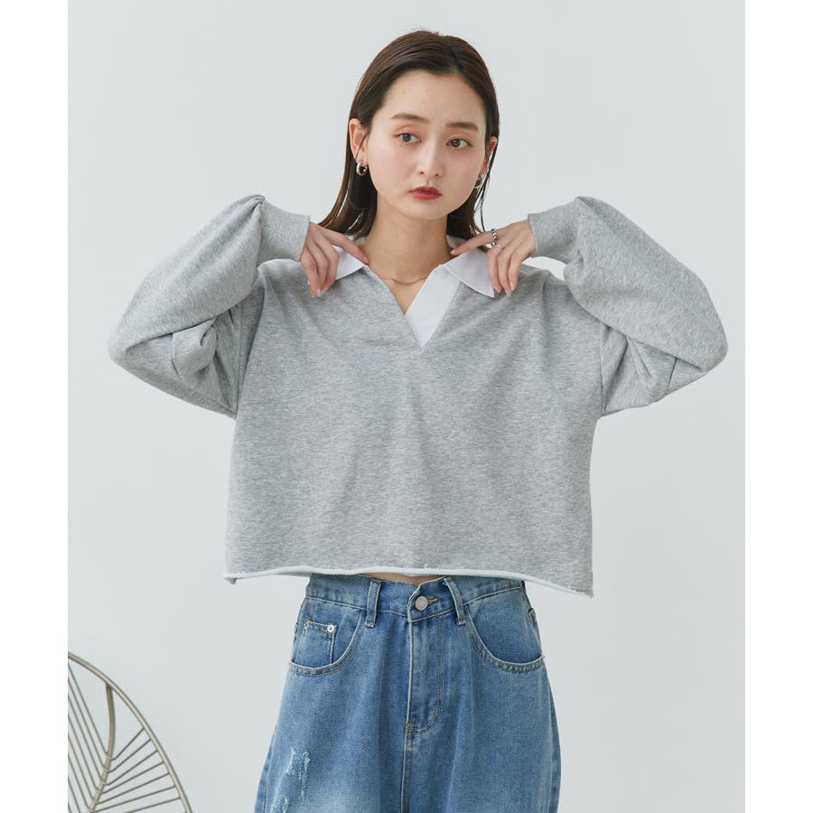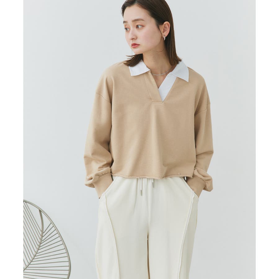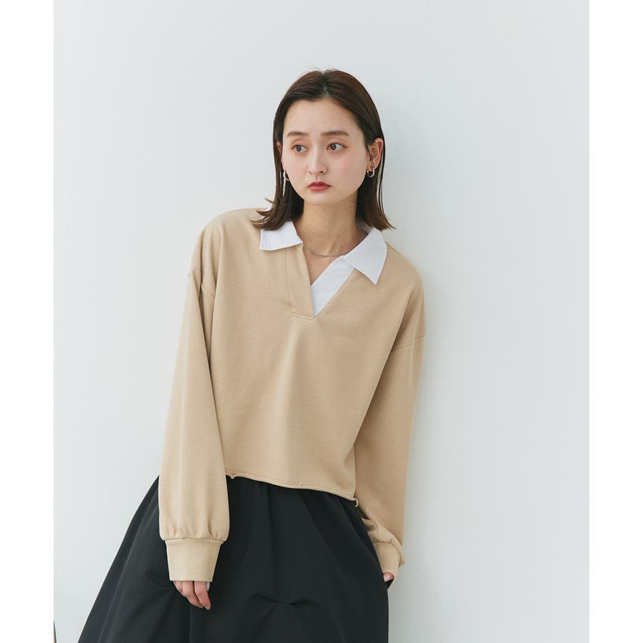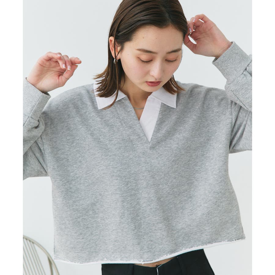 秋 秋コーデ 秋ファッション 秋服 夏 夏コーデ 夏ファッション 夏服 カジュアル カジュアルコーデ 大人 大人カジュアル オフィスカジュアル オフィス オフィスファッション オフィススタイル 韓国 韓国ファッション 韓国コーデ プチプラ プチプラファッション レディース Y2K 量産型 キレイめ 綺麗め きれい きちんと 長袖 トップス プルオーバー スウェット カットソー ポロシャツ スポーティ スポーツミックス ラガーシャツ 配色 切り替え 切替 襟 異素材 カラー配色 切りっぱなし ショート丈 クロップド丈 ワイド ゆったり トレンド 裏毛 杢グレー ブラック 黒 ベージュ