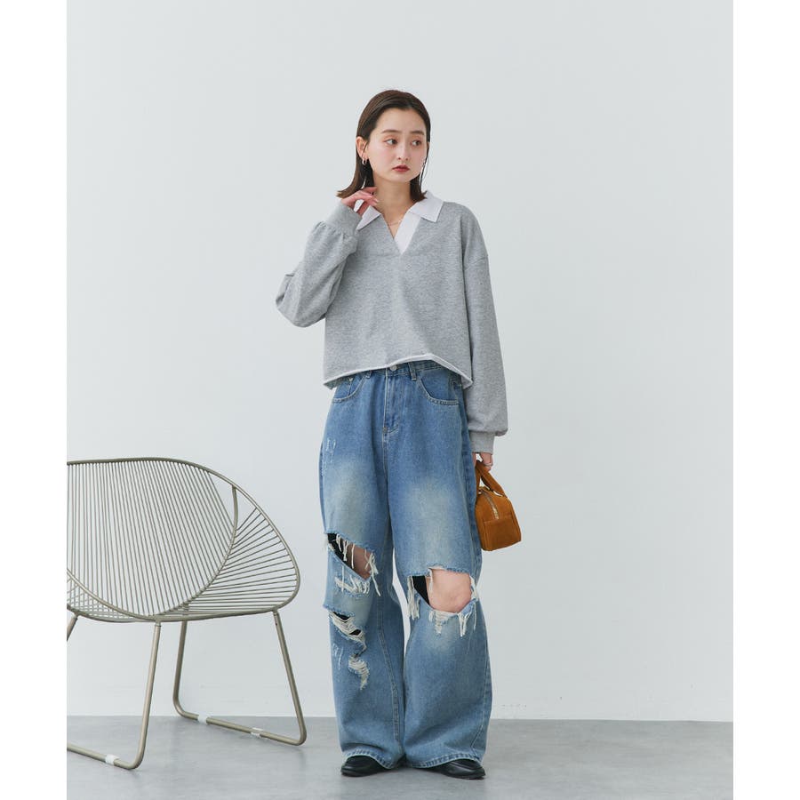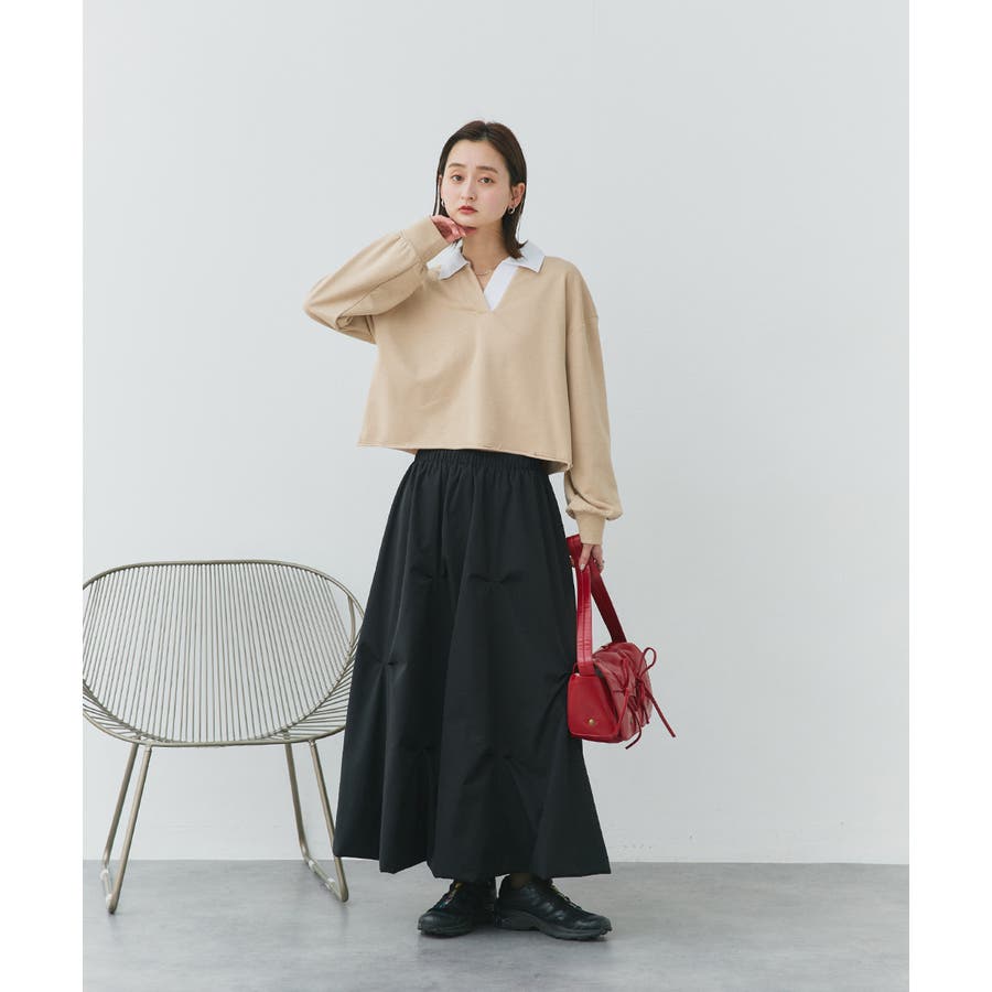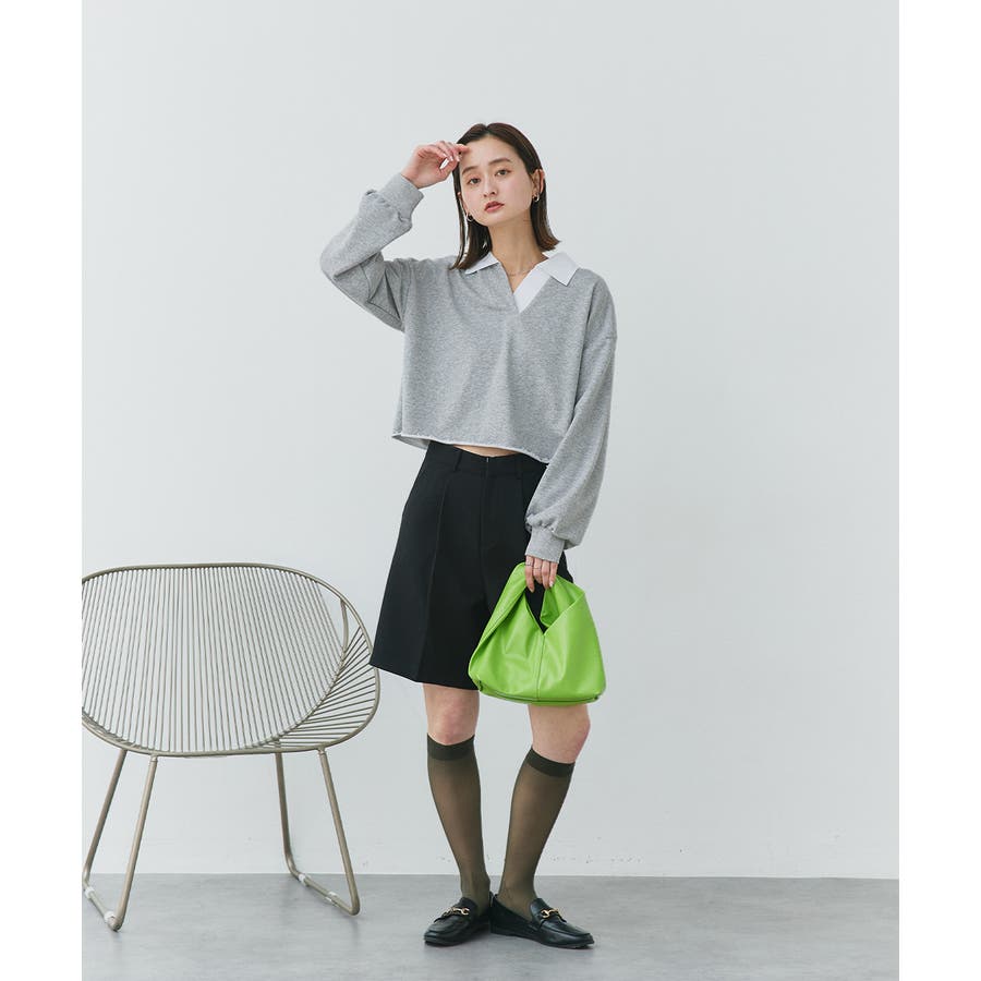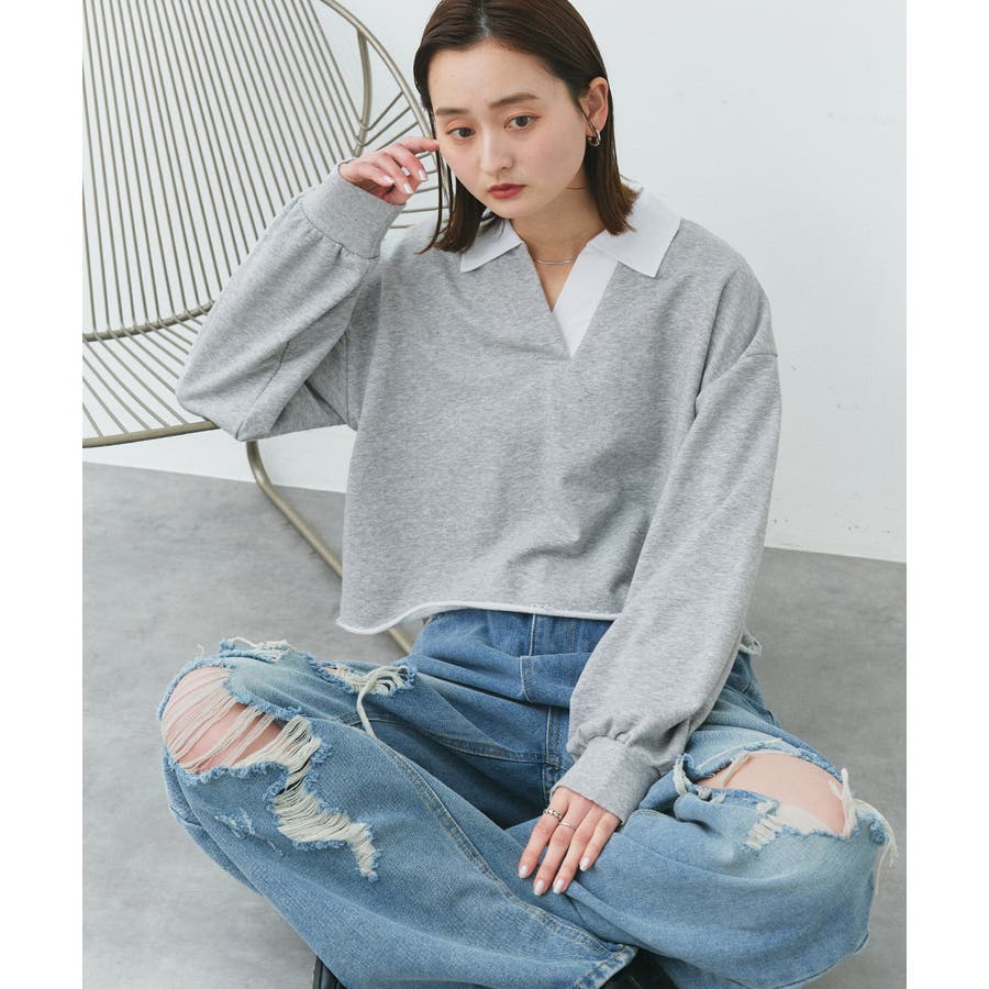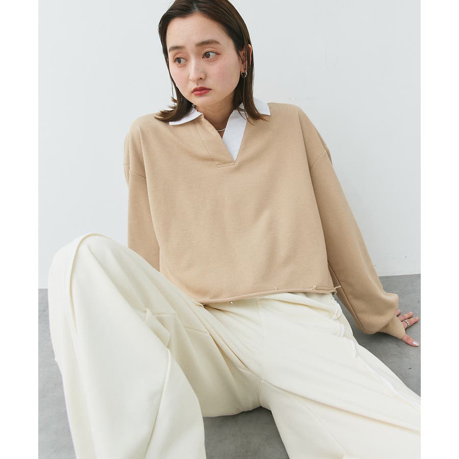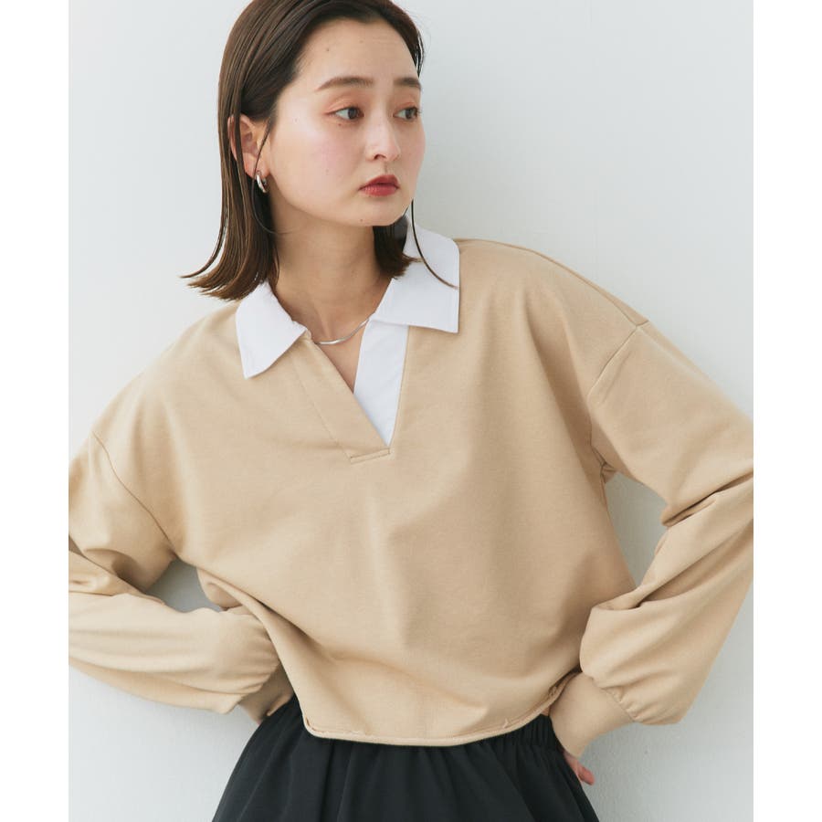 秋 秋コーデ 秋ファッション 秋服 夏 夏コーデ 夏ファッション 夏服 カジュアル カジュアルコーデ 大人 大人カジュアル オフィスカジュアル オフィス オフィスファッション オフィススタイル 韓国 韓国ファッション 韓国コーデ プチプラ プチプラファッション レディース Y2K 量産型 キレイめ 綺麗め きれい きちんと 長袖 トップス プルオーバー スウェット カットソー ポロシャツ スポーティ スポーツミックス ラガーシャツ 配色 切り替え 切替 襟 異素材 カラー配色 切りっぱなし ショート丈 クロップド丈 ワイド ゆったり トレンド 裏毛 杢グレー ブラック 黒 ベージュ