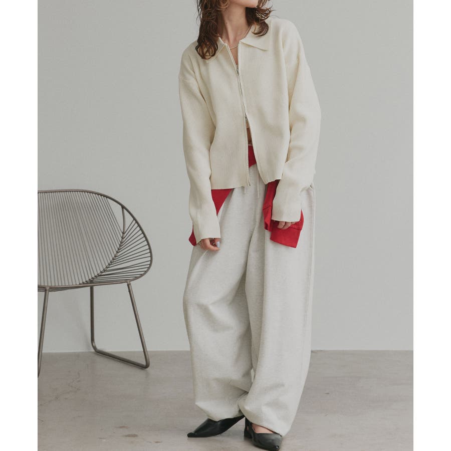 ダブルジップポロニットカーディガン
