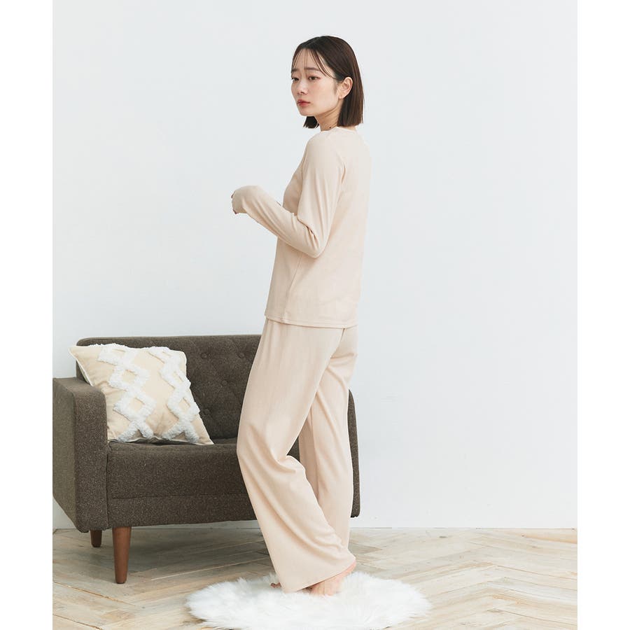 生地感、サイズ感、着心地、どれもすごくいい感じですが、ポケットが付いてないのが本当に残念すぎる。ポケットがついてたら120点でした。スマホを持ち歩くこのご時世にパンツにポケットがないなんて…よく見て買えばよかった…。ポケットいらないよ!って人にはおすすめ。室温21~23℃くらいの部屋で快適に過ごせる春夏向けのルームウェアです。