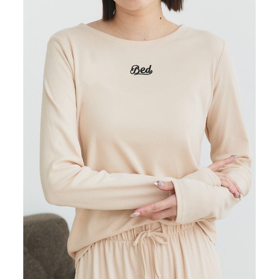 ロゴ刺繍スムースロングTシャツルームウェア