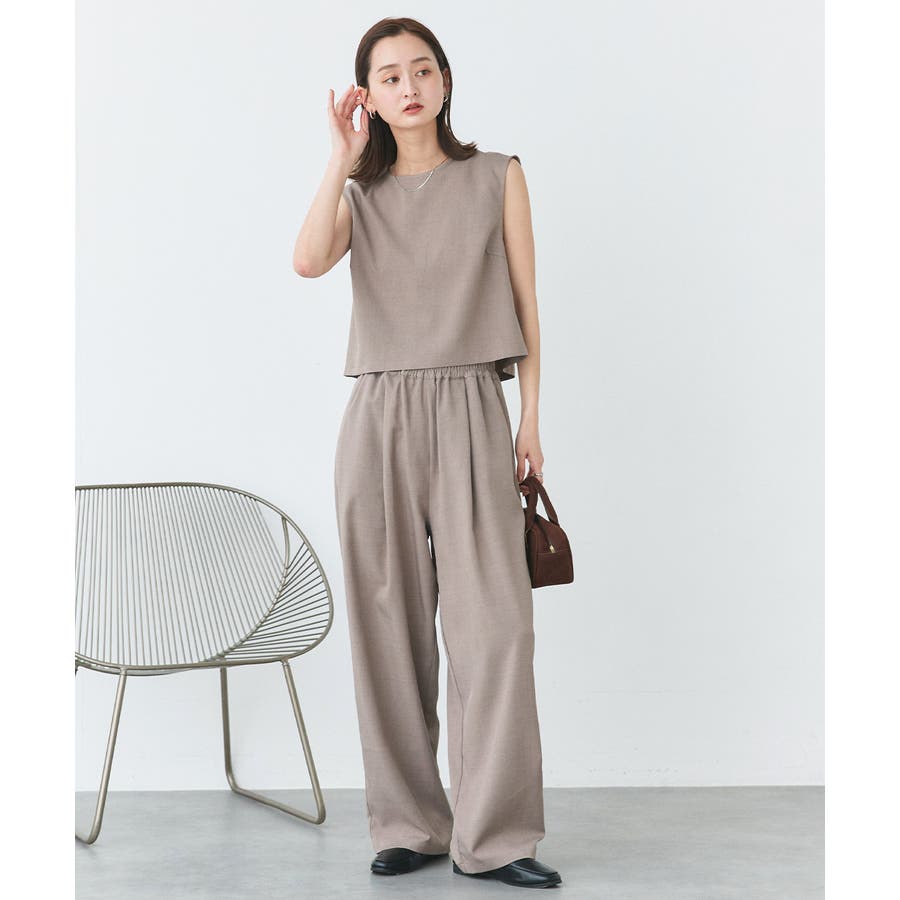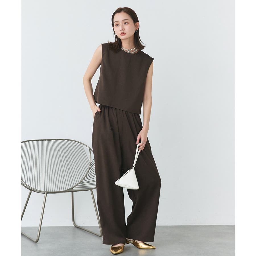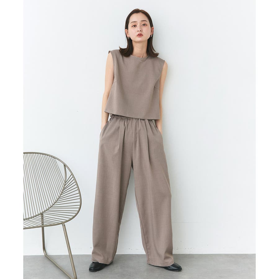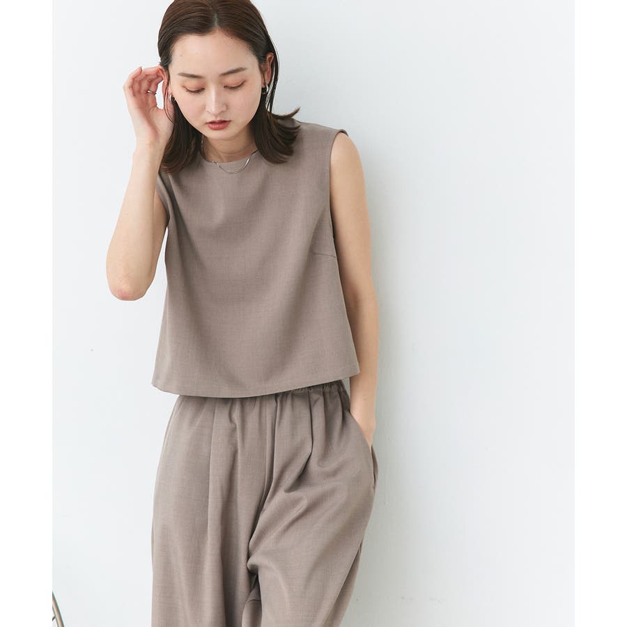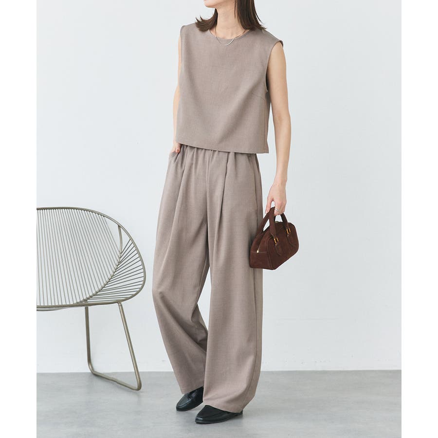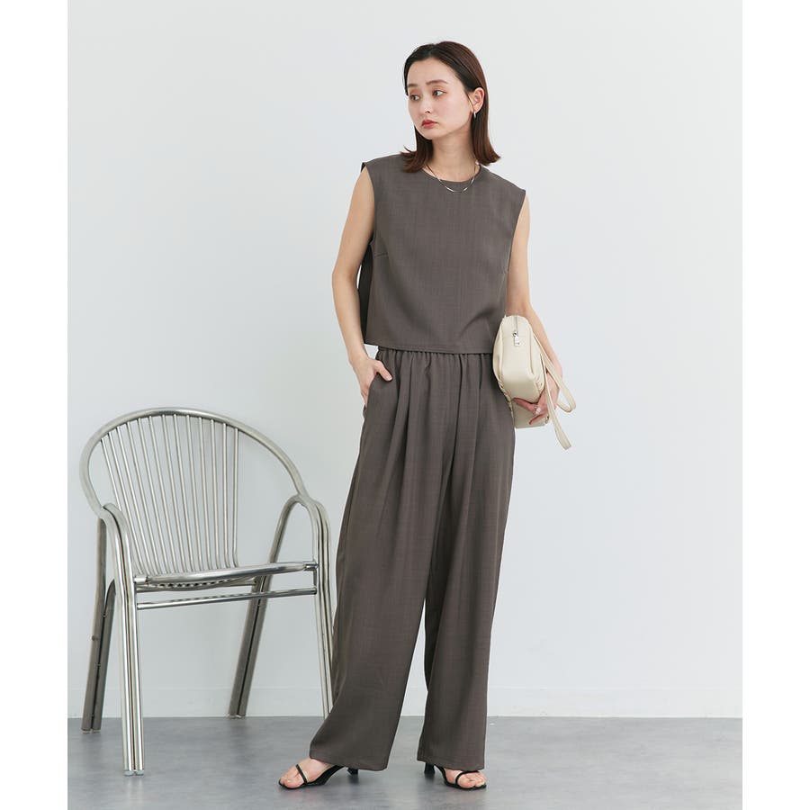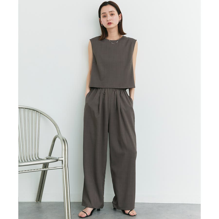ノースリーブトップスとパンツのセットアップアイテム。