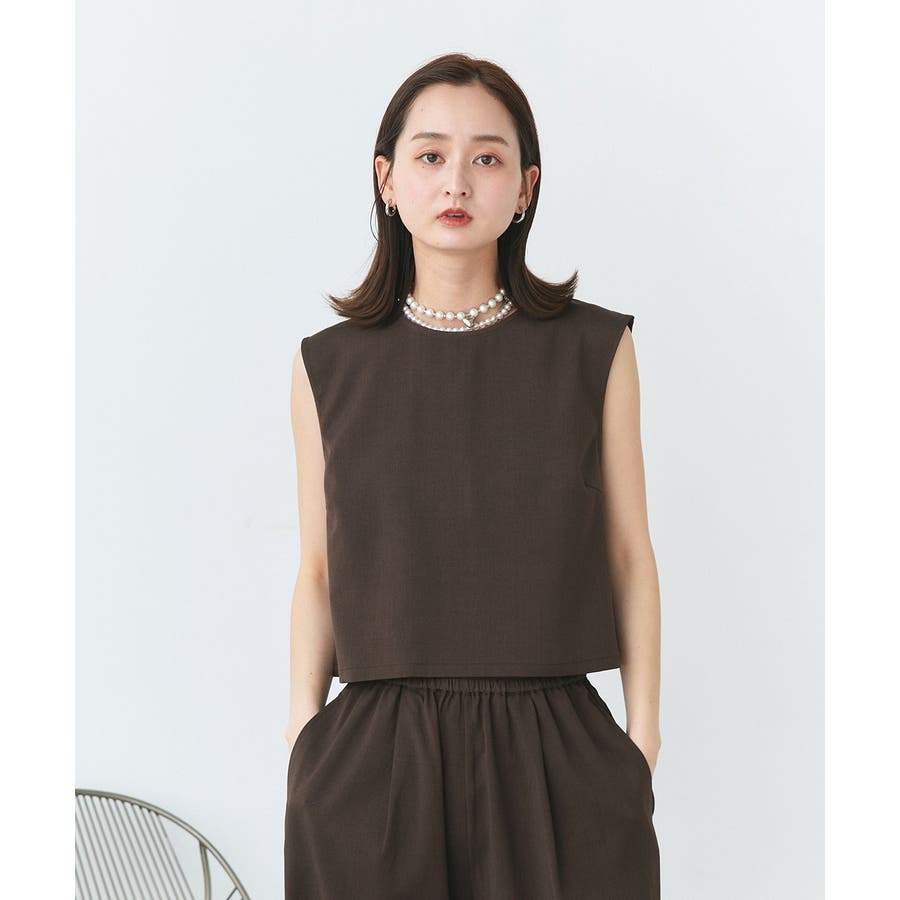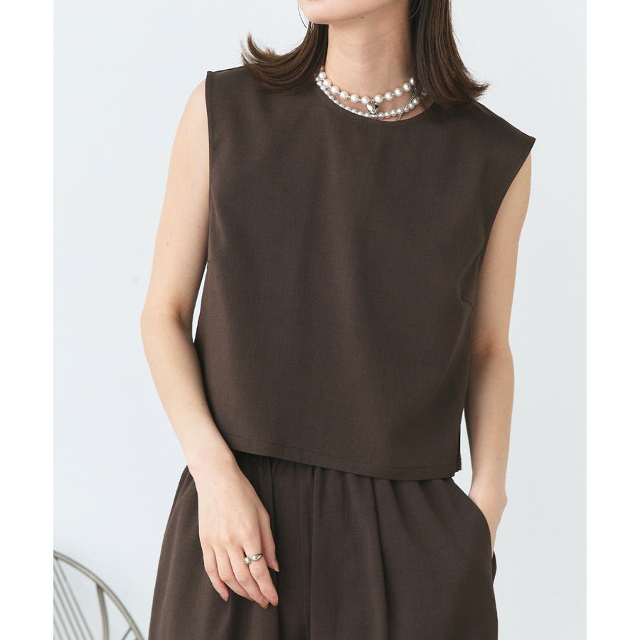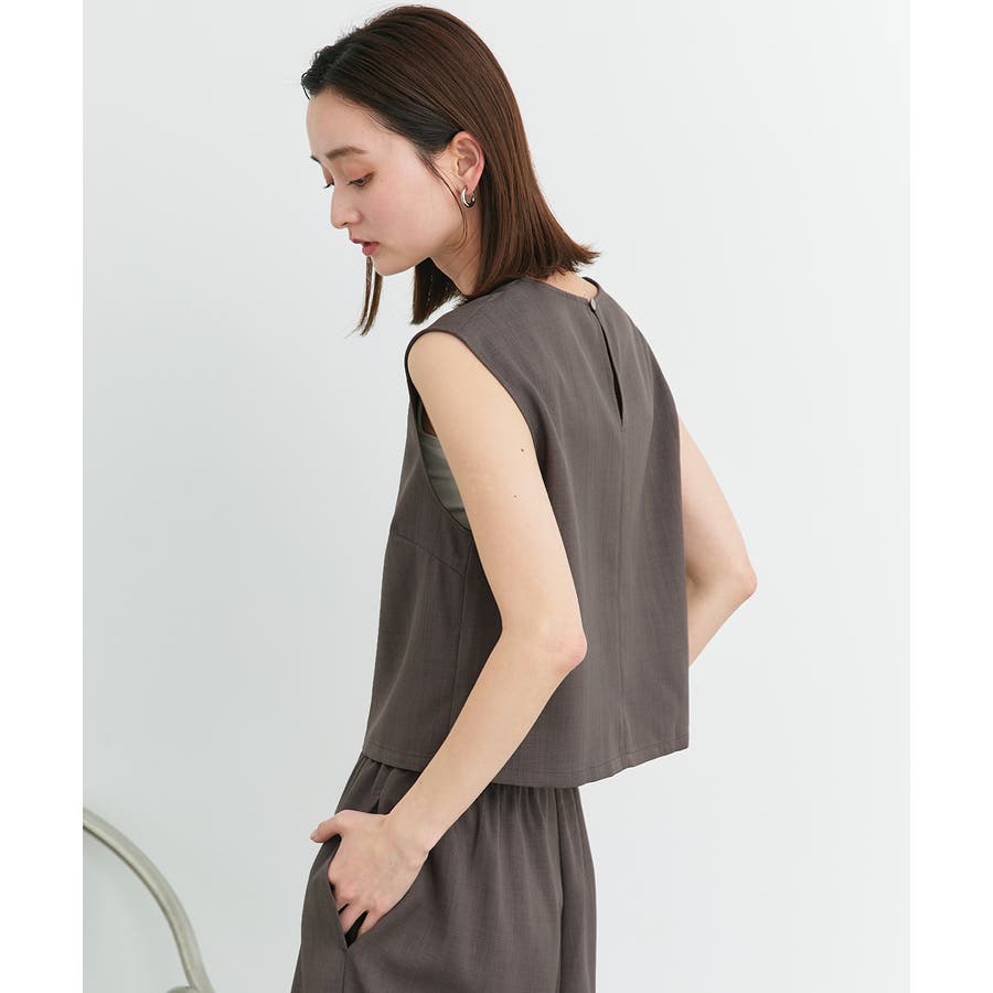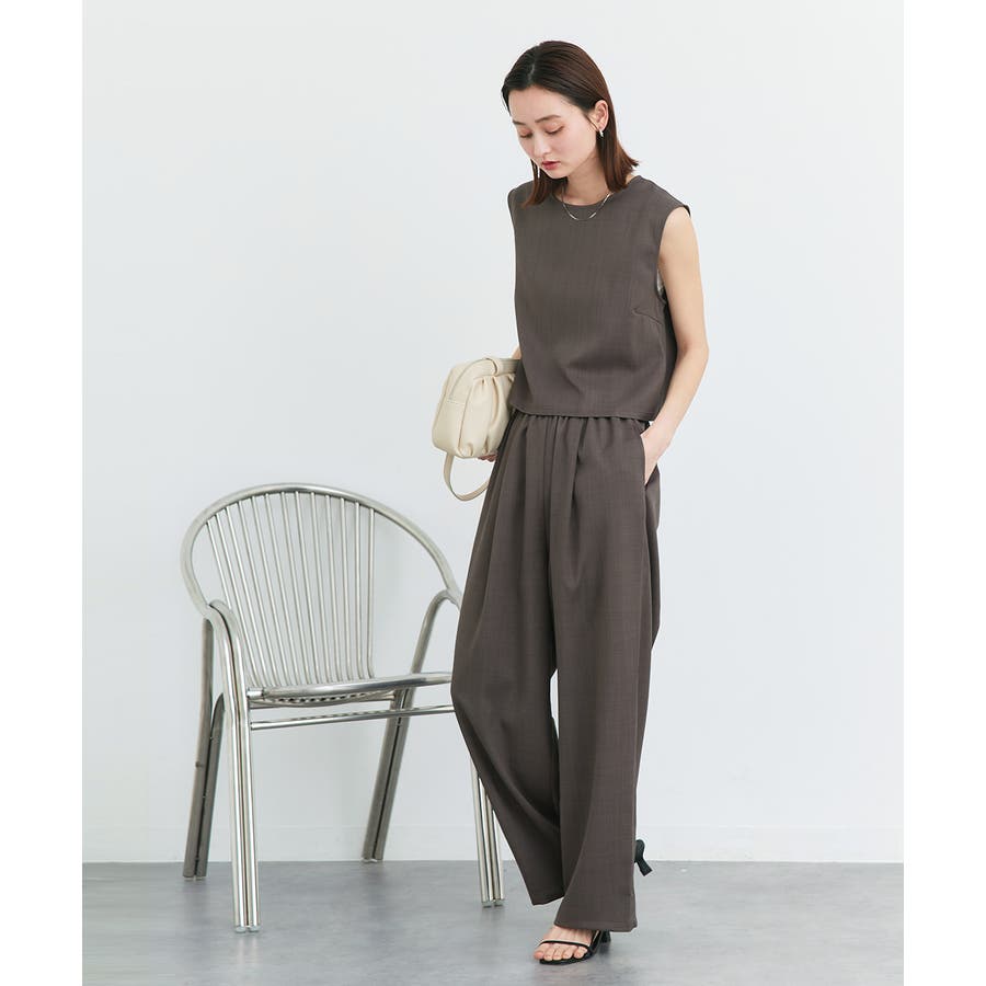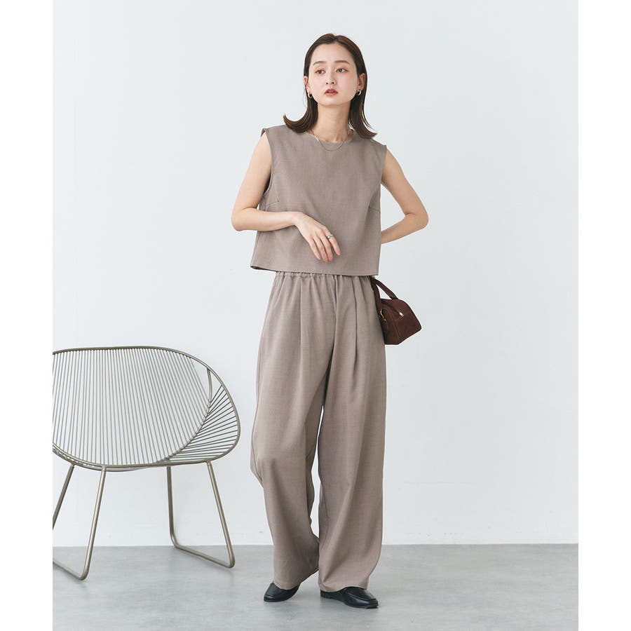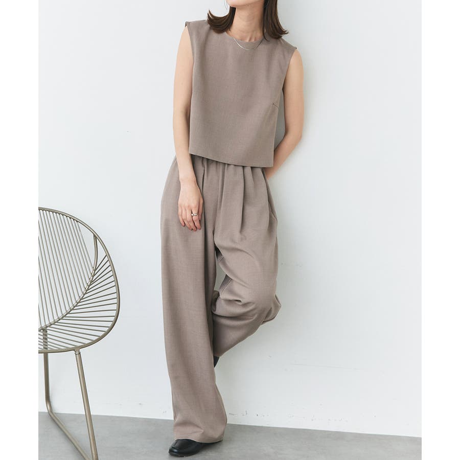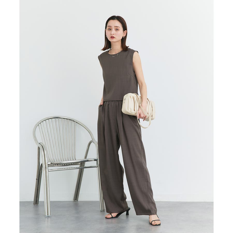 ノースリーブトップスとパンツのセットアップアイテム。