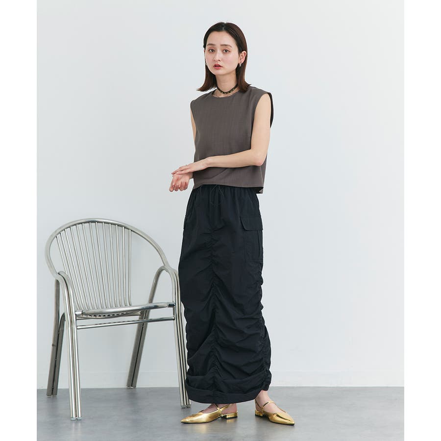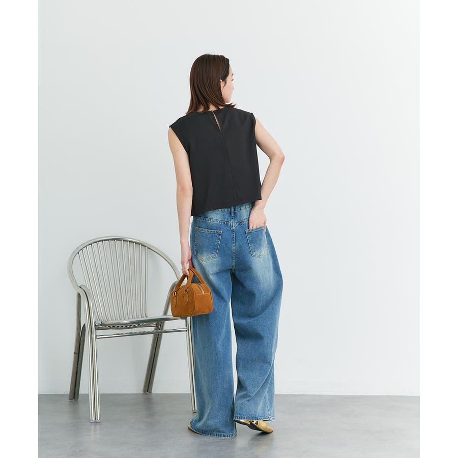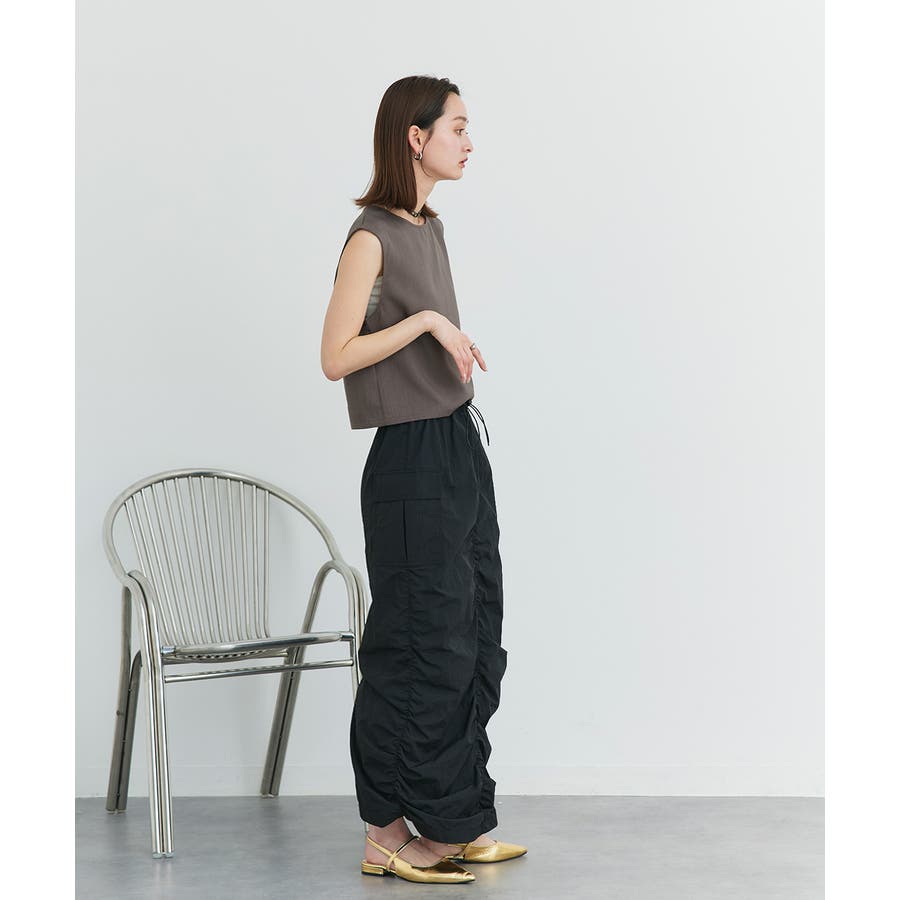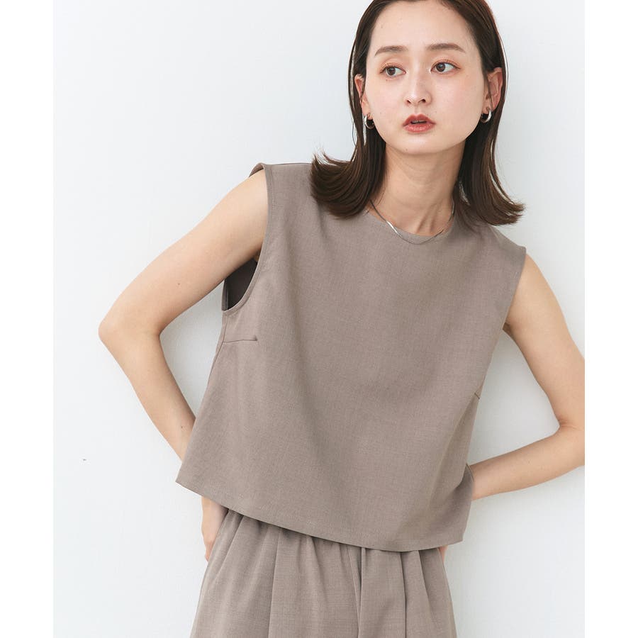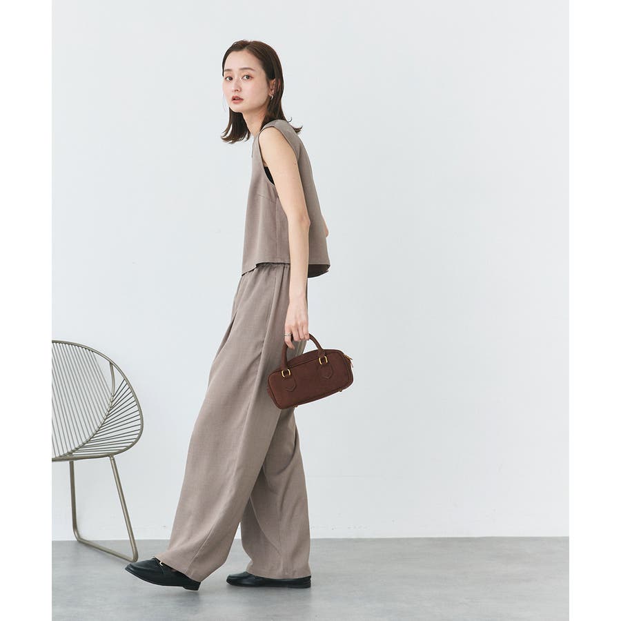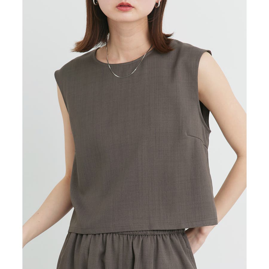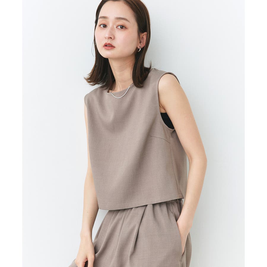 ノースリーブトップスとパンツのセットアップアイテム。