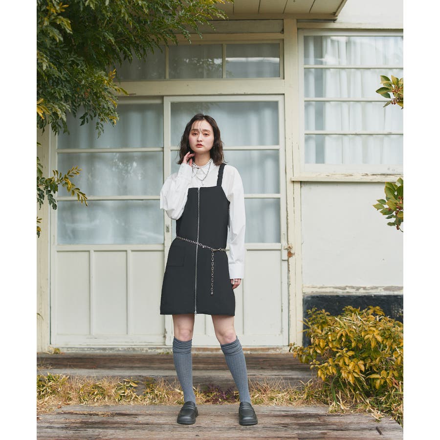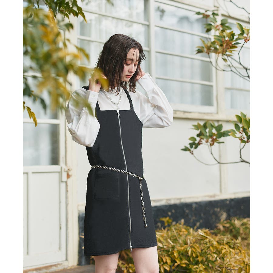 フロントのダブルジップがアクセントになるミニワンピ。