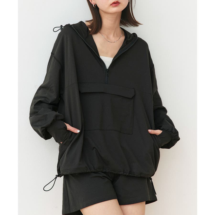 トレンド感あるハーフジップアノラックパーカーをラッシュガードに。